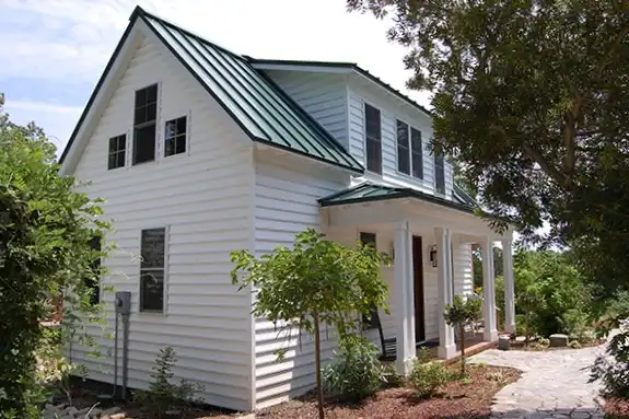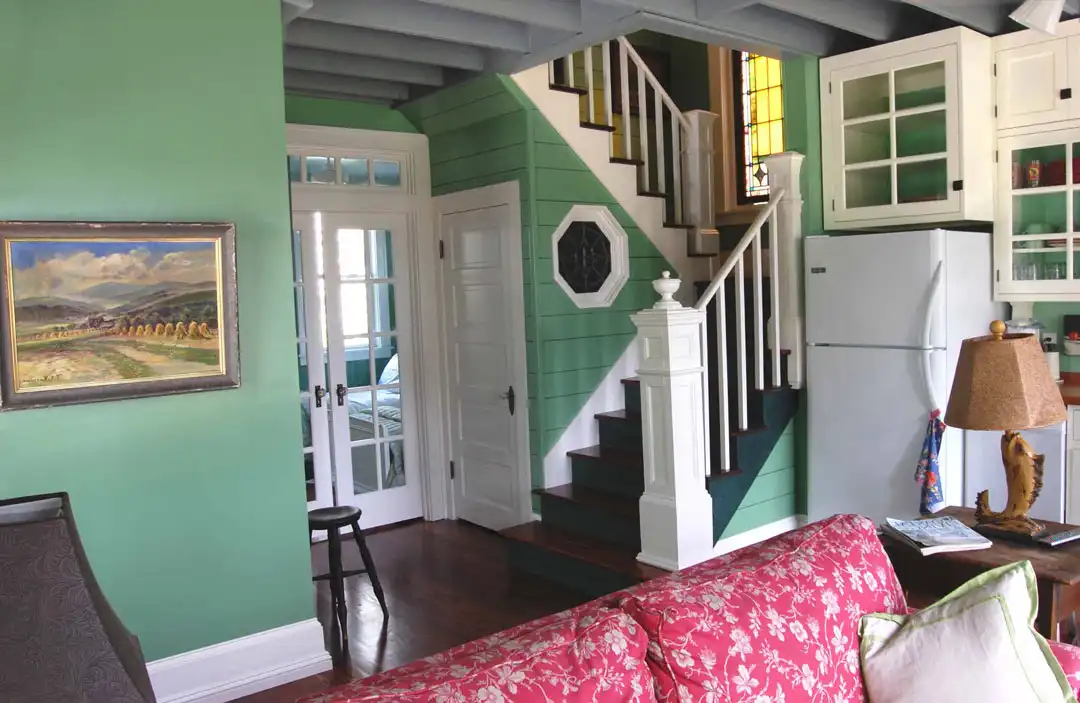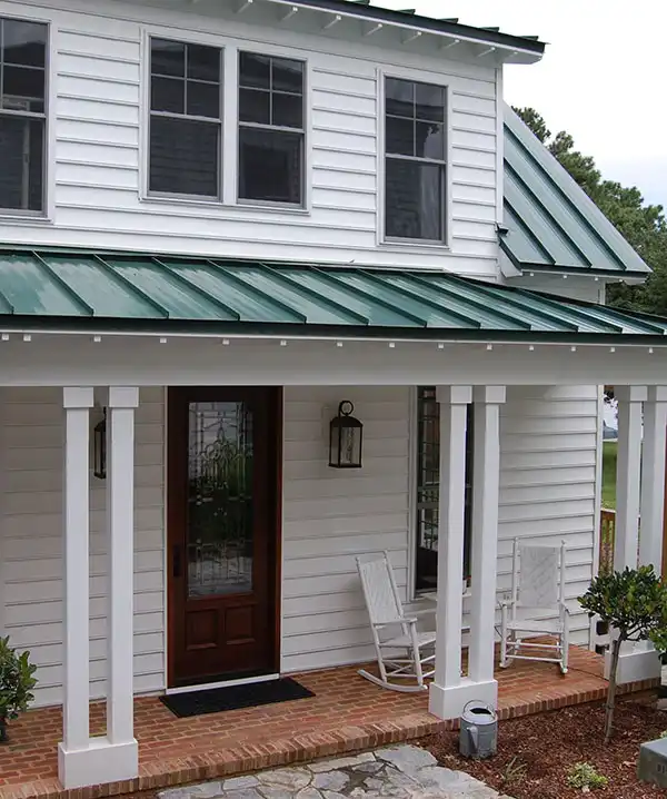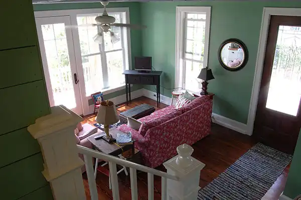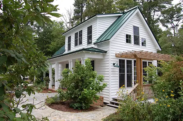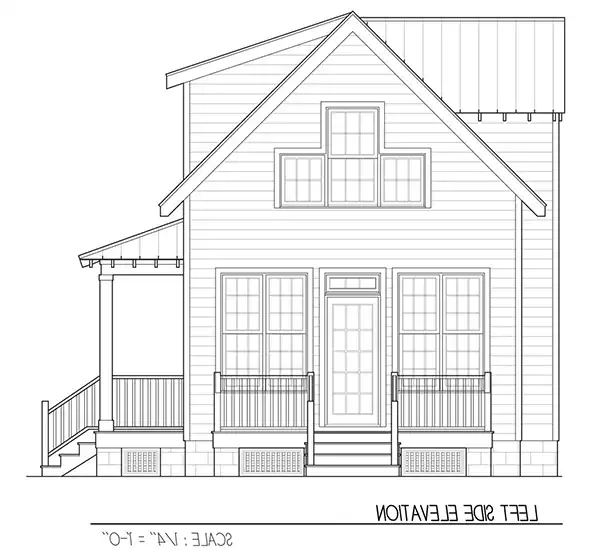 Columns and a shed dormer dress up the façade of this two-story bungalow design. The interior showcases a spacious great room for good conversation and friendly laughter. Natural light brightens the great room, thanks to windows and a French door. The kitchen area allows you to whip up refreshments at a moment's notice. Note the handy closet for a stacked washer and dryer. If you prefer not to deal with stairs as the years advance, choose the lovely bedroom suite on the main level. The children will have a full bath on the second level.