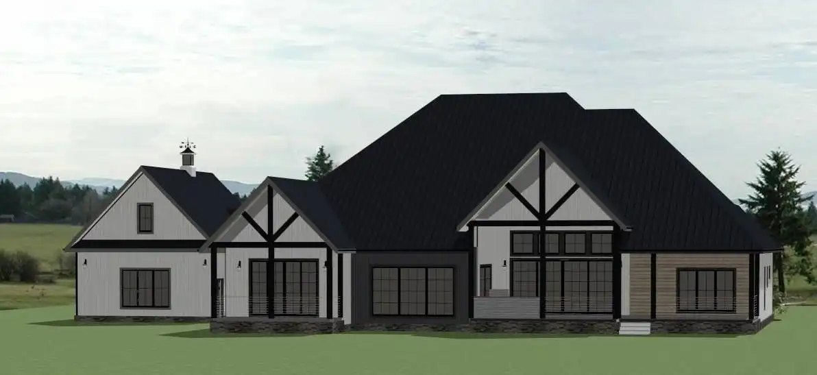 If you are a family with a span of ages or young family but still need a separate space for family or guests that don’t necessarily need to be on the main level, this split bedroom 2 story 4,356 sq.ft. Modern Farm might have the perfect layout.