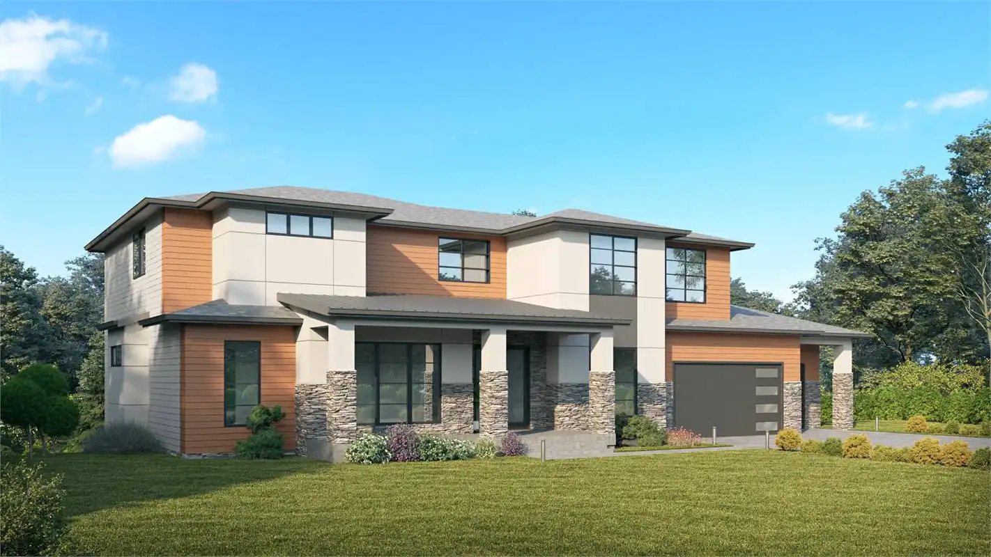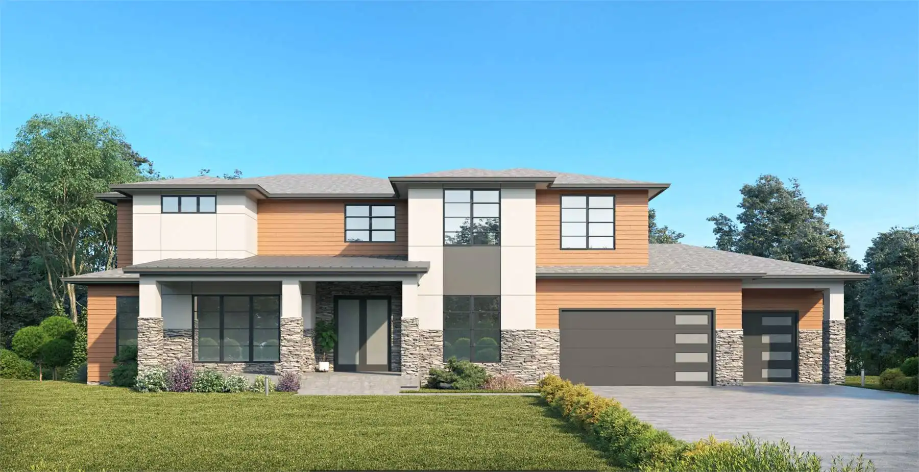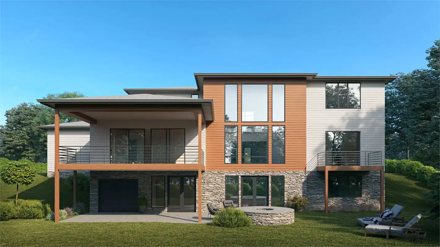 House Plan 1452 is a stunning contemporary design that spreads its 5,382 square feet and five bedrooms across three levels. It's also uniquely suited to multigenerational households with two primary suites! One is accessibly located on the main level while the other is upstairs along with two more bedrooms, and the final bedroom is a guest suite in the finished basement. You'll find ample space for entertaining between the open-concept living spaces, formal dining room, and rec room. But that's not all--there's also a den for the at-home worker and a gym with its own sauna for anybody who prefers to work out in privacy. Like outdoor living? You can enjoy decks off the main level and patios off the walkout basement. And in addition to the three-car garage located in front, you'll find a rear-entry garage that makes storing lawn equipment and toys a snap!