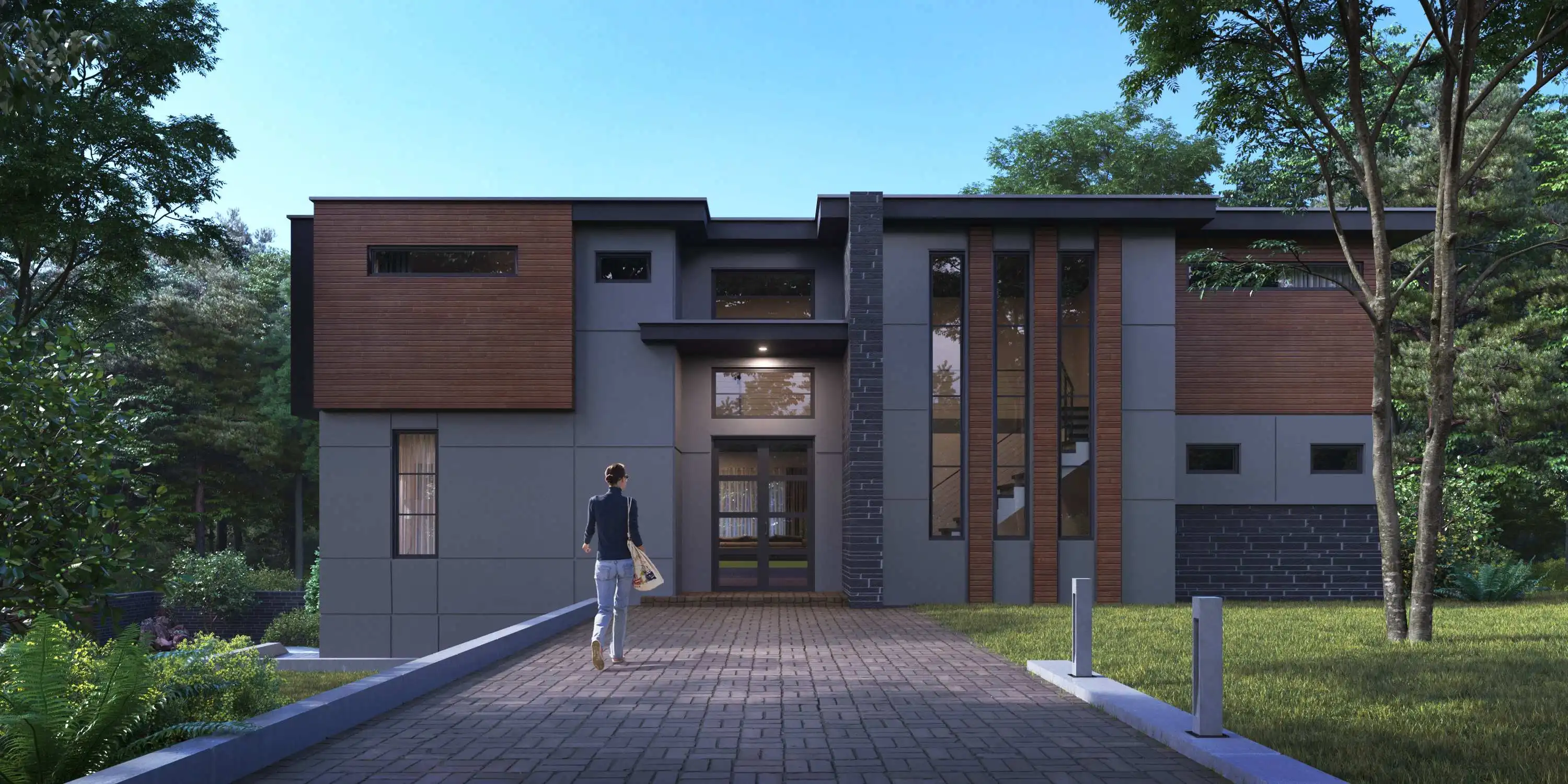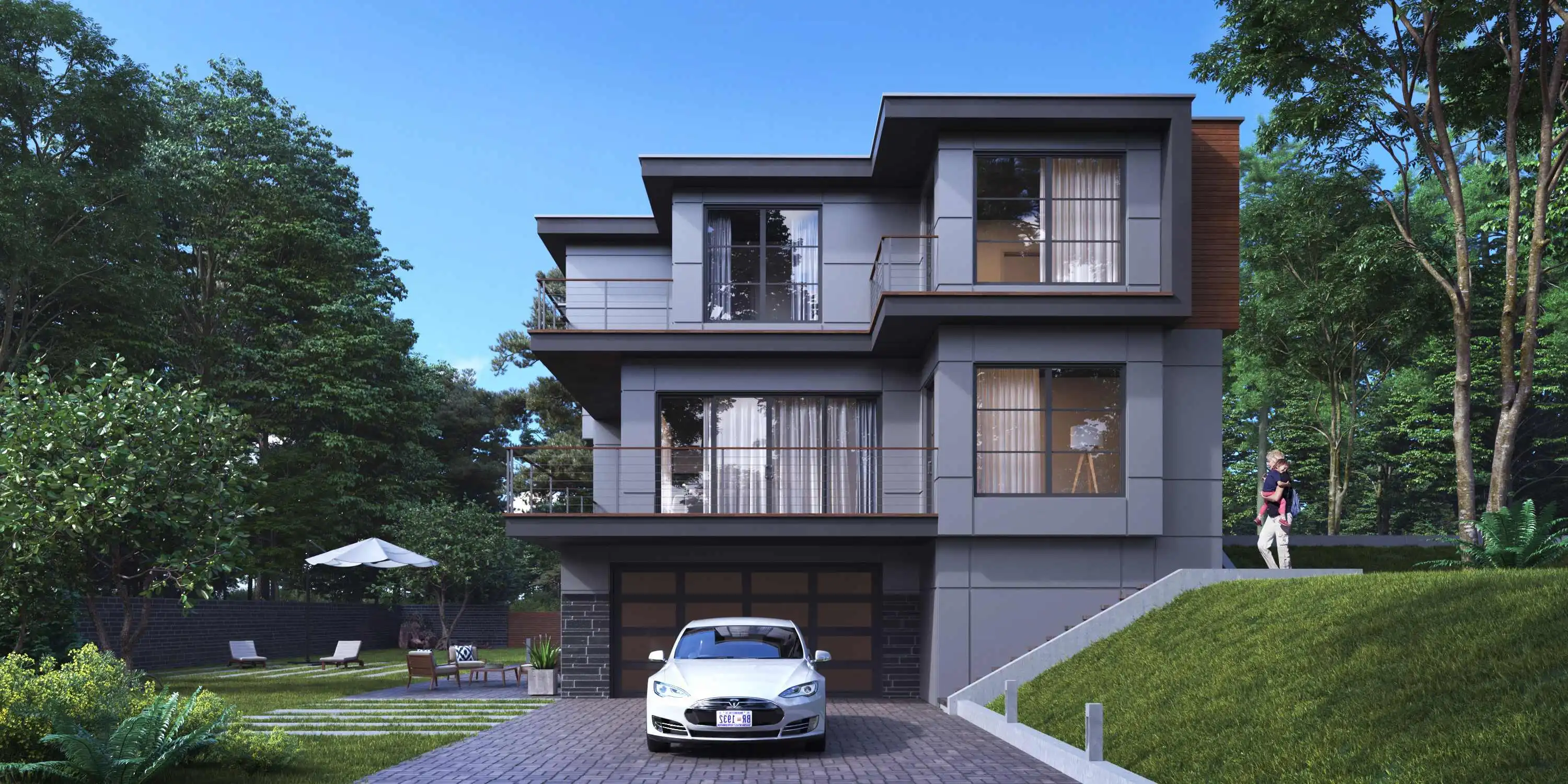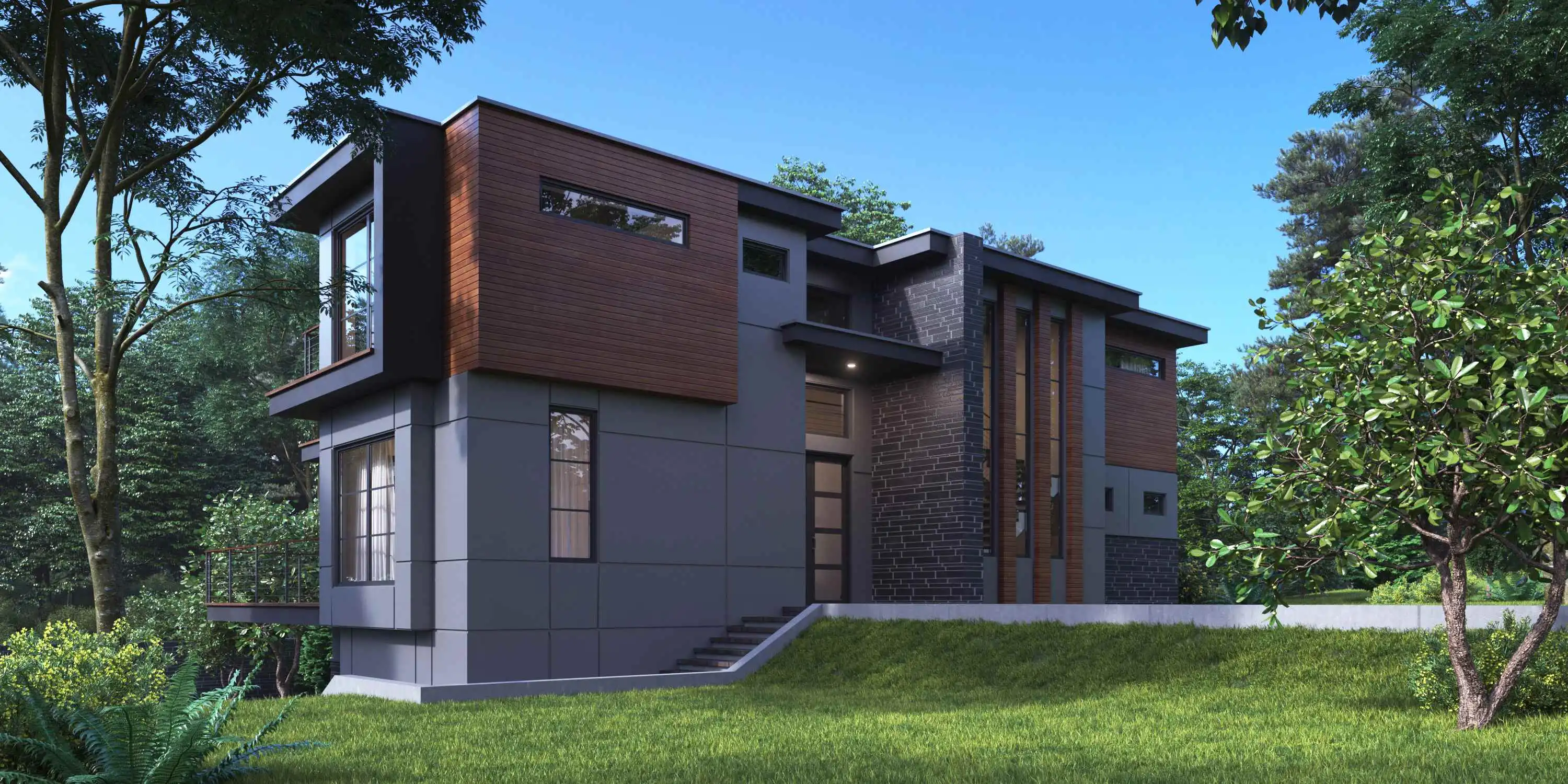 An immaculate design gives this modern home an unforgettable appeal both inside and out. Great for a narrow or sloped lot, notice how this plan's layout provides a comfortable 4,258 square foot layout and doesn't cut any corners on style. Inside, a drive-under 2-car garage begins the journey before you move upstairs to discover the main living spaces. This includes the great room and kitchen, as well as a private office and full guest suite. In total, this plan provides 4 beds and 5 baths, with the rest being located on the second floor. The upper floor is highlighted by the beautiful master bed and its dual-vanity en-suite, as well as a private balcony which makes for a truly relaxing end to any long day.