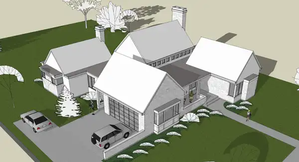 This brand new concept farmhouse floor plan features a modern flair inside and out! Add your own touches with this conceptual design. You'll receive an AutoCAD file of the floor plan and a 3D SketchUp model of the exterior so you can completely customize this house plan.