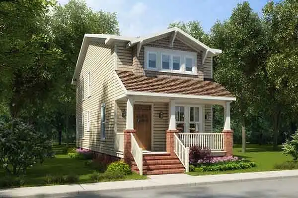 This narrow lot Craftsman house plan is less than 19 feet wide and frequently selected for construction in urban neighborhoods. This 3-bedroom design lives big in a compact structure that is affordable to build. Second floor bedrooms and baths are generous in size from minimizing hallways. The front porch is well suited to homeowners who are apt to socialize in the sidewalk society of the street.