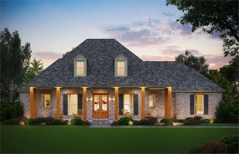 A refined southern classic with a touch of European charm makes this accessible ranch style plan a must-see. A comfortable 2,570 square foot layout is perfectly connected throughout, feeling comfortable and open to everyone. This home provides 4 large bedrooms, including a relaxing master suite, complete with a full spa bath and large walk-in closet. You'll also love this plan's great amount of storage space, including a full dedicated storage room directly off of the garage. This home is great for entertaining too, seen by the large gourmet kitchen and open living room which are directly off of the covered back porch.