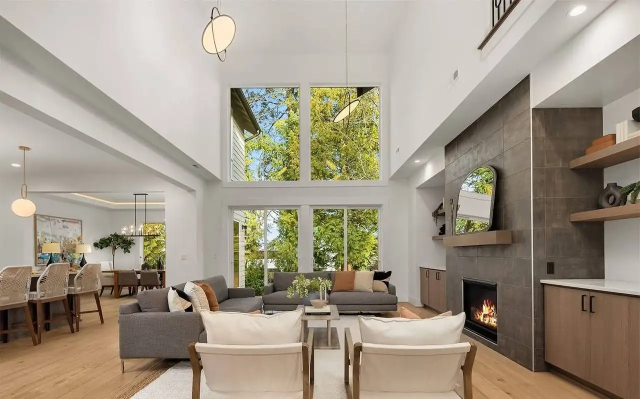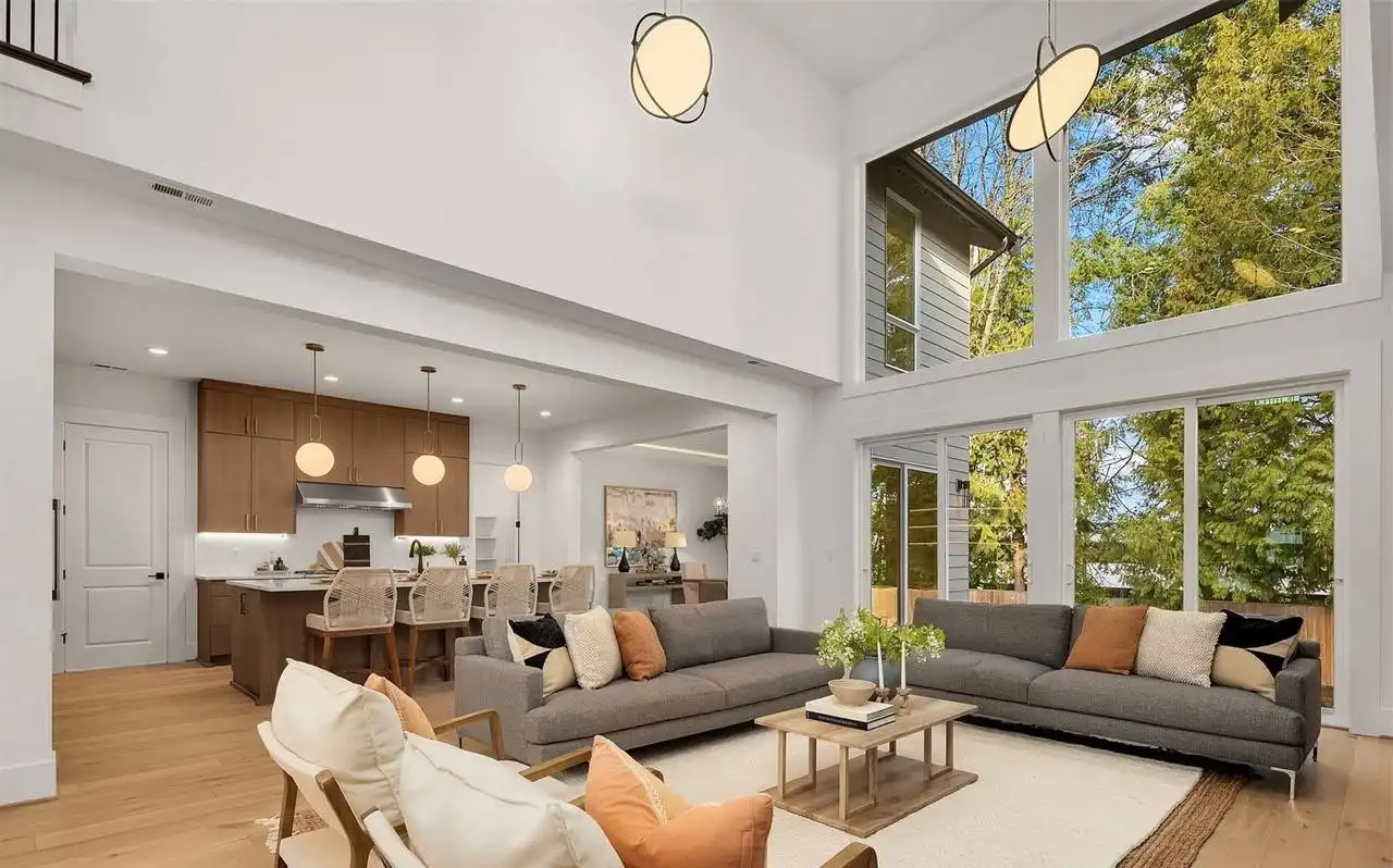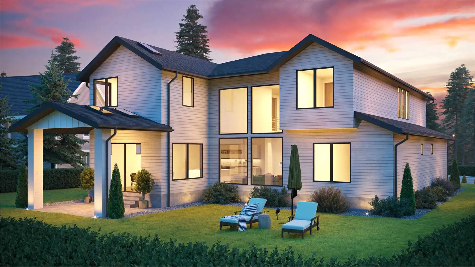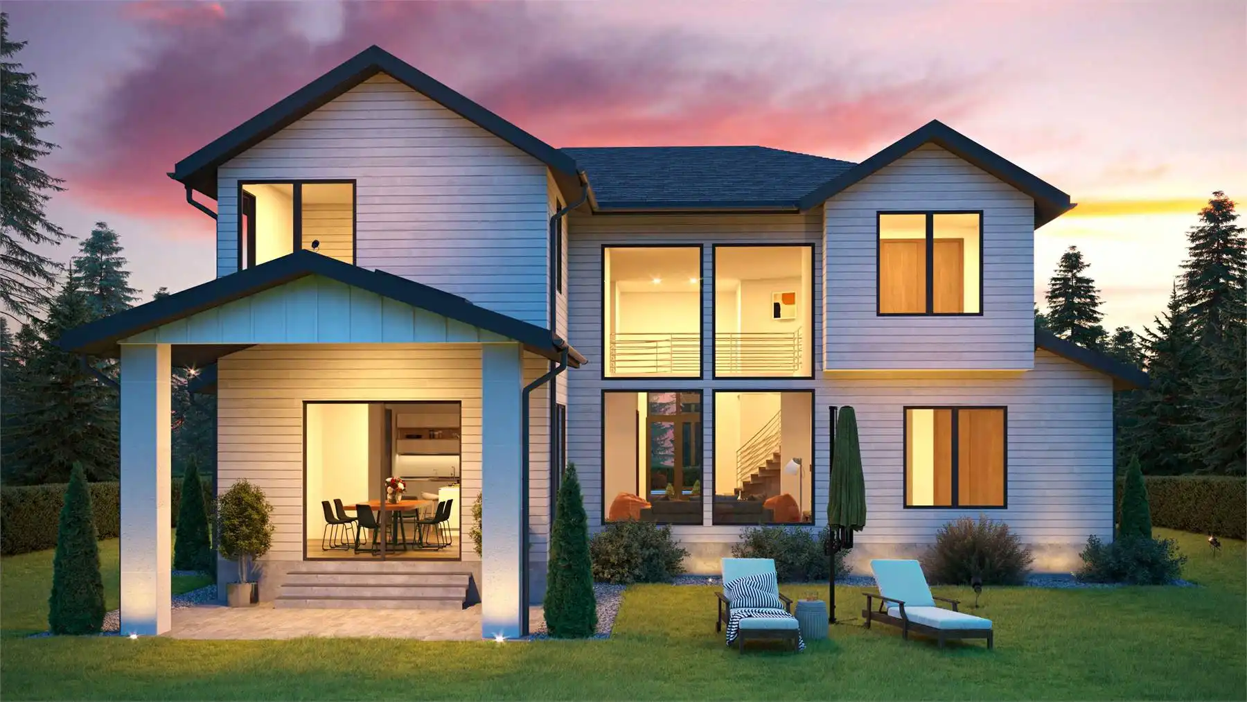 This luxury transitional farmhouse features 4,147 square feet of living space and showcases a spacious open floor plan and versatile living areas, ideal for the modern family. The front entryway opens to a grand foyer, featuring soaring ceilings and a graceful curved staircase leading up to the second level. To the right of the foyer, you will discover a generously-sized flex space, perfect for a home office, den, or guest suite. The centerpiece of the home is the expansive two-story great room, which boasts a cozy fireplace with built-ins and abundant natural light that pours in through large windows. The gourmet kitchen is a chef's delight, with a sizable island, ample counter space, and abundant storage. The adjacent dining room leads to a covered patio, providing an ideal spot for outdoor dining. Upstairs, you will find a spacious master suite, along with three additional bedrooms and a laundry room. This home also features a 4-car tandem garage, mudroom, and plenty of storage throughout, combining functionality and style in perfect harmony.