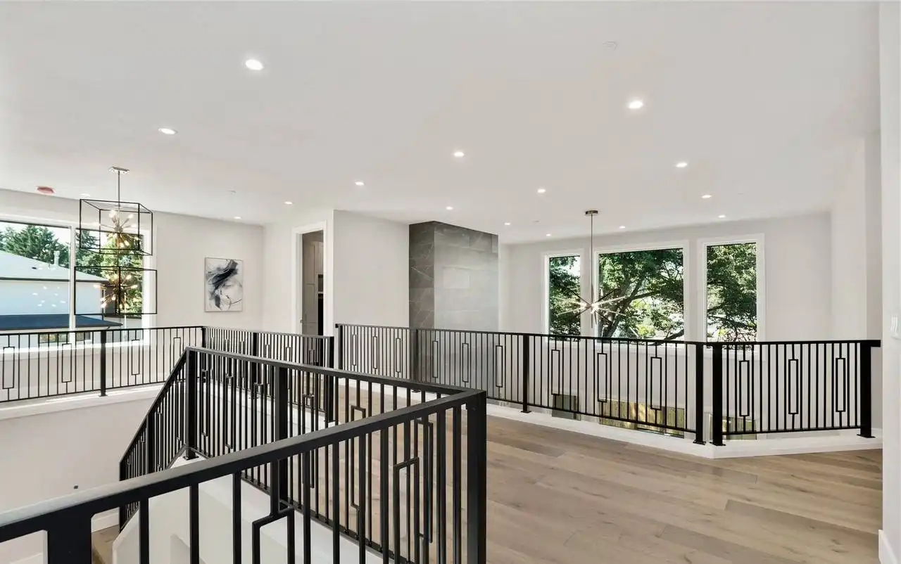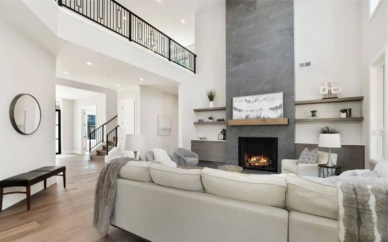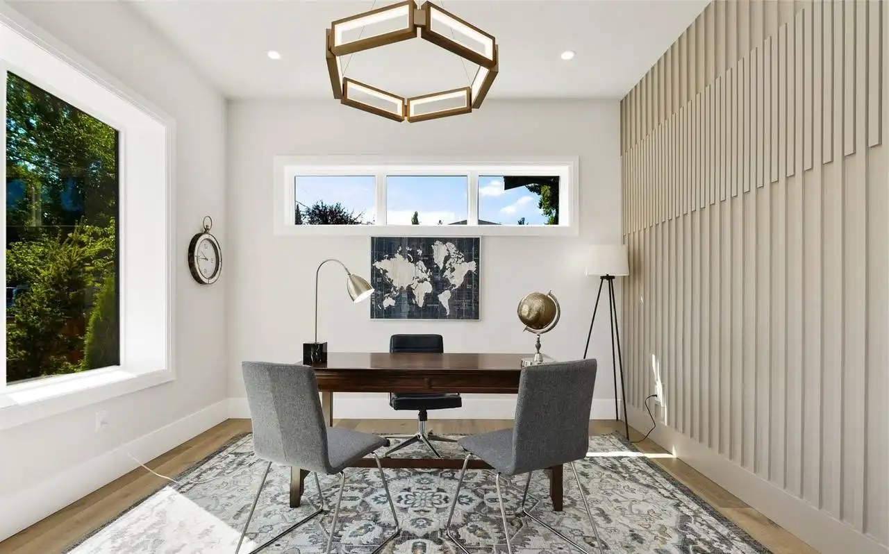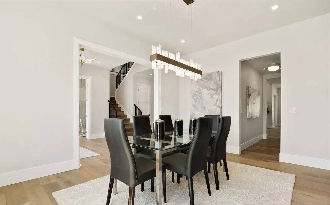 This stunning 4,054 square foot Craftsman-style home plan boasts a spacious open floor plan. The great room, spanning two stories, features a cozy fireplace, while the gourmet kitchen offers plenty of counter space, a large island with seating, and a cozy nook. Completing the main floor are a formal dining room, a home office, and a guest suite. Upstairs you'll find a luxurious master suite with a sitting area, two ensuite bedrooms, a bonus room, and a laundry room.