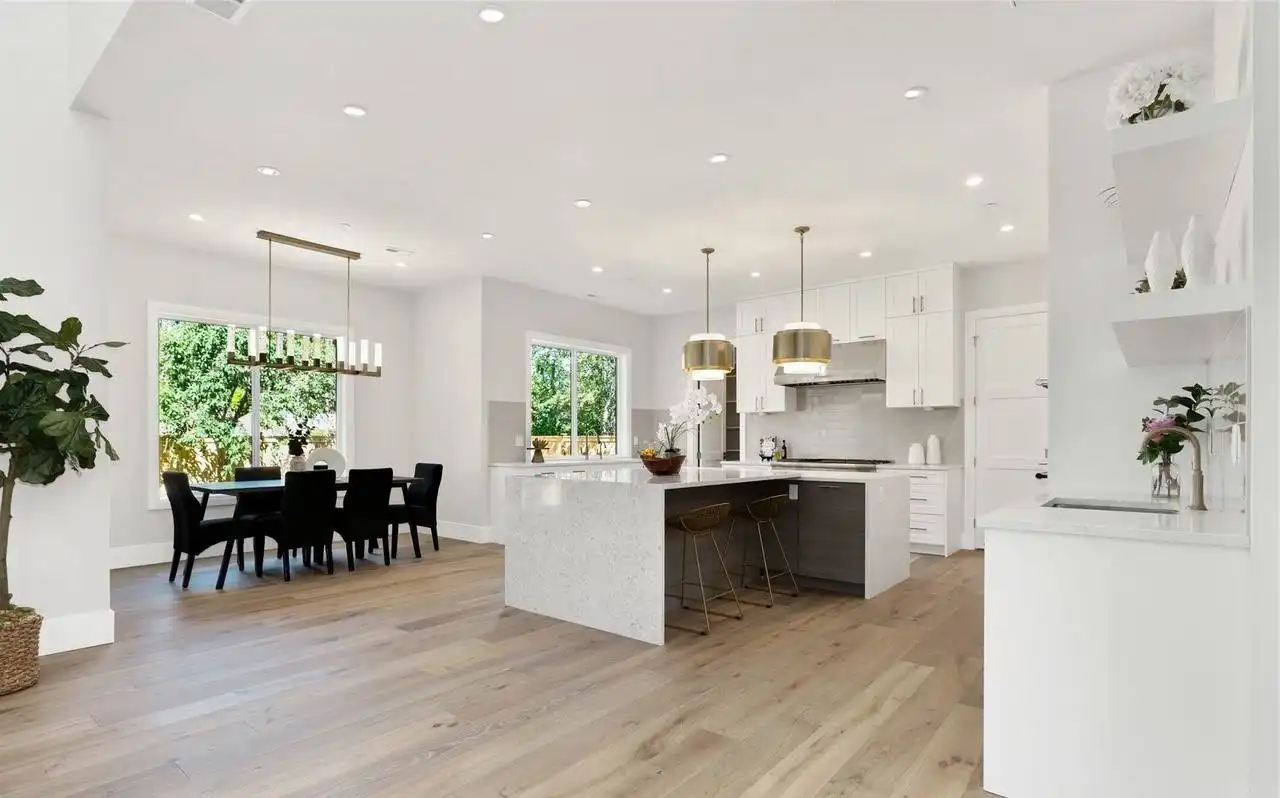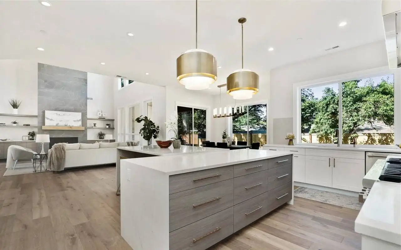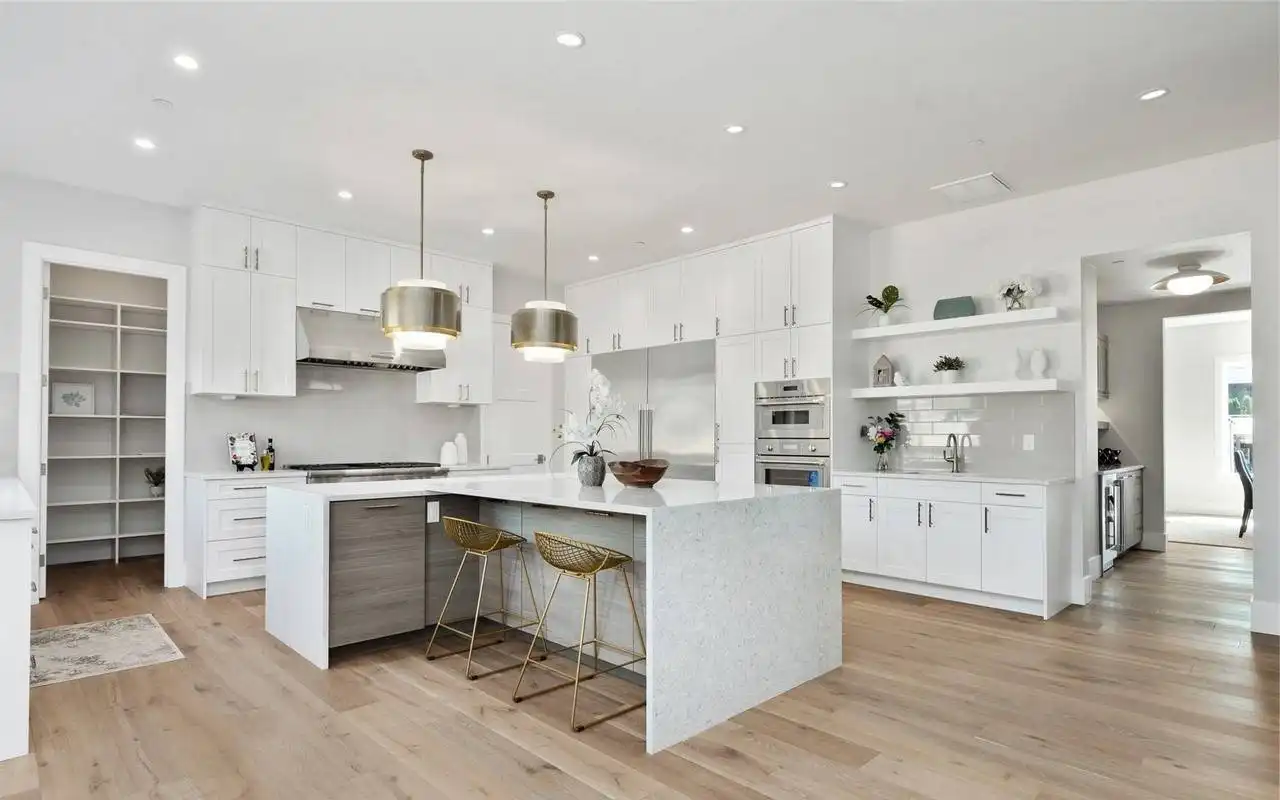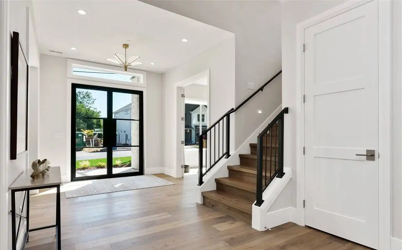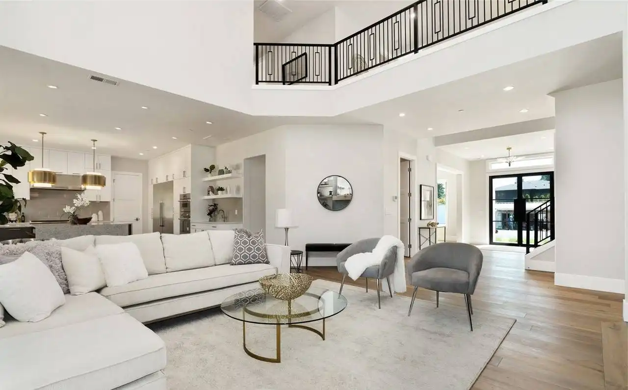This stunning 4,054 square foot Craftsman-style home plan boasts a spacious open floor plan. The great room, spanning two stories, features a cozy fireplace, while the gourmet kitchen offers plenty of counter space, a large island with seating, and a cozy nook. Completing the main floor are a formal dining room, a home office, and a guest suite. Upstairs you'll find a luxurious master suite with a sitting area, two ensuite bedrooms, a bonus room, and a laundry room.