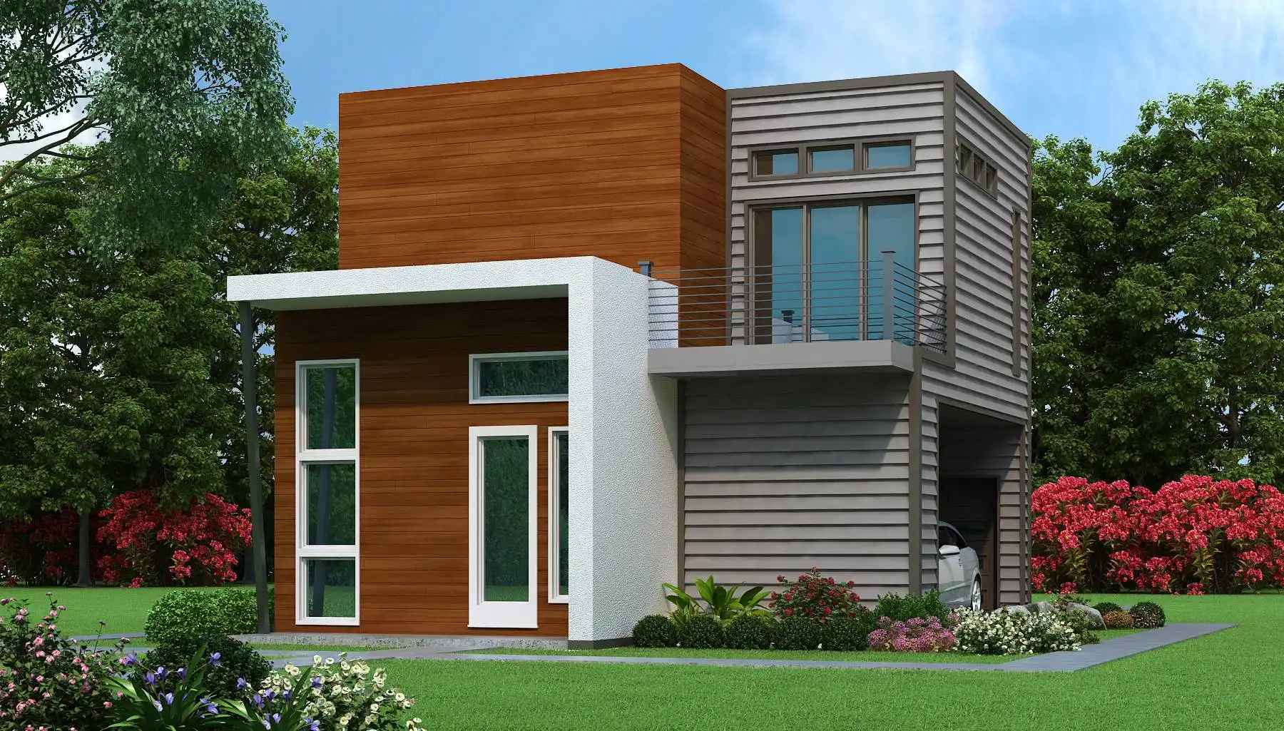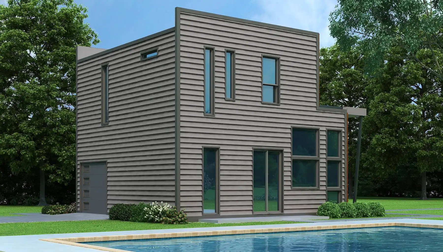 This unique two story modern tiny home boasts both functionality and style, with a unique open garage that can double as a covered outdoor living space. The exterior features sleek vertical wood siding that adds texture and warmth to the distinctive 832 square foot design. Inside, the main level is open and spacious with expansive windows. The kitchen is fully equipped and efficient, featuring an island for food prep and casual dining. Upstairs, two cozy bedrooms await, complete with a shared bath and a balcony that offers stunning views. Overall, this modern tiny home offers a perfect balance of form and function in a stylish and compact package.