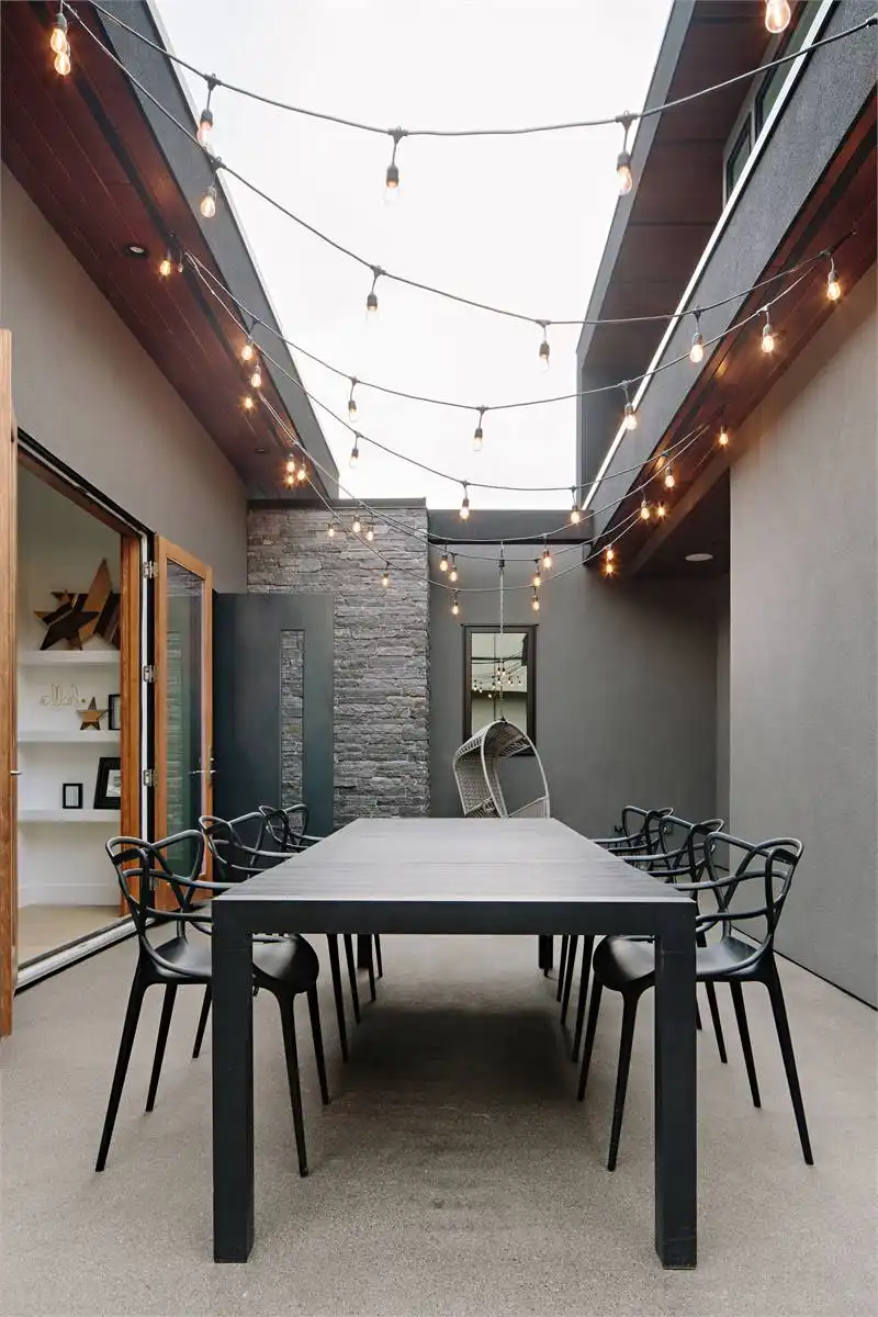 This stunning modern house plan spans two stories and boasts 3,461 square feet of living space. Designed with multi-generational living in mind, the house features a private casita. The exterior is a charming blend of traditional and modern styles, with brick and siding complementing each other to create an inviting curb appeal. Inside, the first floor offers an open concept design that seamlessly connects the living area to a gourmet kitchen with a large island and a dining area. This space is perfect for hosting family and friends. A private luxurious master suite with a spacious walk-in closet and a spa-like master bathroom complete with a soaking tub, separate shower, and double vanities complete the first floor layout. The second floor features two ensuite bedrooms, a large media room, and a balcony with pergola.