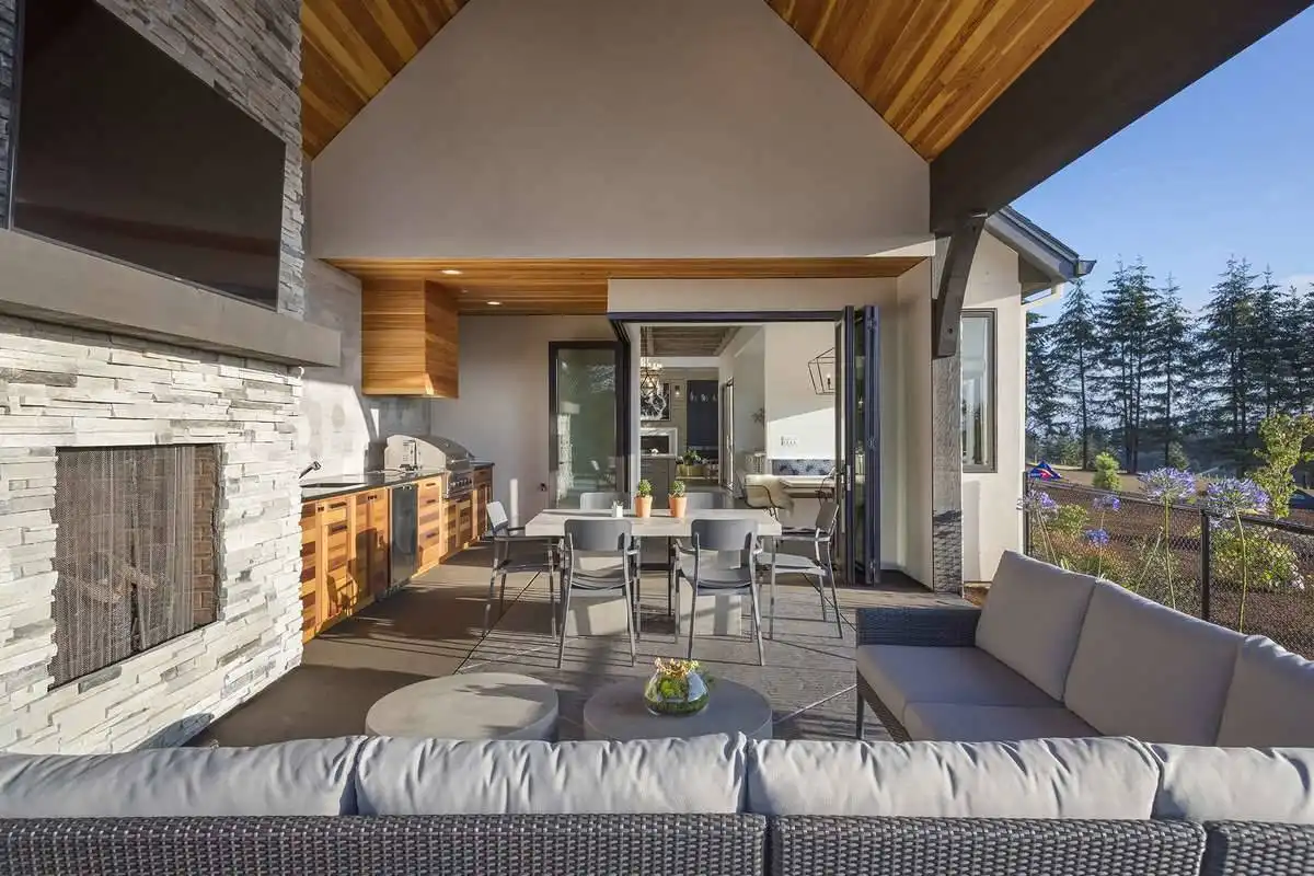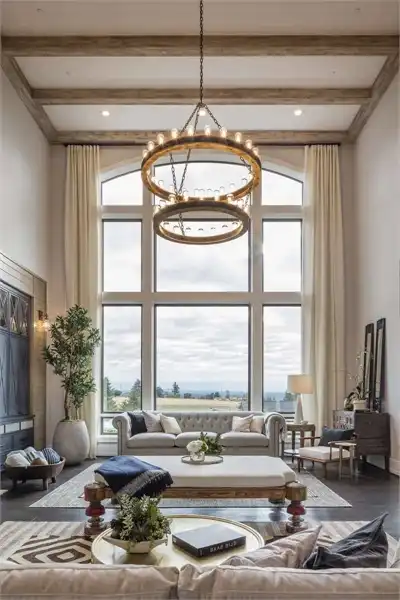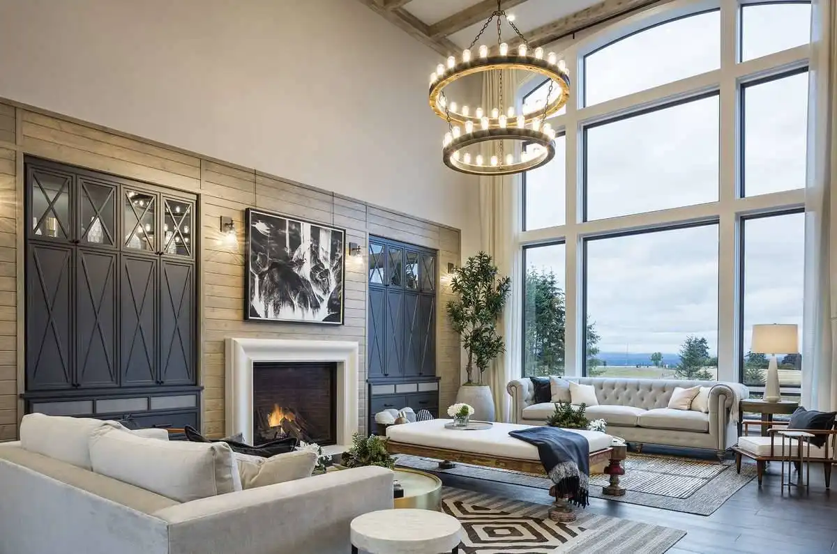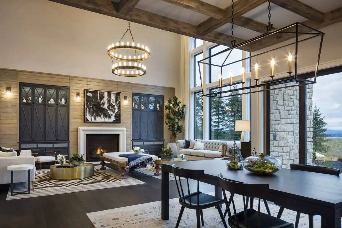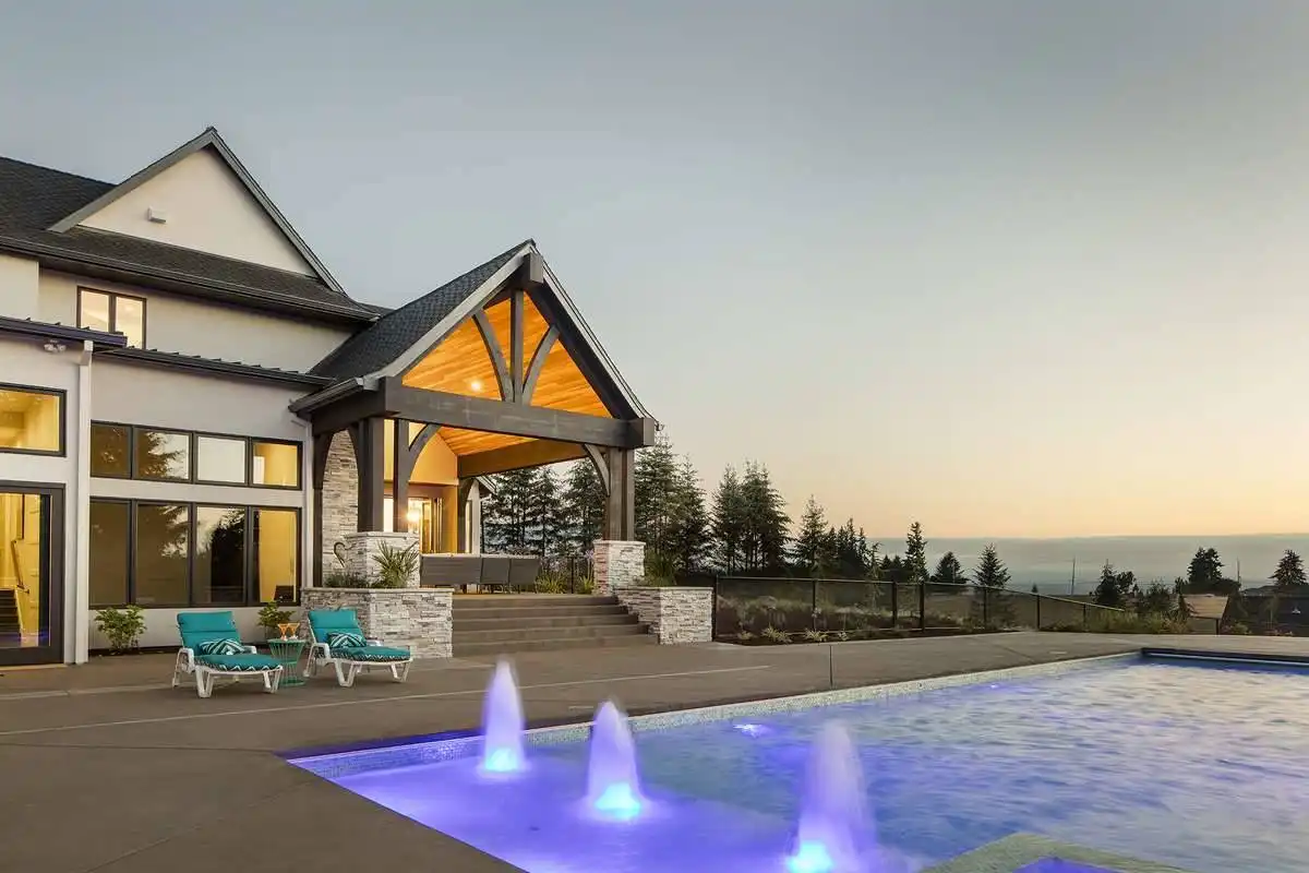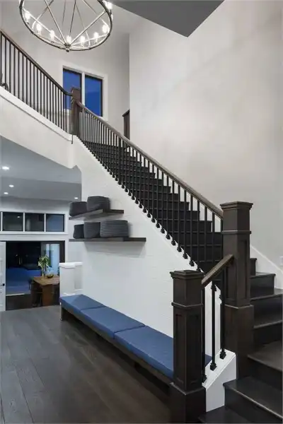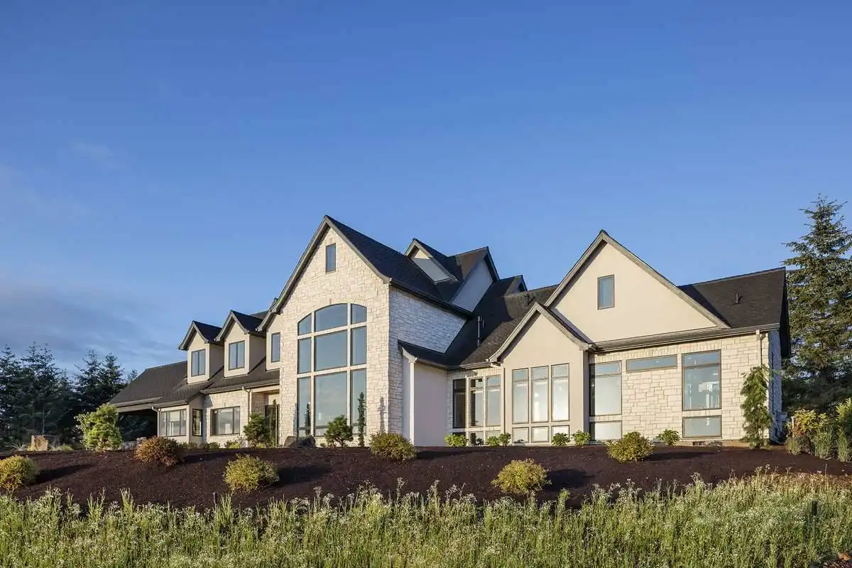 European style house plan, bathing the interior in sunlight. With 7,149 square feet, this home is truly the stuff of dreams. With rooms that you couldn’t even imagine having, this 4 bed, 4.5 bath home makes those dreams reality. The first floor is packed full of surprises that cater to every whim and desire that you may have. A stunning spiral staircase greets the entryway which spills out in to the 2-story great room, complete with the aforementioned cathedral window. The right wing of the main floor is home to an office and one of the most beautiful master suites available. The double doors open to the vaulted ceilings of the bedroom, while you move through to the luxurious bathroom and it’s his and hers separate walk-in closets. The other side of the main floor is where all of the general common areas are located, such as the kitchen and dining room and the massive eat-in island. The kitchen opens to the outdoor entertainment area which makes parties and barbecues an ease. With the outdoor kitchen and ready-made designs for an in-ground pool, the entire neighborhood will be jealous of this home. As an added bonus, the main floor has dedicated space for a shop or in-home gym, as well as a large game room, and even a golf simulator room for an especially unique flair. The second floor is much more understated but still as functional, housing 2 bedrooms, a study, and a massive guest bedroom, perfect for extended stays from the in-laws. The space and design of this plan have all of the features that you could want and more; going a long way towards making that dream a reality.