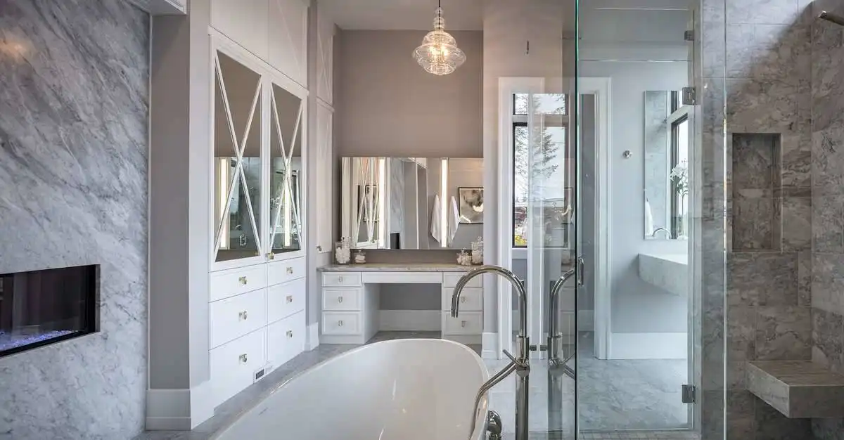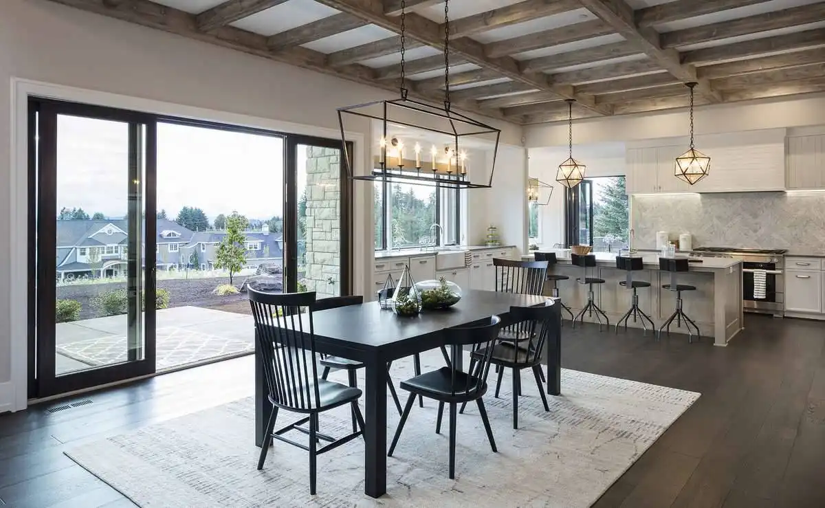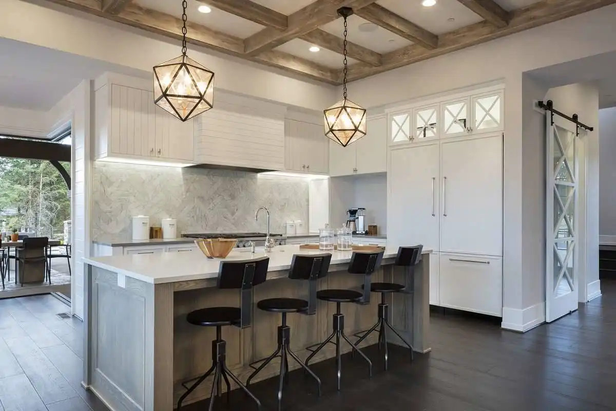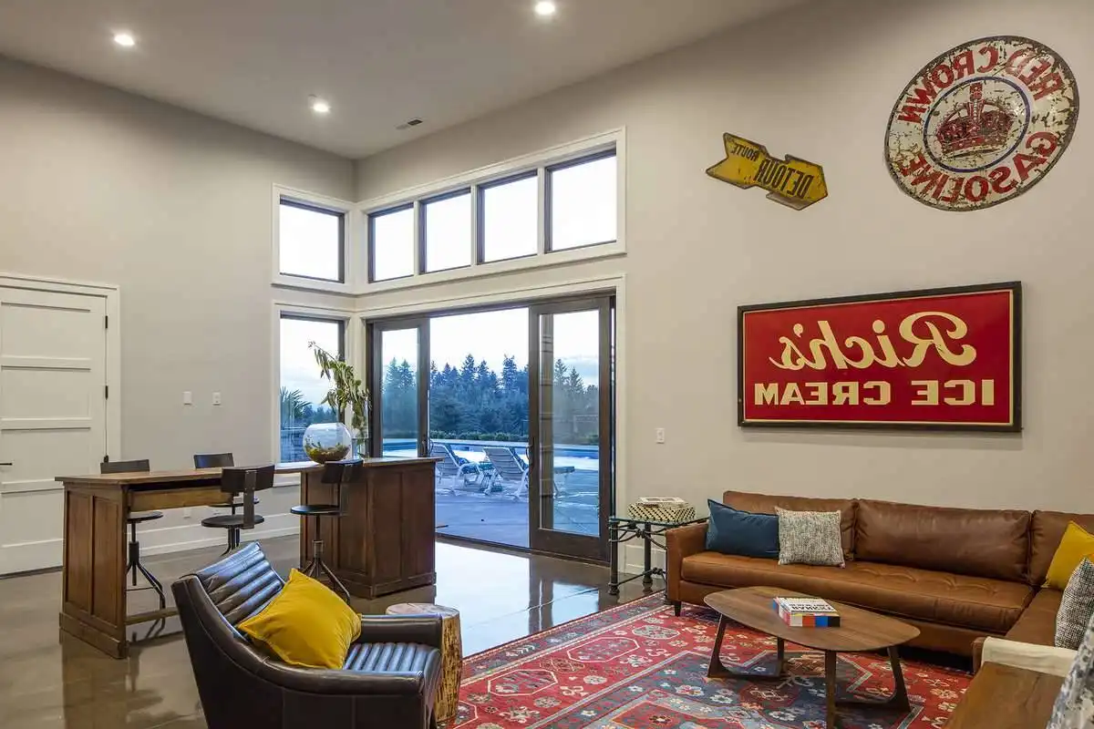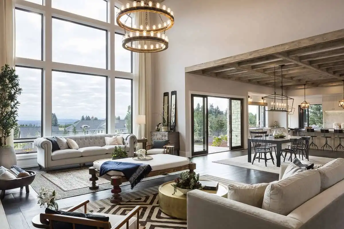 European style house plan, bathing the interior in sunlight. With 7,149 square feet, this home is truly the stuff of dreams. With rooms that you couldn’t even imagine having, this 4 bed, 4.5 bath home makes those dreams reality. The first floor is packed full of surprises that cater to every whim and desire that you may have. A stunning spiral staircase greets the entryway which spills out in to the 2-story great room, complete with the aforementioned cathedral window. The right wing of the main floor is home to an office and one of the most beautiful master suites available. The double doors open to the vaulted ceilings of the bedroom, while you move through to the luxurious bathroom and it’s his and hers separate walk-in closets. The other side of the main floor is where all of the general common areas are located, such as the kitchen and dining room and the massive eat-in island. The kitchen opens to the outdoor entertainment area which makes parties and barbecues an ease. With the outdoor kitchen and ready-made designs for an in-ground pool, the entire neighborhood will be jealous of this home. As an added bonus, the main floor has dedicated space for a shop or in-home gym, as well as a large game room, and even a golf simulator room for an especially unique flair. The second floor is much more understated but still as functional, housing 2 bedrooms, a study, and a massive guest bedroom, perfect for extended stays from the in-laws. The space and design of this plan have all of the features that you could want and more; going a long way towards making that dream a reality.