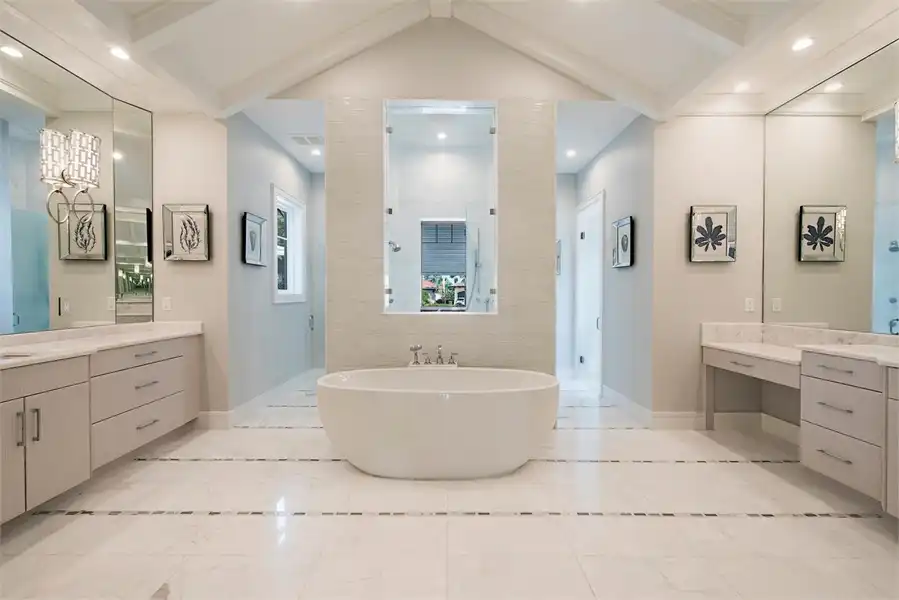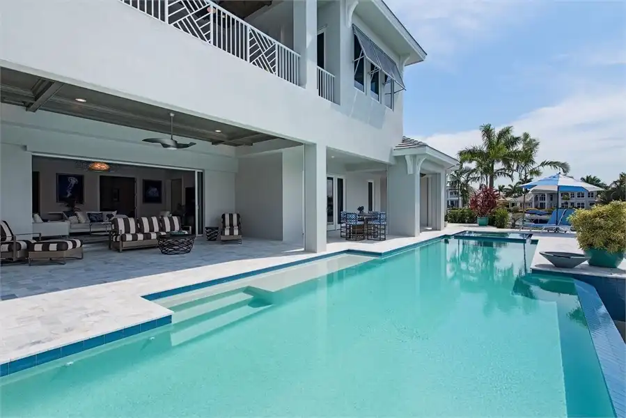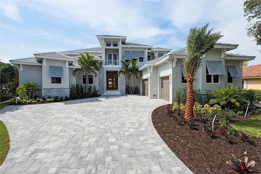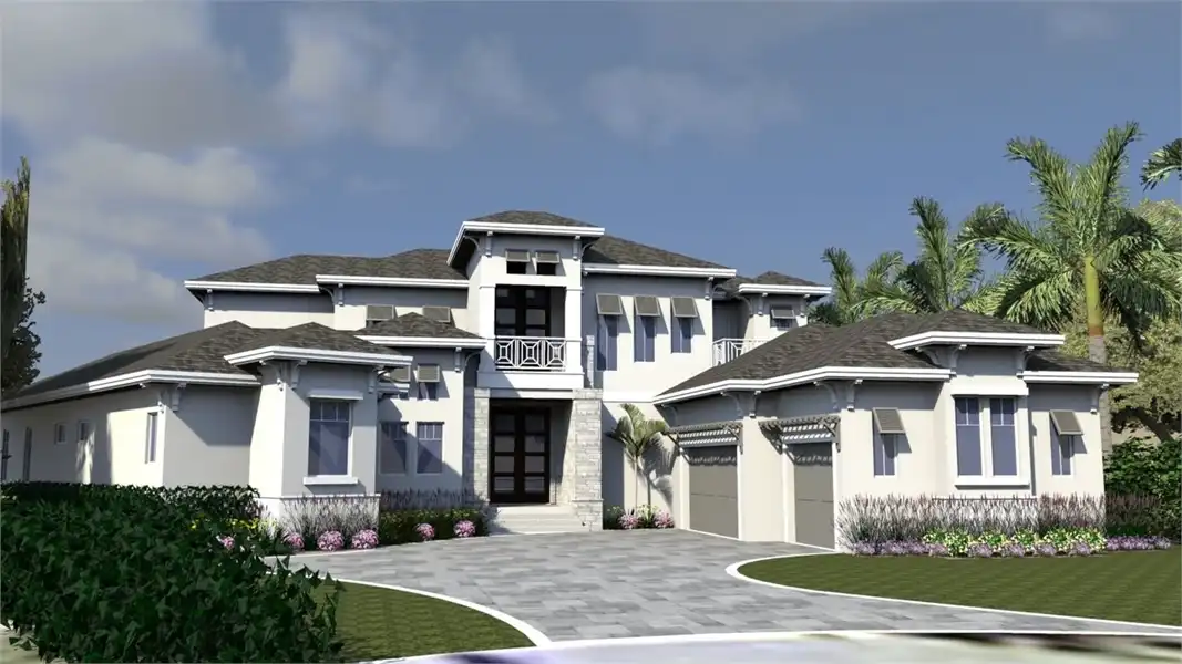 This spacious 4 bedroom, 4 bathroom home has a wonderful open floor plan design. Complete with a 3-car garage connects to this 6,005 square foot home. You have the master suite with a walk-in closet which connects to the master bath. Towards the middle of the house you have two studies and a living room. The kitchen, dining and great room will make entertaining a breeze. The first floor guest bedroom leads out to the pool deck where the covered lanai is over looking the pool/spa. This home plan also includes an elevator. The second floor contains additional guest suites each having their own bathrooms and walk-in closets. As well as a covered balcony which over looks the pool.