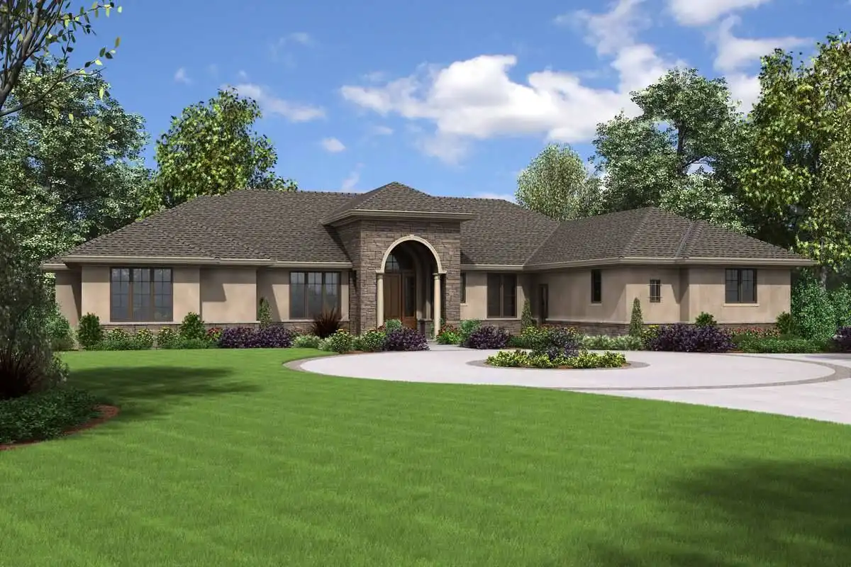 This European style house plan is only matched by its function and size upon entering. Every room in this 4,925 square foot home is maximized to its fullest potential, all with the goal of making your life easier and more luxurious. The large cathedral windows on the back of the home let in tons of natural light, making the spaces feel even more open and relaxing. With a 2-story outdoor living area outfitted with all of the amenities that are needed for an amazing party or group get together and a massive game room complete with a wet bar, this home will exceed all of your expectations. And with 5 bedrooms, you’ll never have to worry about running out of space again.