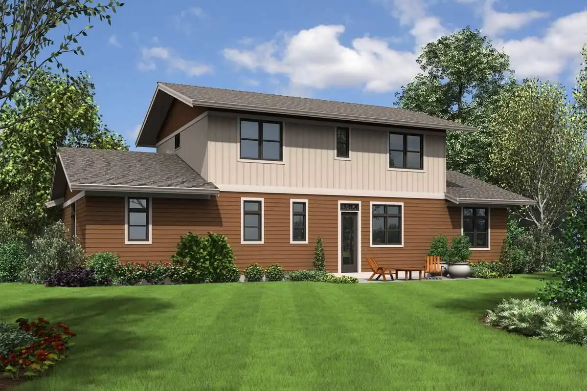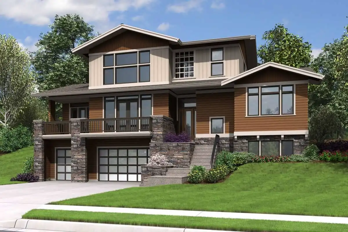 A home that is as enchanting as its name, this contemporary craftsman plan has a stylish flair about it. Within the 3,146 square feet of this home is an expansive layout, complete with 3 bedrooms and 2.5 bathrooms. The lowest level begins with the drive-in 3-car garage located beneath the main floor. Additionally, the lower floor has a game room and plenty of storage. The main floor is the real star of the show, with its sprawling layout. A great front deck is accessible by the 2-story great room, while a gorgeous walk-up gives way to the foyer and kitchen. Highlighting the kitchen is one of the largest and most elegant islands that you have ever seen, as well as a walk-in pantry. A first-floor master suite and enormous walk-in closet completes the floor. The upper floor is much simpler yet private, as it offers the final two bedrooms as well as a shard full bath. The walkway to the rooms is open to the great room below, making the space feel even more grand