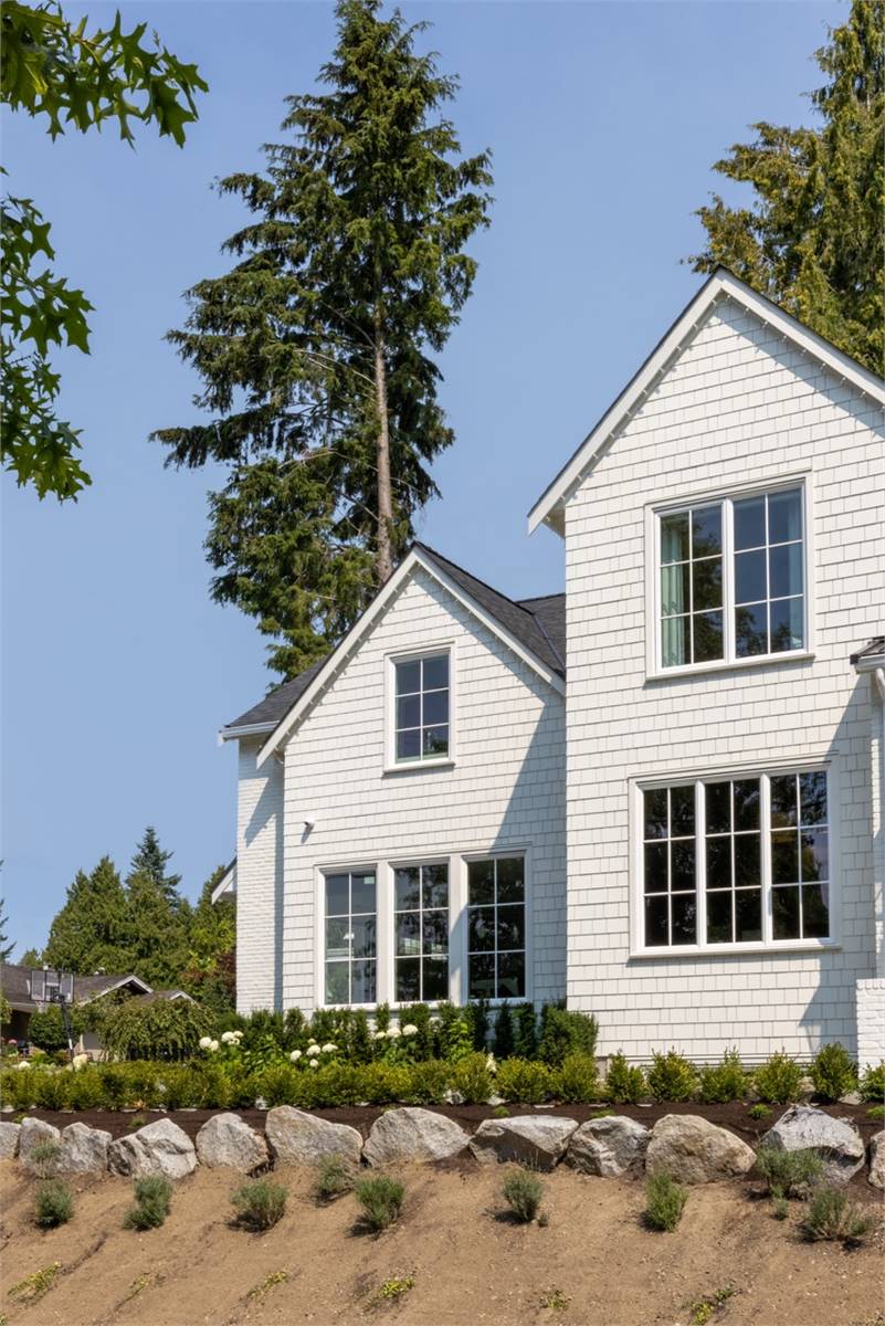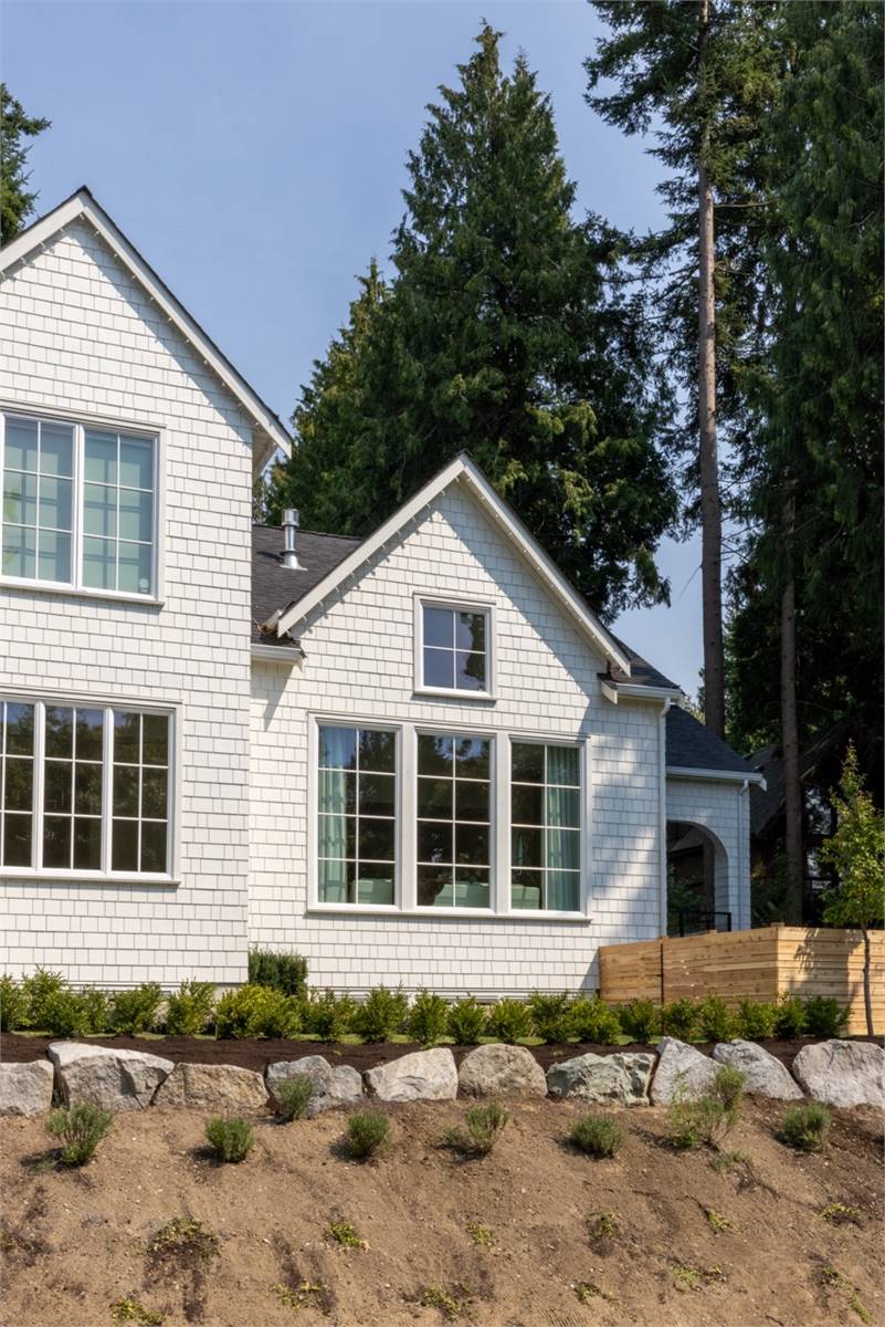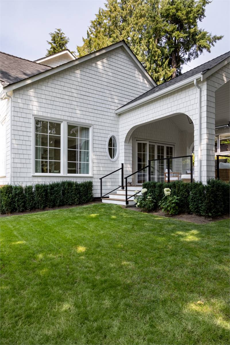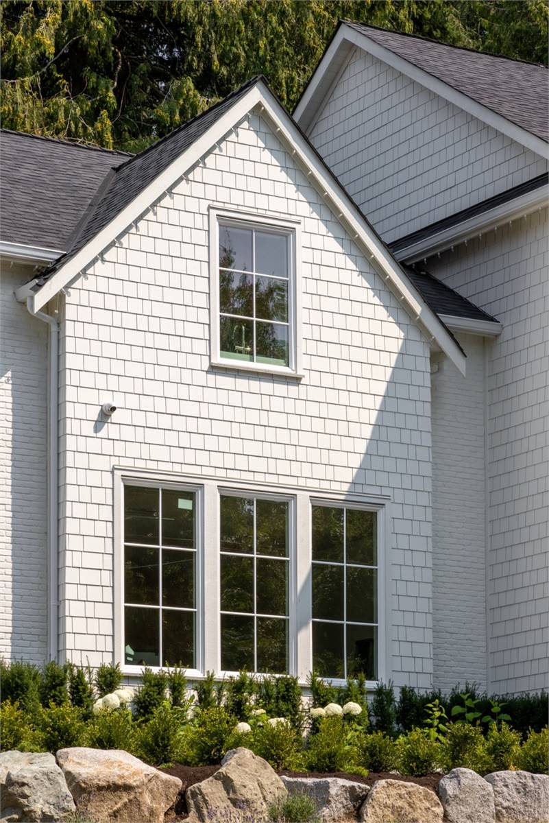 House Plan 1936 is an outstanding transitional design for a family that needs space with its 3,763 square feet across two stories, and the option for 1,998 more if you choose to finish the basement. Behind that bold gabled exterior kept clean thanks to the side-entry garage, you'll find a mix of formal and informal spaces on the main level. The den and dining room flank the foyer while the vaulted great room is open to the island kitchen and informal eating area. This space opens to the side patios--open and covered, with an outdoor kitchen to boot--to offer even more functional space. There's also a large laundry/mudroom with a dog wash on this level! Head upstairs to find all four bedrooms. They're placed across a loft overlooking the foyer and each one has a vaulted ceiling. The primary bedroom provides a luxe experience with its huge five-piece ensuite bath. There's also a smaller bedroom suite and a pair of bedrooms that share a hall bath. Those who want more only need to look to the basement with its rec room with a bar, gym with a sauna, and a guest bedroom suite!