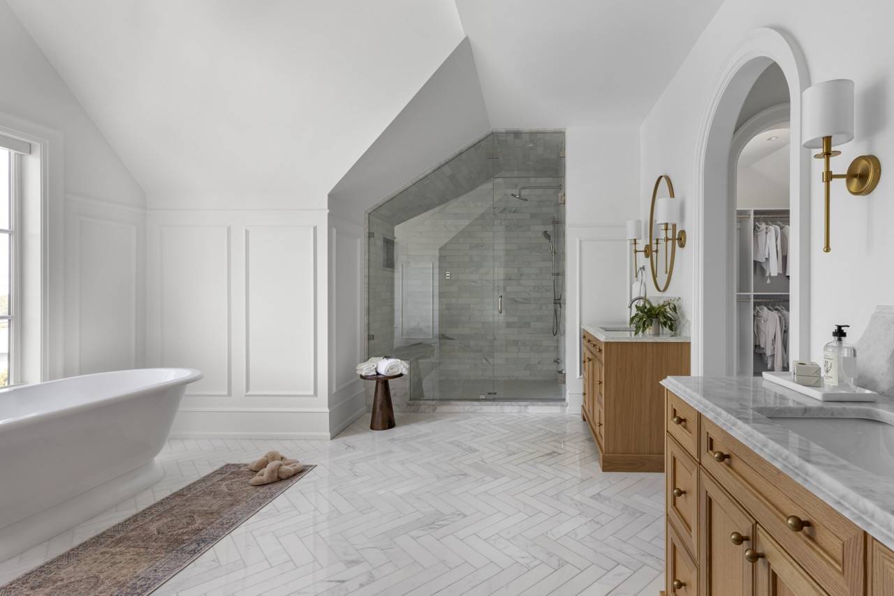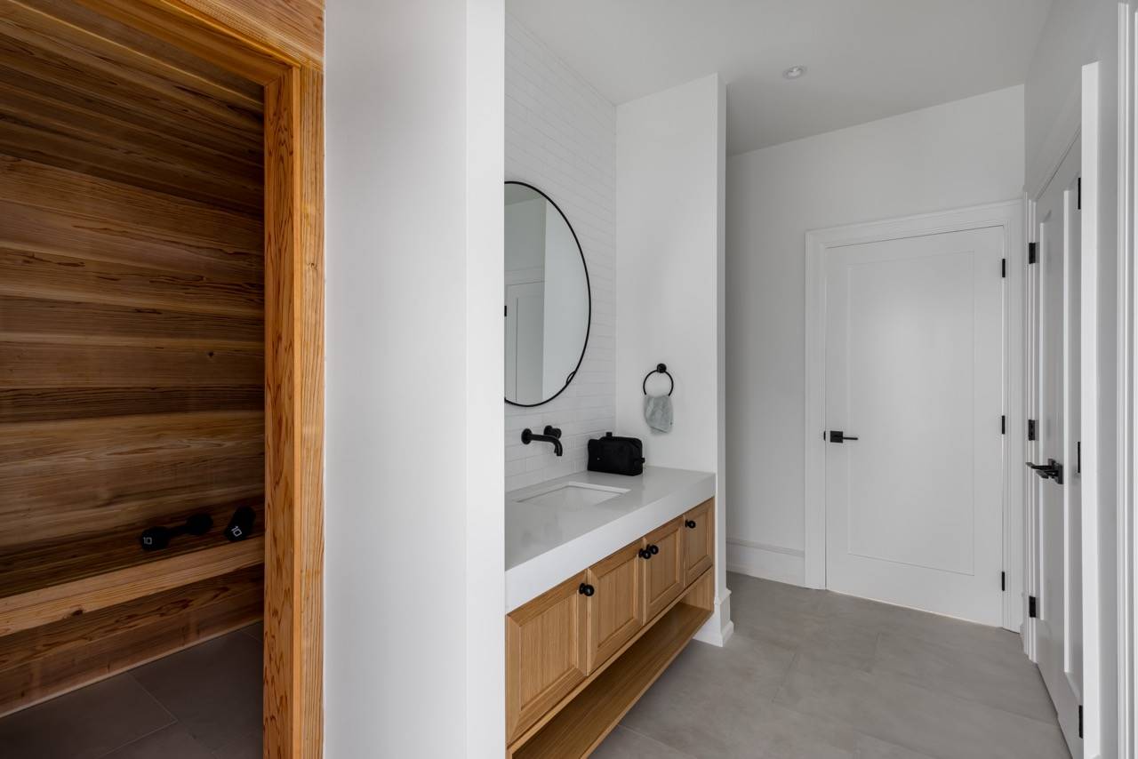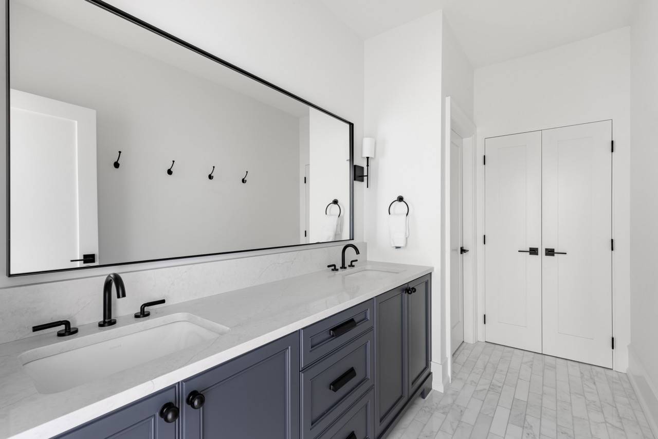 House Plan 1936 is an outstanding transitional design for a family that needs space with its 3,763 square feet across two stories, and the option for 1,998 more if you choose to finish the basement. Behind that bold gabled exterior kept clean thanks to the side-entry garage, you'll find a mix of formal and informal spaces on the main level. The den and dining room flank the foyer while the vaulted great room is open to the island kitchen and informal eating area. This space opens to the side patios--open and covered, with an outdoor kitchen to boot--to offer even more functional space. There's also a large laundry/mudroom with a dog wash on this level! Head upstairs to find all four bedrooms. They're placed across a loft overlooking the foyer and each one has a vaulted ceiling. The primary bedroom provides a luxe experience with its huge five-piece ensuite bath. There's also a smaller bedroom suite and a pair of bedrooms that share a hall bath. Those who want more only need to look to the basement with its rec room with a bar, gym with a sauna, and a guest bedroom suite!
