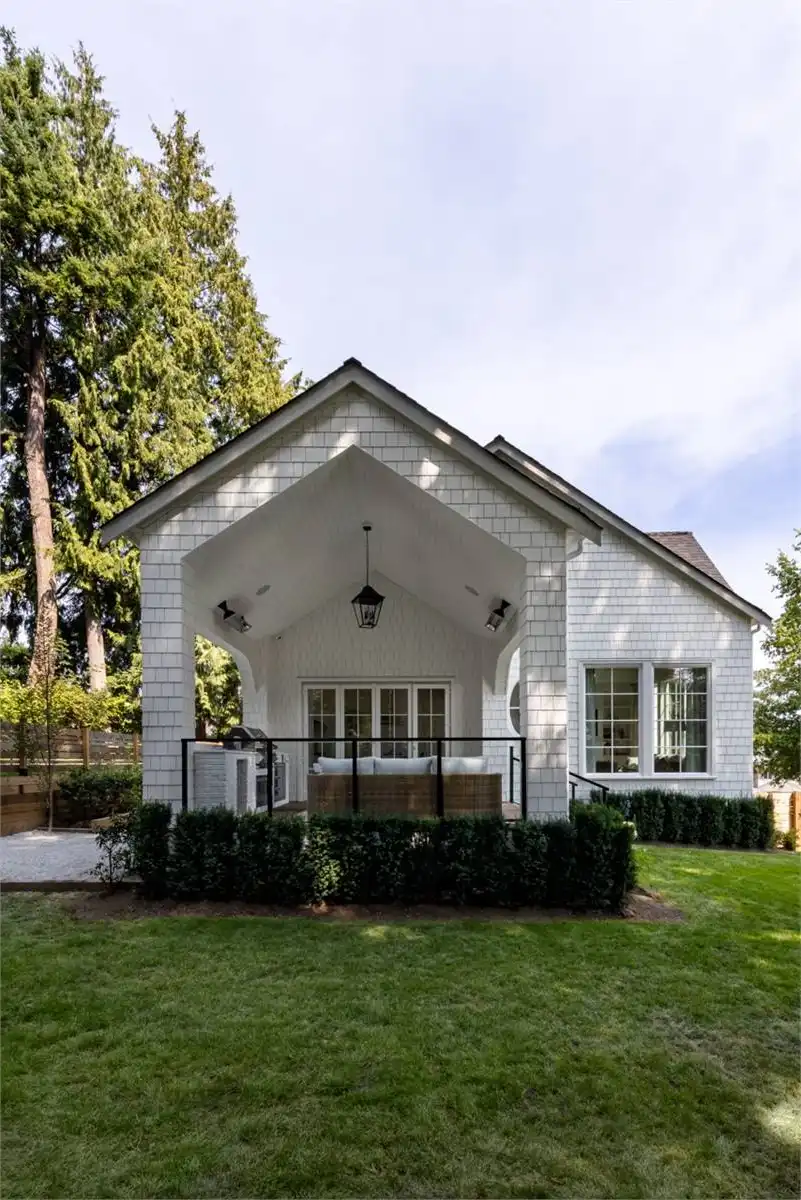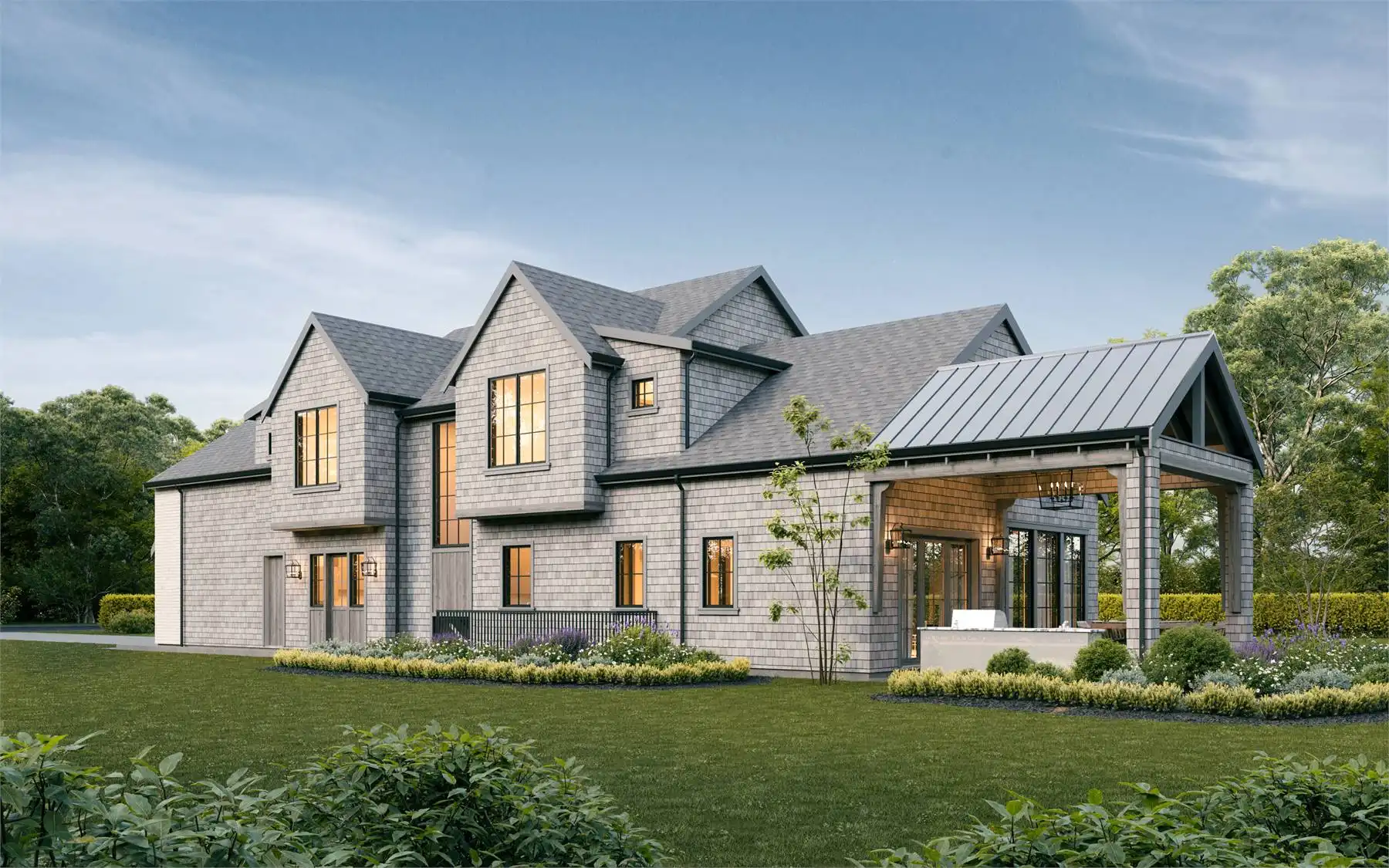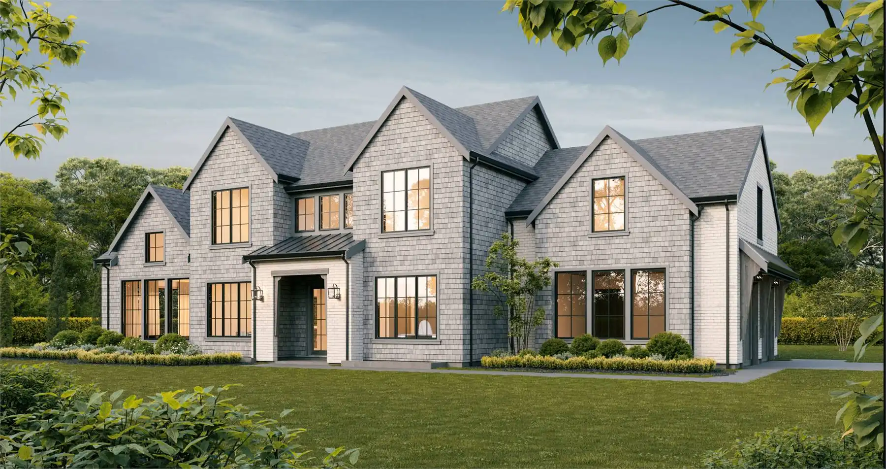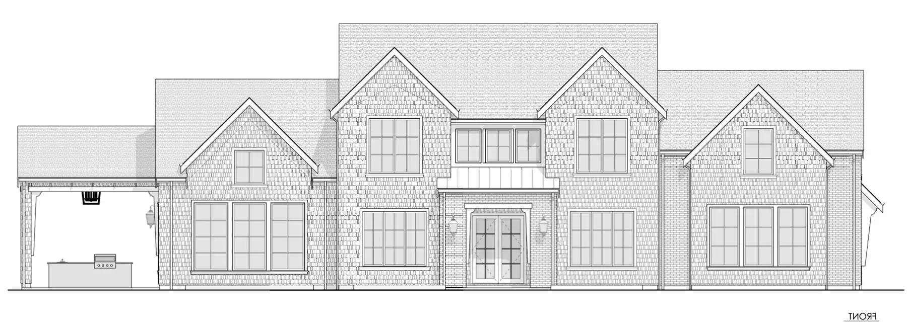 House Plan 1936 is an outstanding transitional design for a family that needs space with its 3,763 square feet across two stories, and the option for 1,998 more if you choose to finish the basement. Behind that bold gabled exterior kept clean thanks to the side-entry garage, you'll find a mix of formal and informal spaces on the main level. The den and dining room flank the foyer while the vaulted great room is open to the island kitchen and informal eating area. This space opens to the side patios--open and covered, with an outdoor kitchen to boot--to offer even more functional space. There's also a large laundry/mudroom with a dog wash on this level! Head upstairs to find all four bedrooms. They're placed across a loft overlooking the foyer and each one has a vaulted ceiling. The primary bedroom provides a luxe experience with its huge five-piece ensuite bath. There's also a smaller bedroom suite and a pair of bedrooms that share a hall bath. Those who want more only need to look to the basement with its rec room with a bar, gym with a sauna, and a guest bedroom suite!