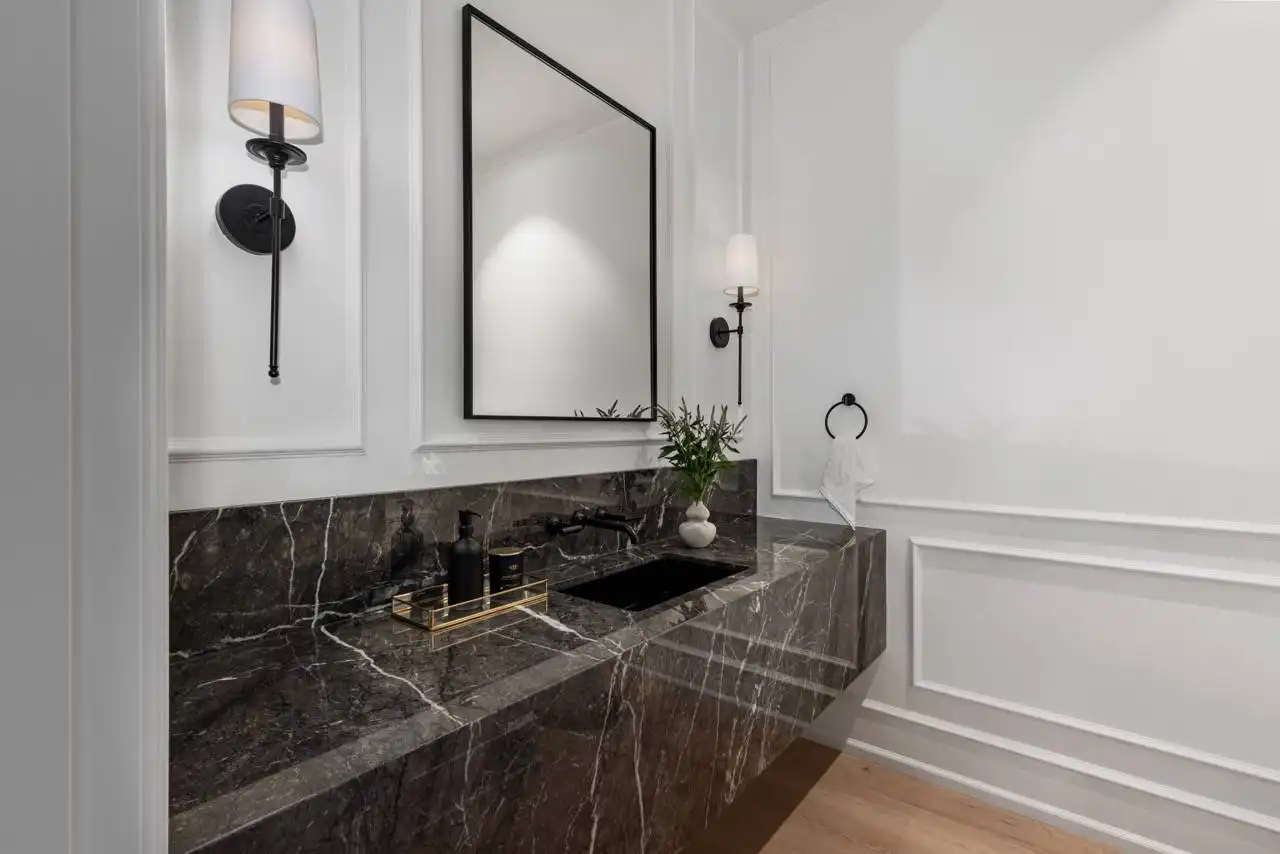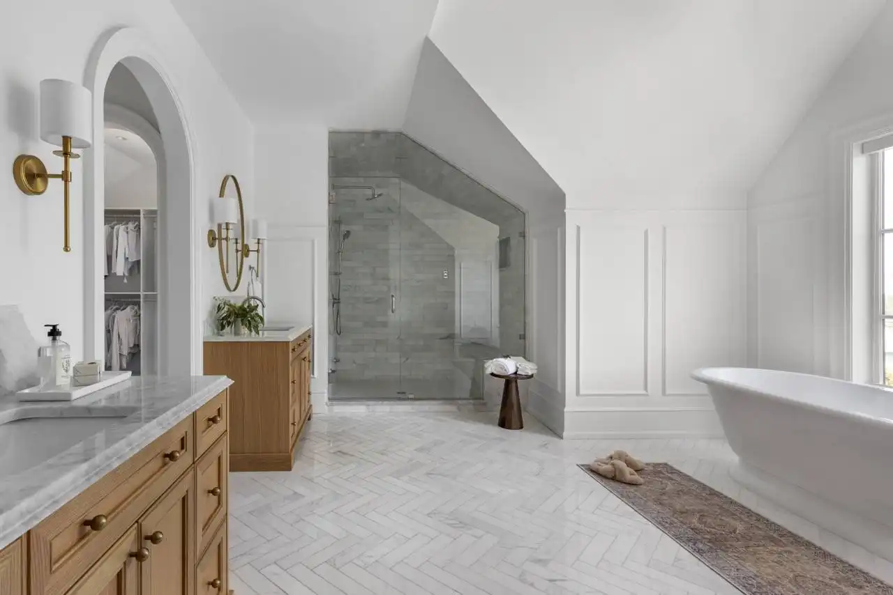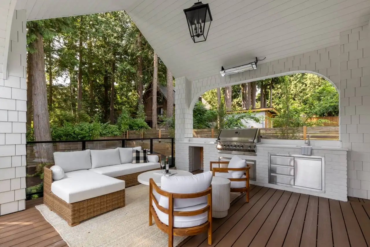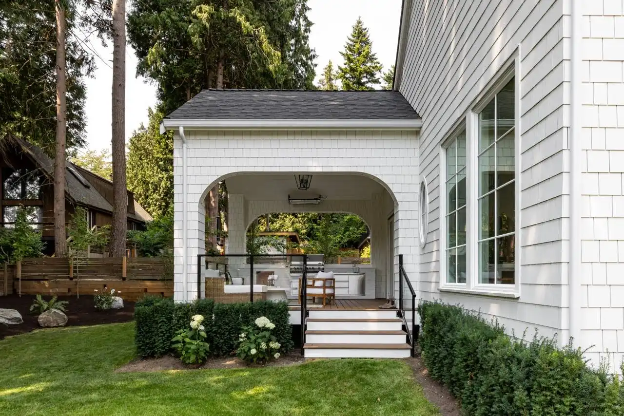 House Plan 1936 is an outstanding transitional design for a family that needs space with its 3,763 square feet across two stories, and the option for 1,998 more if you choose to finish the basement. Behind that bold gabled exterior kept clean thanks to the side-entry garage, you'll find a mix of formal and informal spaces on the main level. The den and dining room flank the foyer while the vaulted great room is open to the island kitchen and informal eating area. This space opens to the side patios--open and covered, with an outdoor kitchen to boot--to offer even more functional space. There's also a large laundry/mudroom with a dog wash on this level! Head upstairs to find all four bedrooms. They're placed across a loft overlooking the foyer and each one has a vaulted ceiling. The primary bedroom provides a luxe experience with its huge five-piece ensuite bath. There's also a smaller bedroom suite and a pair of bedrooms that share a hall bath. Those who want more only need to look to the basement with its rec room with a bar, gym with a sauna, and a guest bedroom suite!