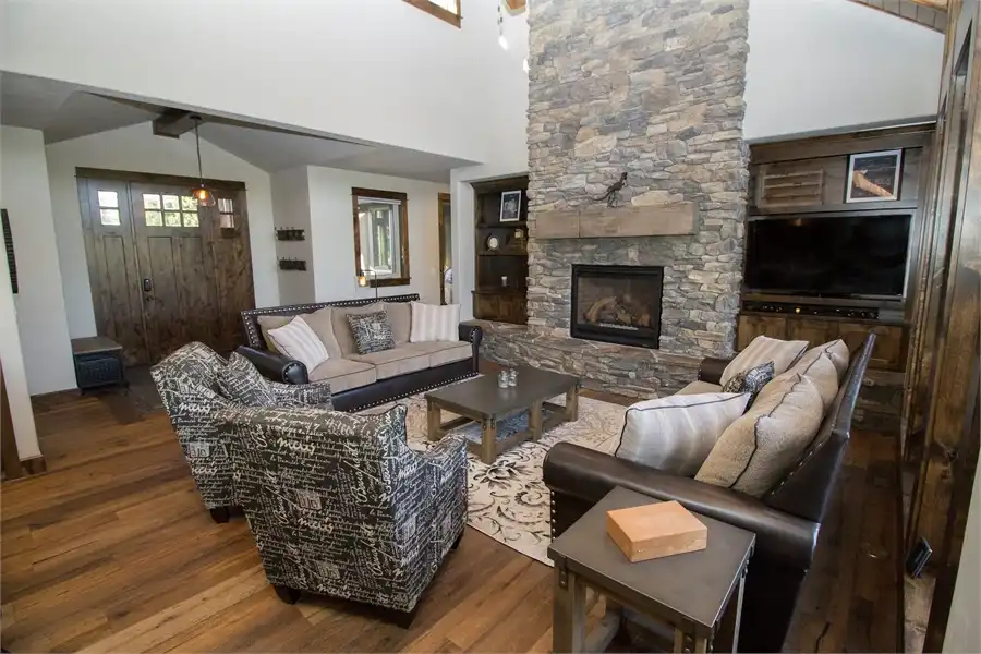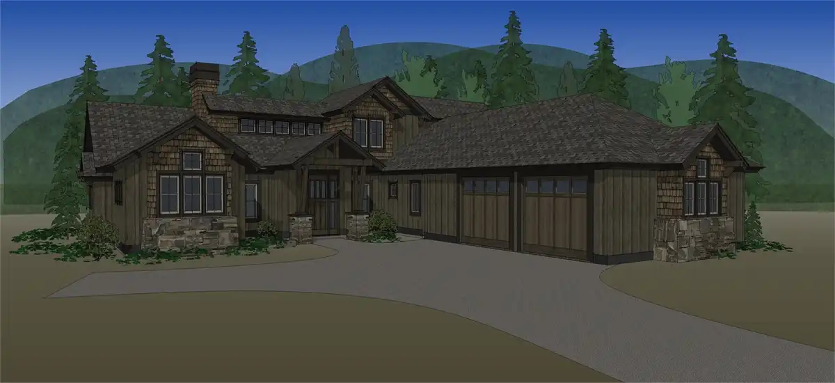 Rustic and attractive, this 2,360-sq.-ft. lake home is a one-story with a bonus area above the kitchen. The dramatic great room offers lake views as it hosts your friends and family in comfort and style. Whip up some snacks or a meal in the spacious island kitchen. The versatile dining room opens to the backyard; how about dessert and coffee under the stars? The posh master suite gives you privacy and luxury.