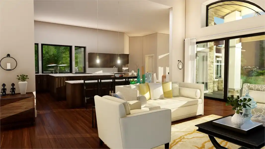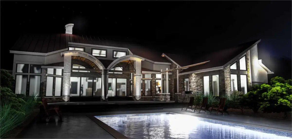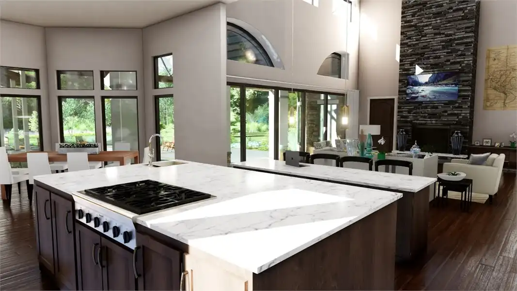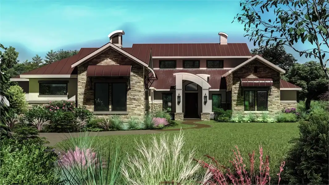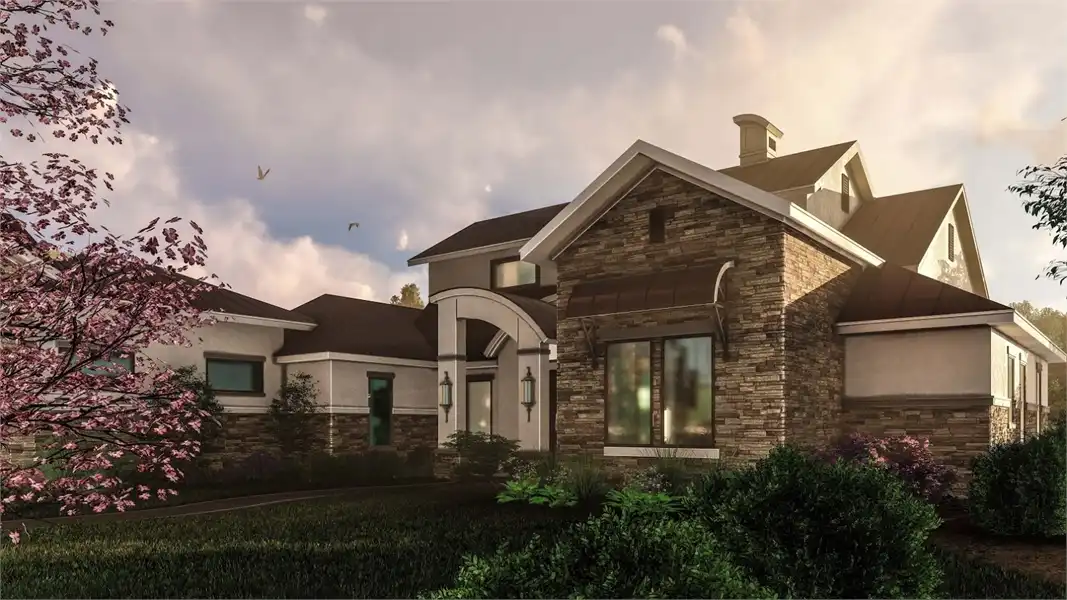This four-bedroom beauty boasts traditional gables, but a modern entryway. You'll be surprised to find all the unique spaces in the home's 3,493 square feet. Gather friends and family in the oversized great room, which is visually expanded by a high ceiling. A fireplace adds warmth and ambience. The open kitchen incorporates a nearby pantry and butler's pantry. Note the fun craft area, just a few steps away. A garden tub and a sit-down shower anchor the luxurious master suite. An outdoor shower is a nice extra. A study or sun room would be a nice place to curl up with the latest mystery novel.