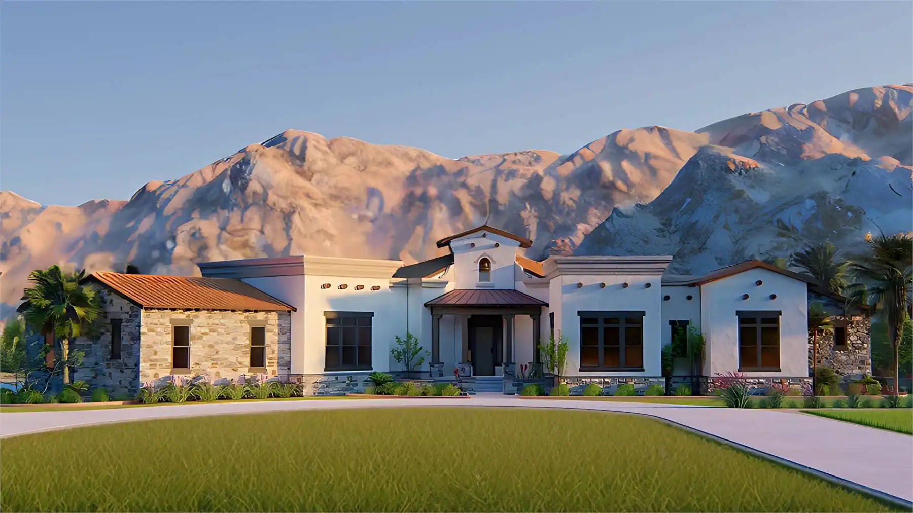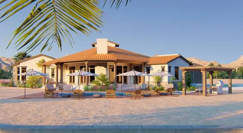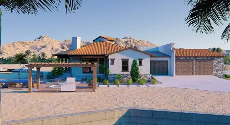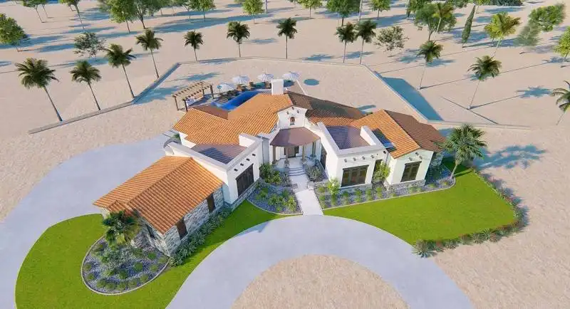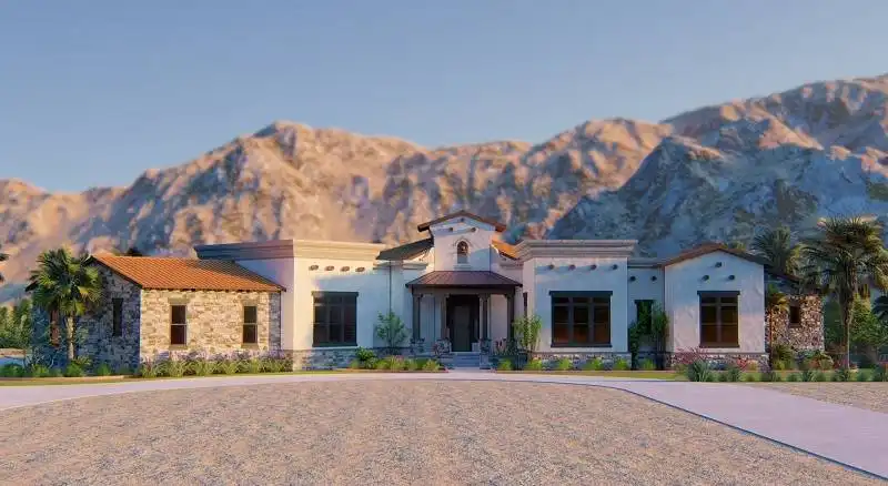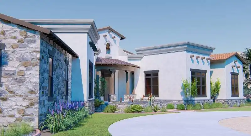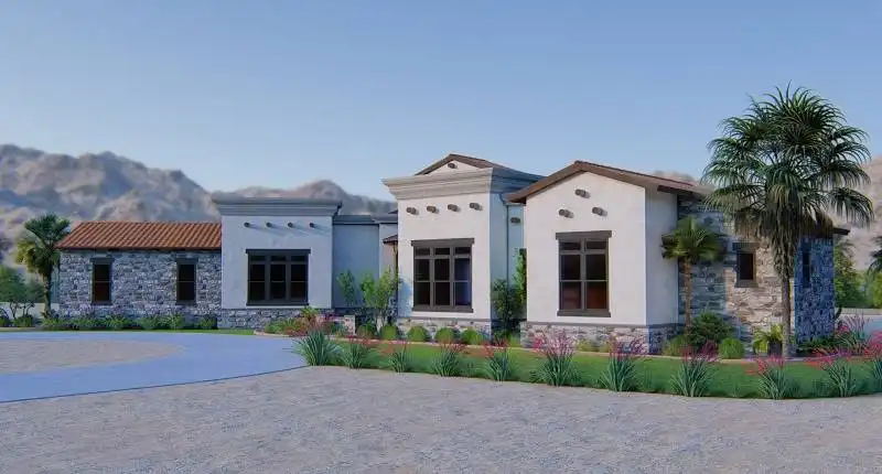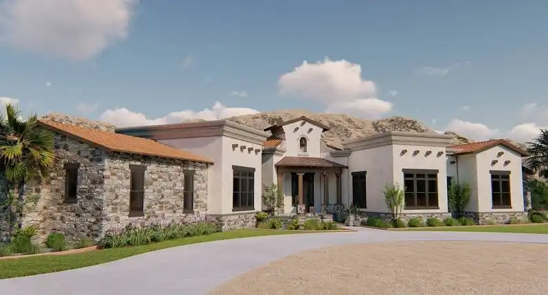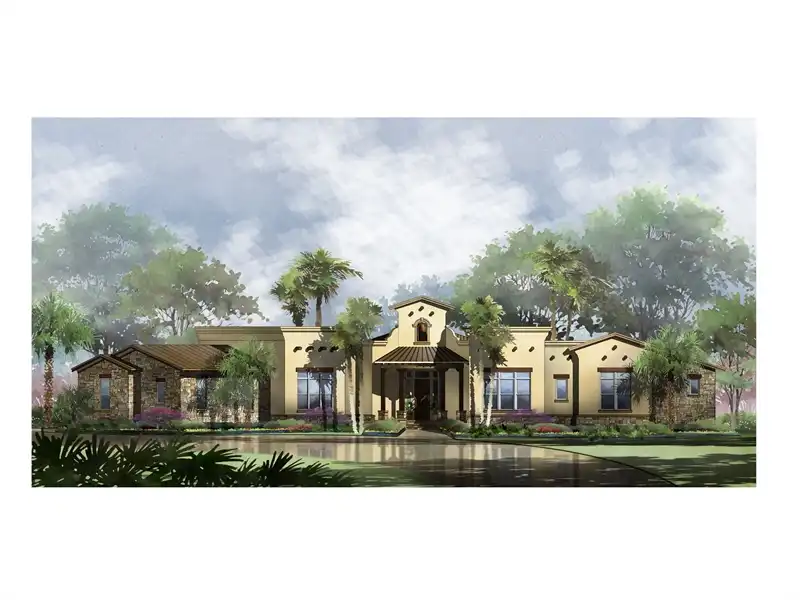 Interesting spaces abound in this Mediterranean 2,413 square foot house plan that is exclusive to The House Designers! Host any gathering in the spacious great room, warmed by a corner fireplace. A rear porch adds further entertaining options. The island kitchen flows into the casual dining area for easy service. The adjacent flex room could be a formal dining room, art studio or large home office. The deluxe master suite showcases a sit-down shower and dual sinks. Two secondary bedrooms on the opposite side of this beautiful home share a Jack-and-Jill bath.