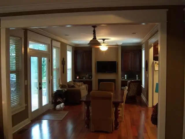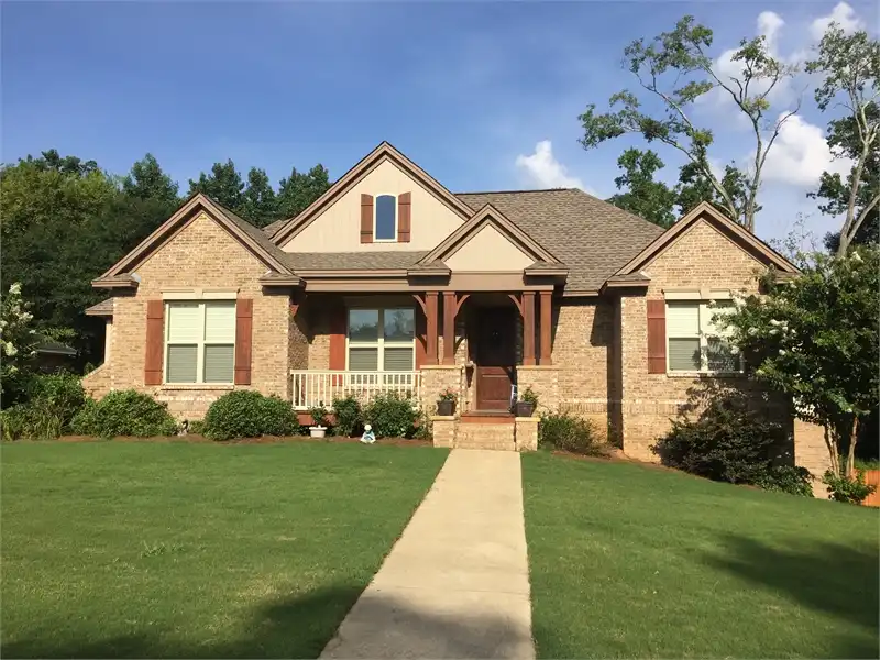 This is a French Country / Craftsman / European house plan with 2,655 square feet of living space. The master contains his and her closets and is on the main floor. The kitchen features a breakfast nook, kitchen island, & walk-in pantry. The exterior has a covered front and rear porch as well as an attached two car garage.