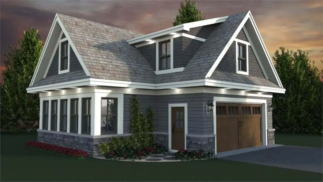 Featuring 754 heated square feet, this upper-level home is designed for efficient and comfortable living. The single bedroom offers privacy while still feeling connected to the main living area. An open floor plan helps maximize space and creates a welcoming atmosphere throughout the home. The front-entry garage below adds everyday convenience and secure storage. Simple circulation keeps the layout easy to navigate and maintain. This plan is well suited for those who value practicality and low-maintenance living. Its smart design delivers comfort in a compact and purposeful way.