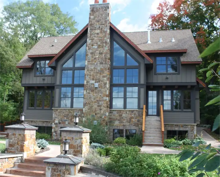 Authentic shed dormers give a bungalow feel to this traditional two-story design. The gourmet kitchen, open dining area and dramatic great room make one large entertaining space. Show your guests even more hospitality with refreshing beverages from the central wet bar. The nearby media room can be anything you wish. Upstairs, the owner's suite is secluded for privacy. Two more bedrooms have a shared bath. Guests or renters will be amazed at the lovely apartment that sits atop the three-car garage.