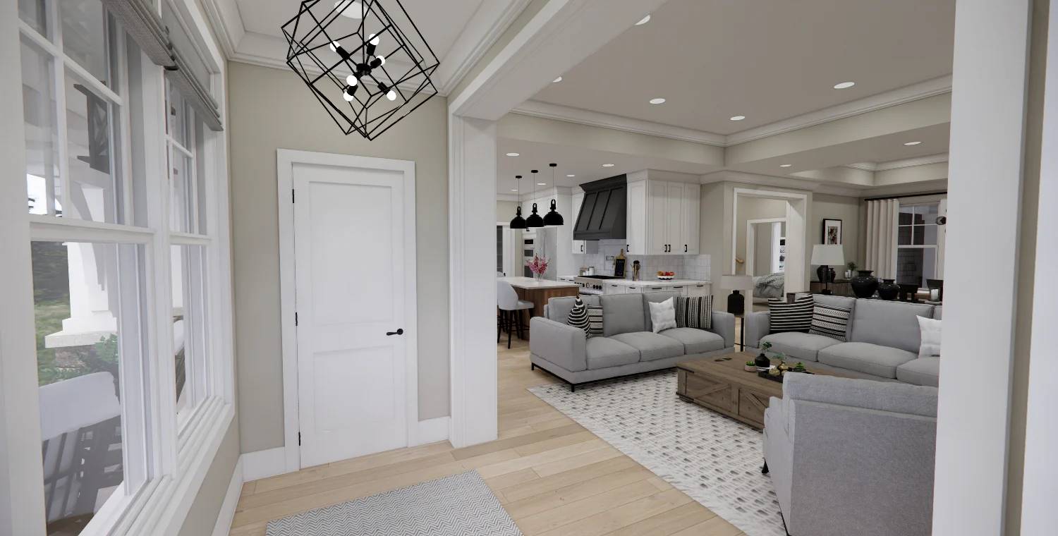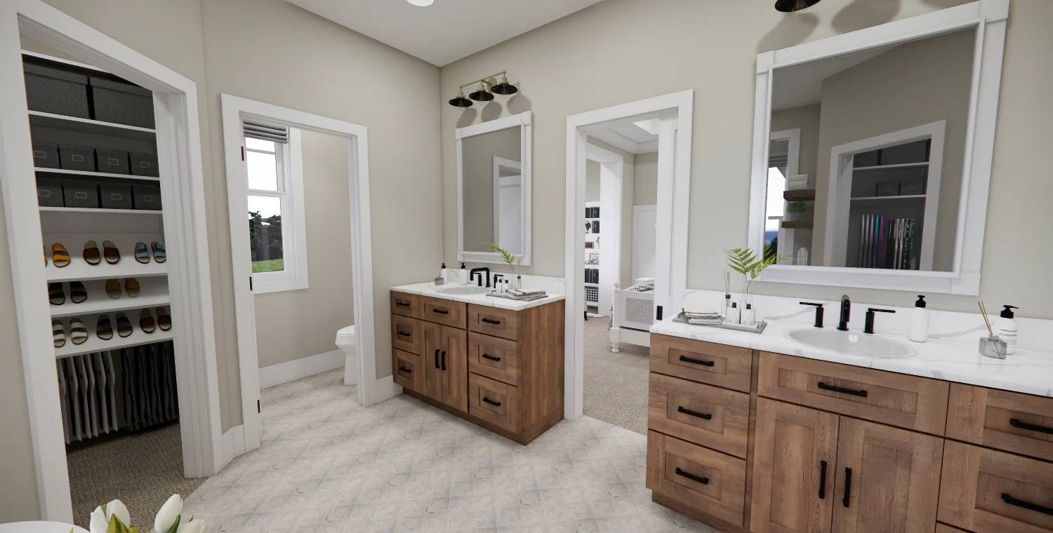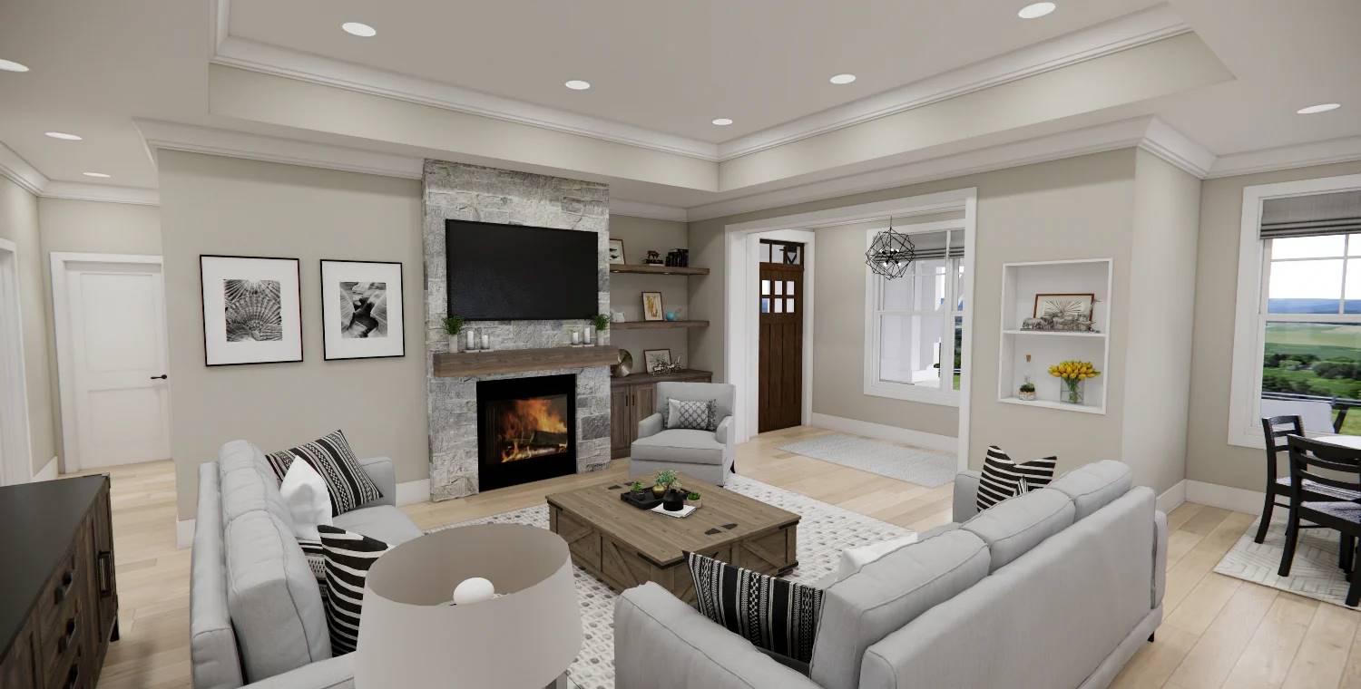 With 2,500 heated square feet, this thoughtfully designed home balances shared living areas with private retreats across 1.5 stories. The kitchen serves as the heart of the home, featuring a central island, breakfast nook, and walk-in pantry for both function and flow. Adjacent family and great rooms create comfortable spaces for relaxing or entertaining. The primary bedroom on the main floor includes double vanities, dual closets, and a sitting area that adds everyday comfort. Practical features such as a mud room and first-floor laundry support busy routines. A second-floor bonus room adds flexible living space that can adapt to changing needs. Covered front and rear porches provide inviting spots to enjoy outdoor living year-round.