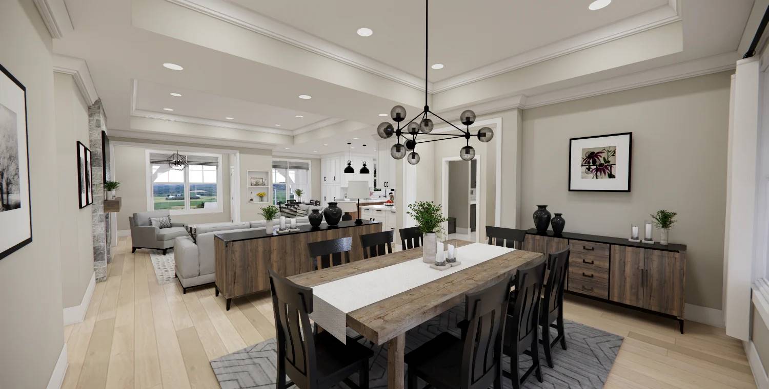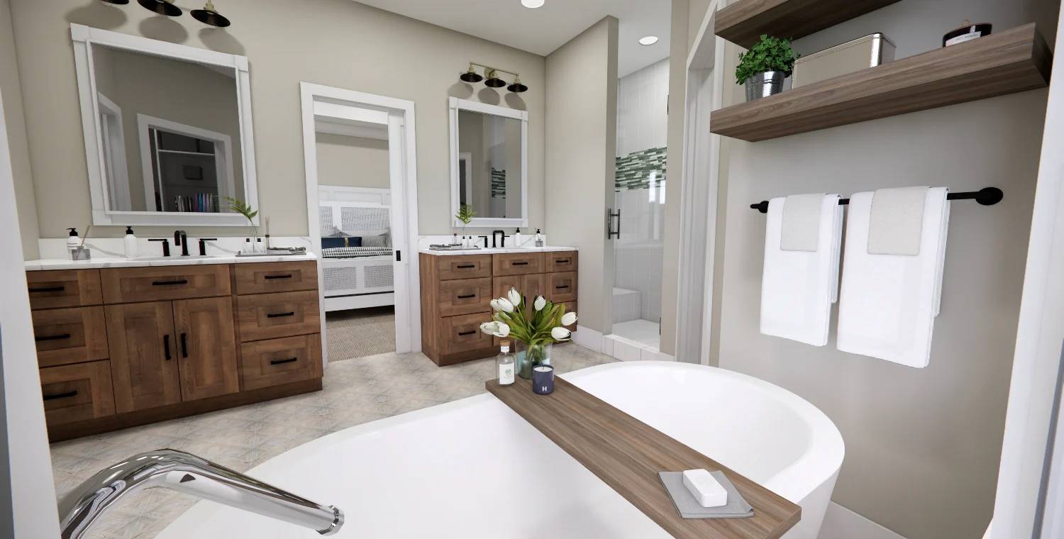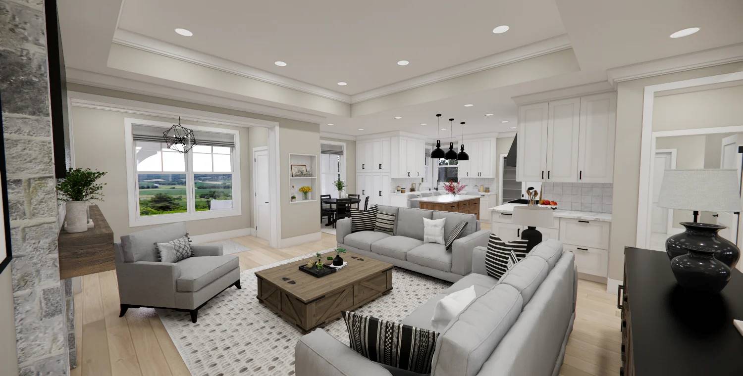 With 2,500 heated square feet, this thoughtfully designed home balances shared living areas with private retreats across 1.5 stories. The kitchen serves as the heart of the home, featuring a central island, breakfast nook, and walk-in pantry for both function and flow. Adjacent family and great rooms create comfortable spaces for relaxing or entertaining. The primary bedroom on the main floor includes double vanities, dual closets, and a sitting area that adds everyday comfort. Practical features such as a mud room and first-floor laundry support busy routines. A second-floor bonus room adds flexible living space that can adapt to changing needs. Covered front and rear porches provide inviting spots to enjoy outdoor living year-round.