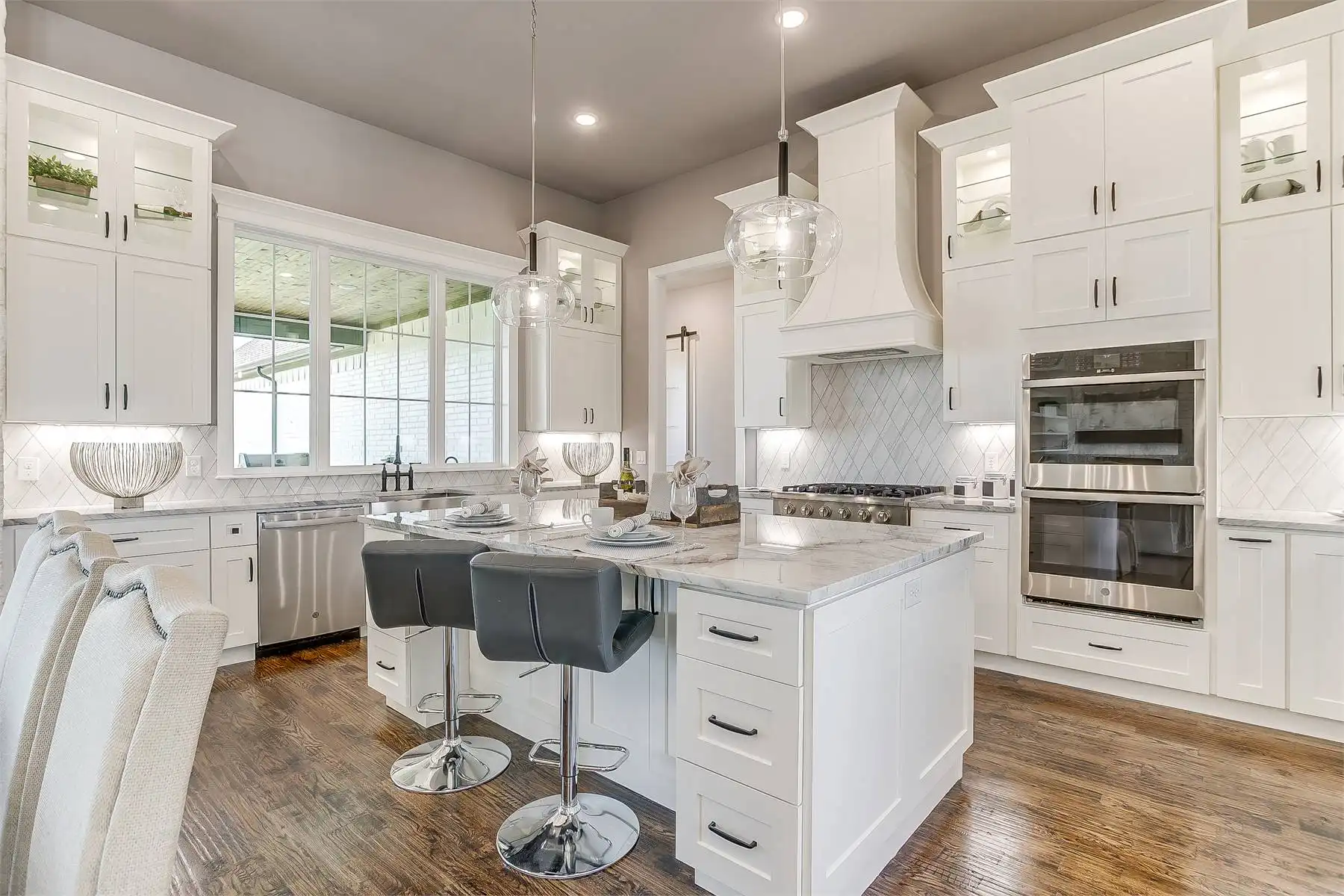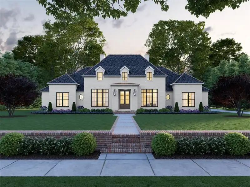 Gorgeous charm regales this stunning European-style ranch. Refined style and attention to even the most minute of details is found throughout this home, from the moment you first look at it. Beyond the gorgeous facade, an interior of 3,170 square feet provides an accessible layout, including 4 beds and 3 full baths. You'll love all of the great features of this plan, including stunning his and hers master closets alongside the relaxing spa en-suite! This home is also great for entertaining as the large eat-in island kitchen is joined seamlessly with the vaulted family room and nearby outdoor kitchen and dining area. Also notice the added productivity of an office as well as a 3-car garage with extra storage space!