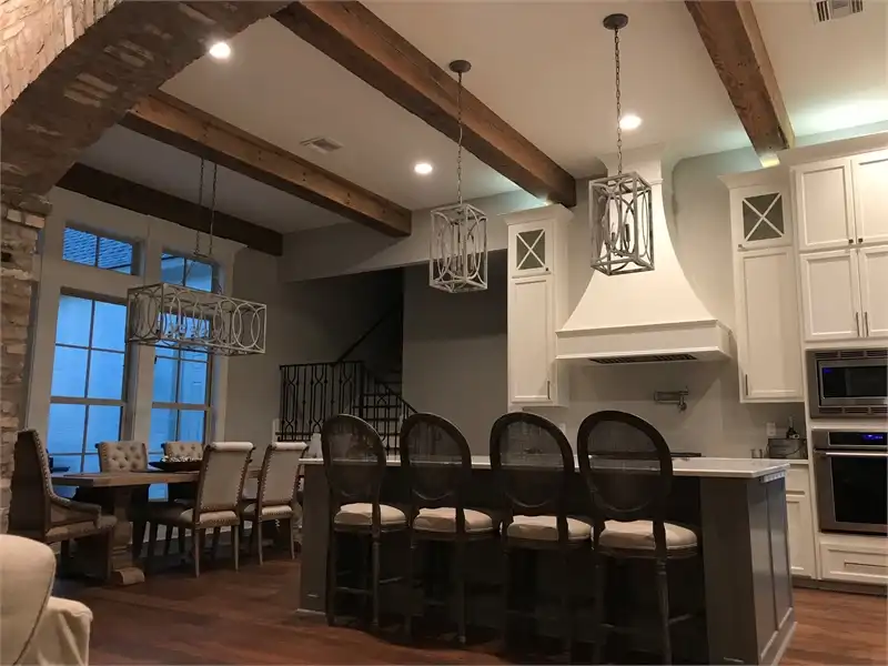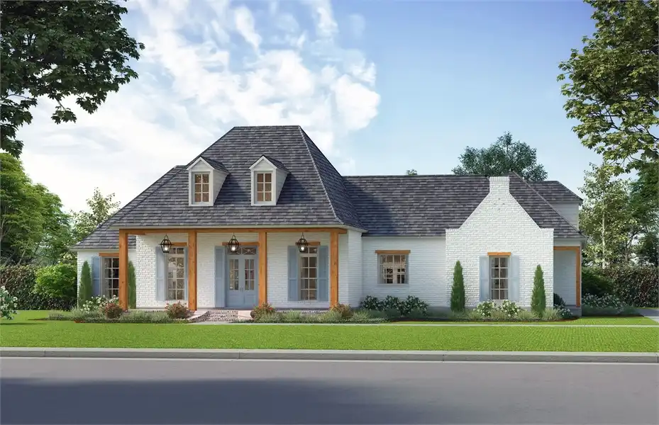 A refined amount of European character has been added to this spacious 3,073 square foot Southern ranch-style plan. Comfortable and accessible, this home is full of beautiful details and inviting spaces. This is totally noticeable in the giant family room and eat-in island kitchen, as well as the nearby dining room and covered rear porch which are both great for entertaining! The outdoor area even has a full kitchen, great for weekend barbecues and neighborhood get-togethers. 4 bedrooms and 3.1 bathrooms offer enough space for a new or growing family, including a stunning master and full en-suite. This home also offers a full 3-car garage and a bonus room located directly above, great for storage and future customization.