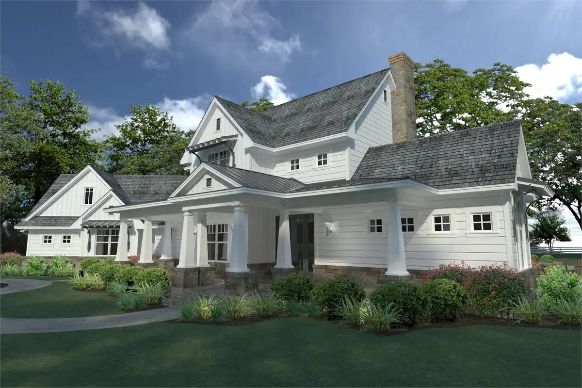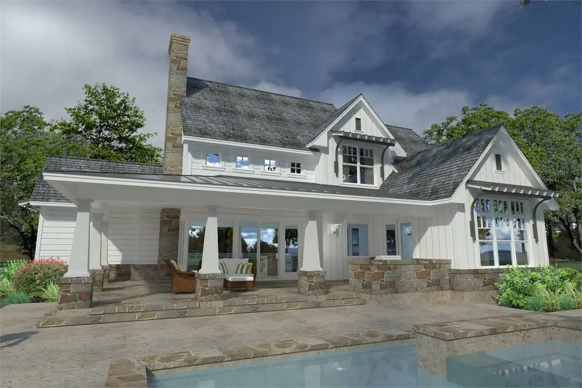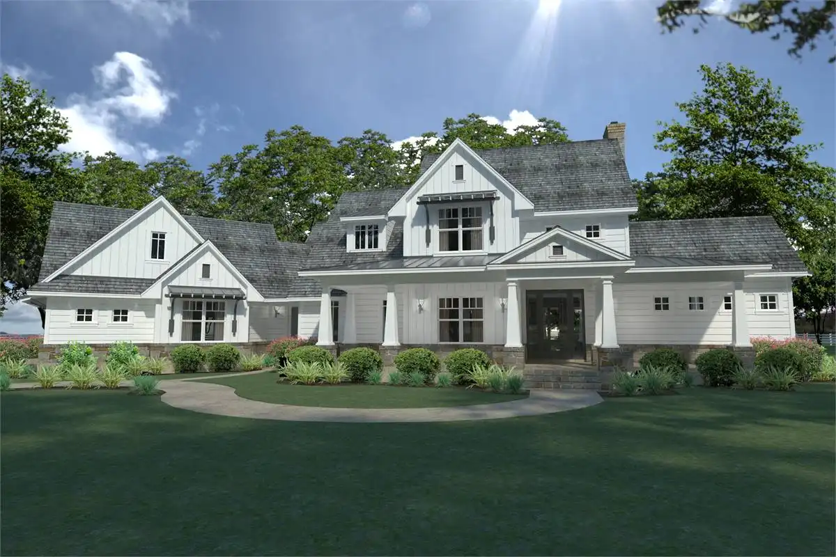 Wrap around porches with Southern charm. Summer kitchen and expansive glass for maximum view. Open plan, informal comfortable spaces. In-law suite or office/study with full bath. Over-sized laundry and pantry.