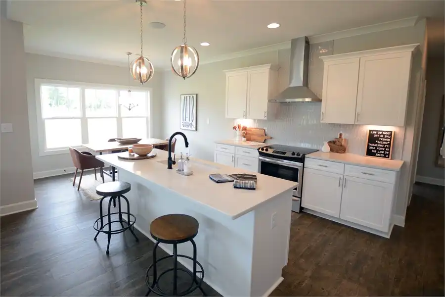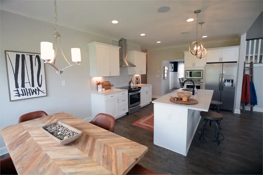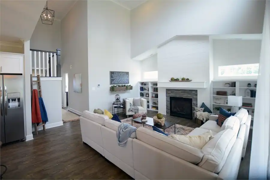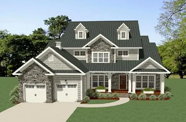 A combination of style and function make this two-story, 3,000 s.f Craftsman Farmhouse the perfect family home. The open floor plan and high ceilings create a spacious feeling without compromising comfort with a cozy fireplace. The main level offers formal dining, guest suite with full bath and a 2-story family room that leads out onto a spacious covered rear porch. The kitchen is complete with a large breakfast nook, angled island with eating bar and walk-in pantry. The 2-car garage leads into a generous laundry mudroom with a sink, cabinet space, bench seating and direct access into the master walk-in closet. The main level master boasts access to the covered porch, HIS and HERS walk-in closets, double vanities and large walk-in shower. On the second level, there are two family bedrooms, two full baths, a home office and a bonus/media area.