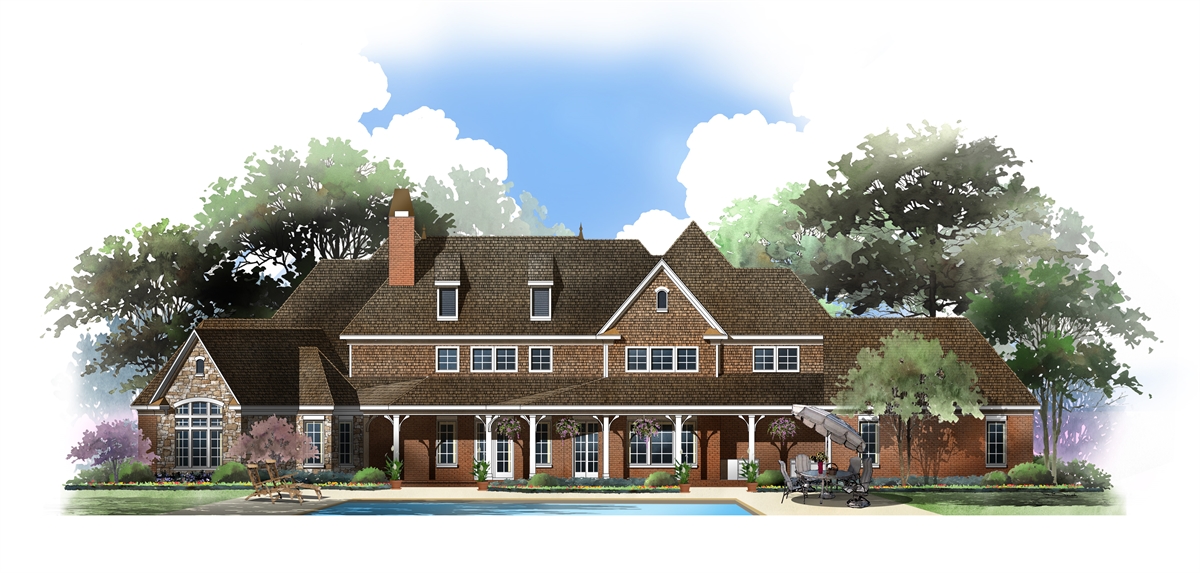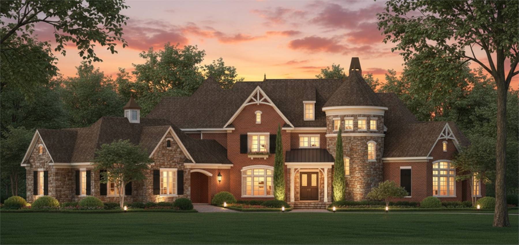 Designed for luxury and versatility, this 4833 square feet home plan features 4 bedrooms and 5.5 baths arranged across a thoughtfully planned two story layout. The open floor plan connects the great room, dining room, and kitchen beneath soaring ceilings for an impressive yet welcoming atmosphere. The well-appointed kitchen includes a central island, peninsula eating bar, breakfast nook, and walk-in pantry to support gatherings of any size. The primary suite on the main floor offers comfort and privacy with dual closets, a double vanity sink, and separate tub and shower. Upstairs, additional bedrooms, a loft, and a rec room provide flexible living and recreation space. A dedicated library or media room and workshop add further functionality. With multiple foundation options and a side-entry courtyard garage framed by a porte-cochere, this home blends architectural elegance with modern convenience.