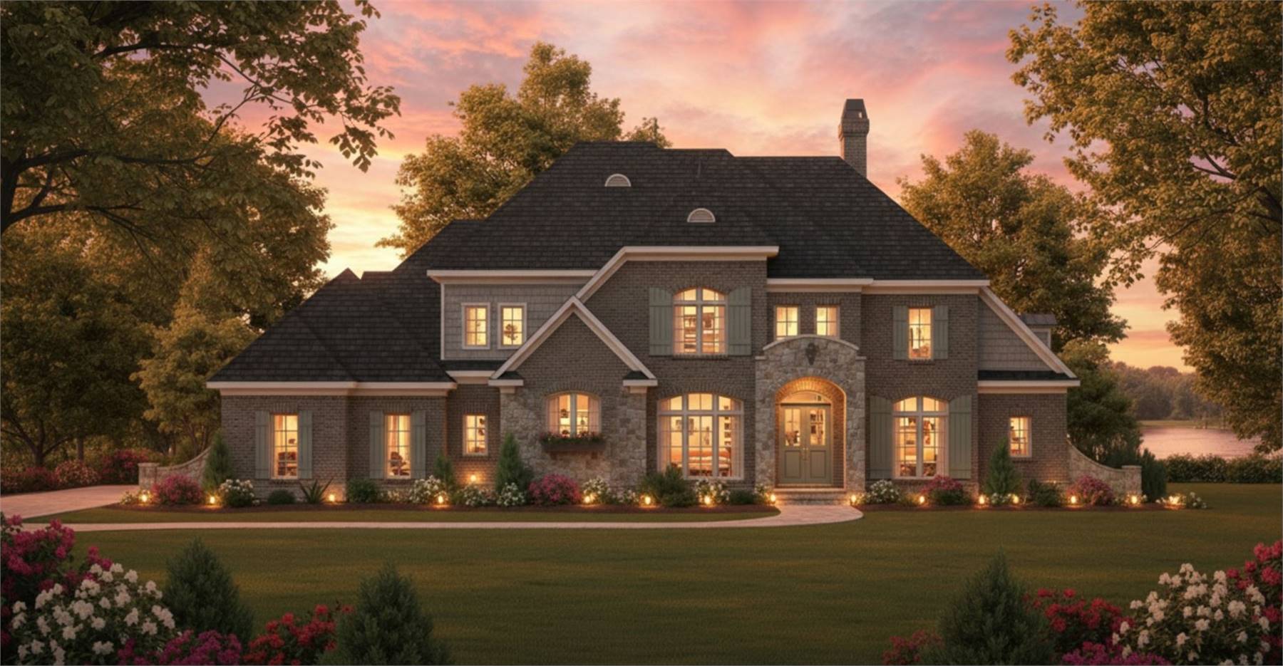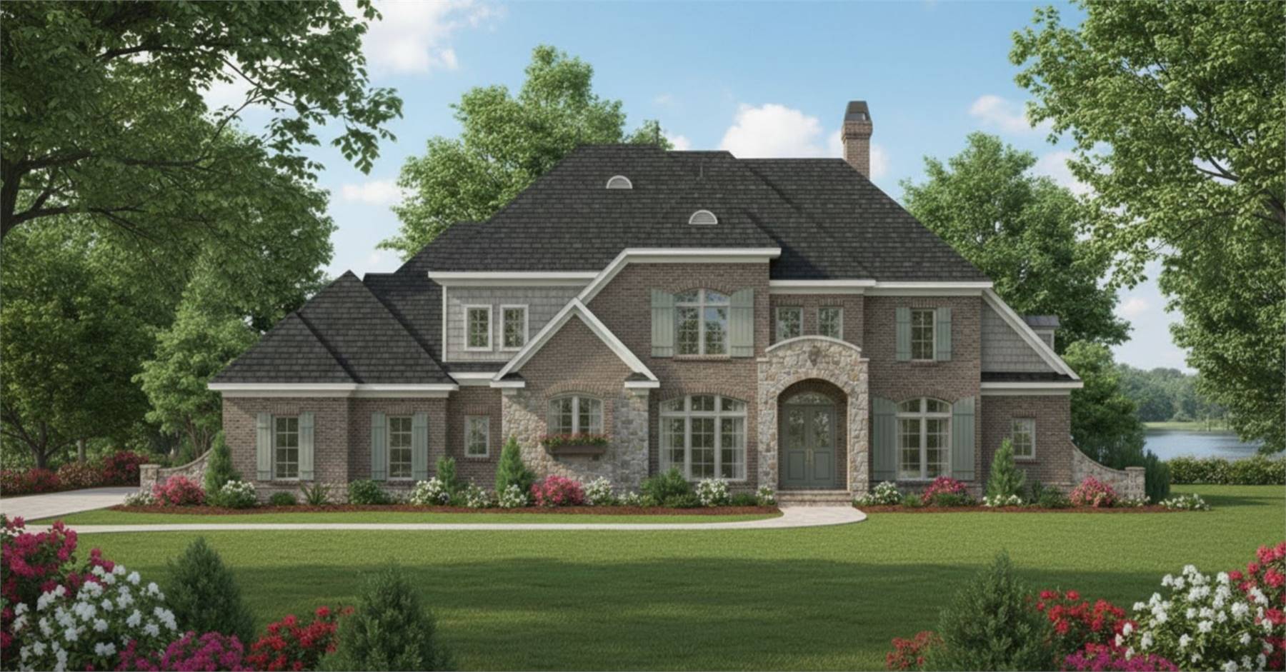 Designed for versatility and comfort, this 4534 square feet home plan includes 5 bedrooms and 4.5 baths arranged across two thoughtfully planned levels. The open layout connects the great room, dining room, and kitchen beneath soaring ceilings and elegant arch details. The kitchen’s island, peninsula eating bar, breakfast nook, and walk-in pantry support both casual meals and large gatherings. The primary bedroom on the main floor delivers privacy and comfort with dual closets, a double vanity sink, and separate tub and shower. Upstairs, additional bedrooms are complemented by a loft or balcony space, ideal for study or relaxation. A dedicated home office and library or media room provide quiet work and entertainment areas. With multiple foundation options and both corner and view lot suitability, this design balances architectural character with everyday practicality.