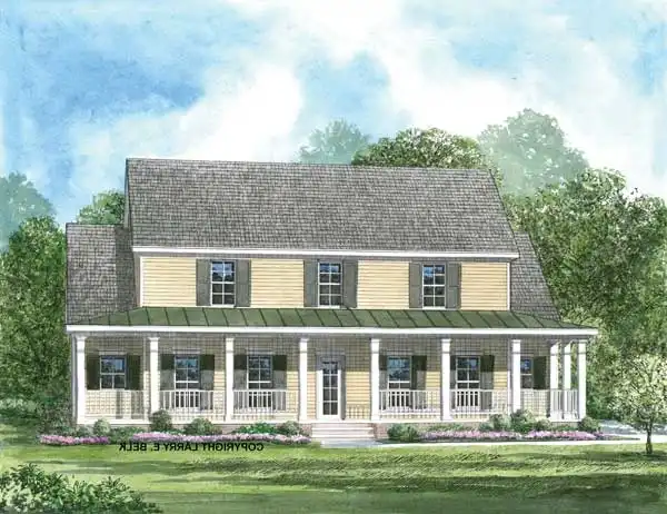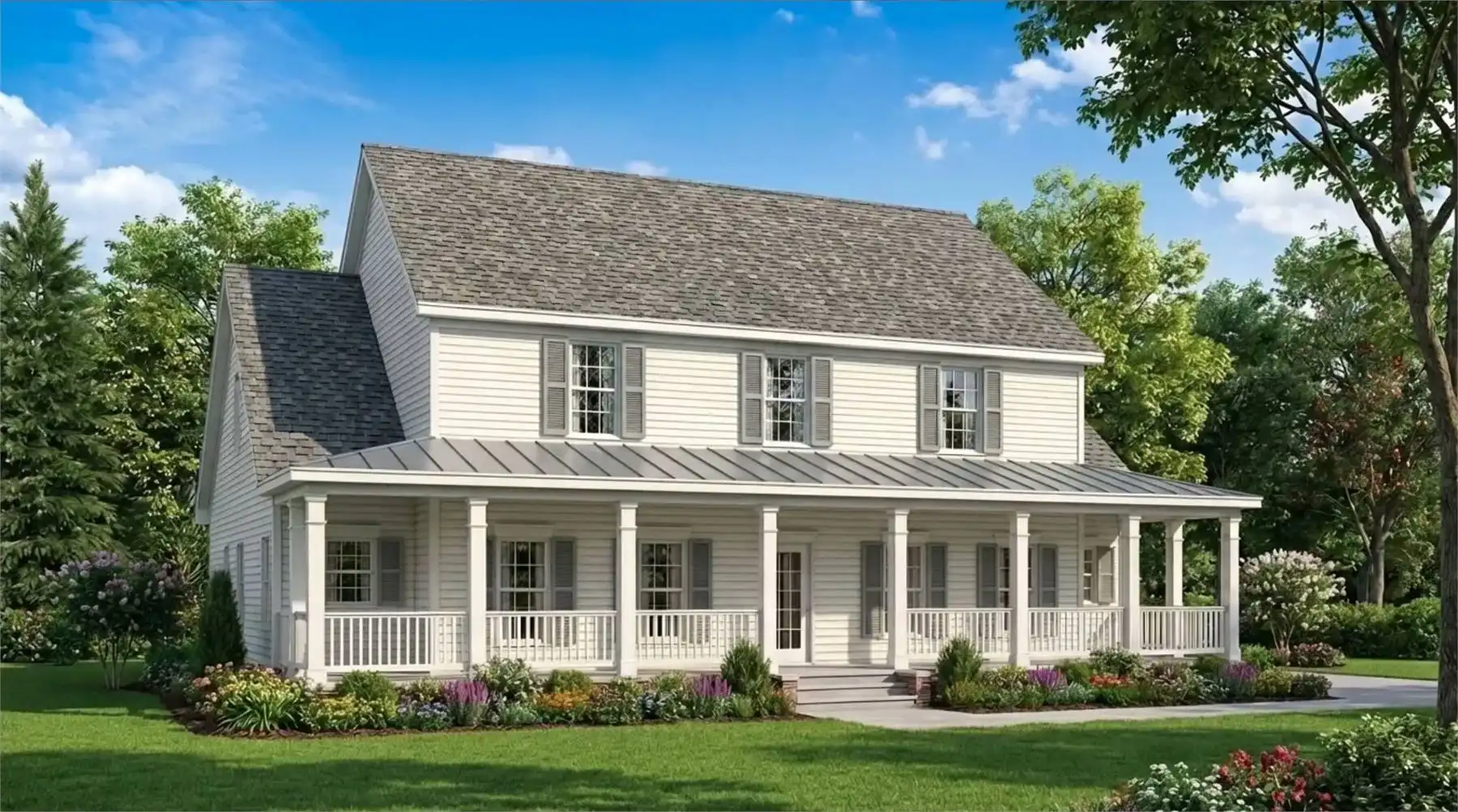 Designed for inviting indoor and outdoor living, this 2829 square feet home plan features 4 bedrooms and 3.5 baths arranged across a balanced two story layout. The open floor plan seamlessly connects the family room, dining room, and kitchen, creating an ideal setting for gatherings and daily routines. A fireplace anchors the main living area, while the kitchen’s island and breakfast nook support both efficiency and comfort. The main level primary suite offers privacy with a walk-in closet, double vanity sink, and separate tub and shower. Upstairs, secondary bedrooms and a rec room expand the home’s versatility. Outdoor living shines with a covered front porch, rear porch, outdoor living space, and a classic wraparound porch that enhances architectural appeal. Generous storage space and a rear-entry attached garage complete this well-rounded home design.