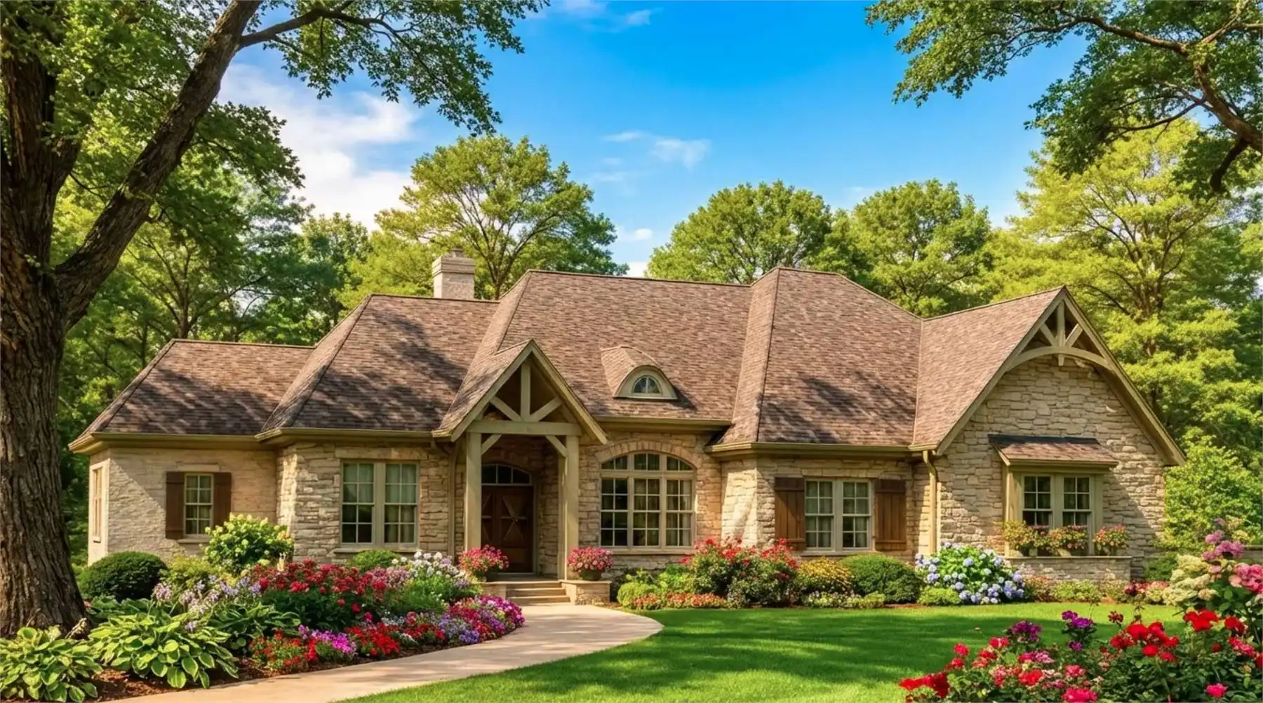 Designed for both functionality and charm, this 2960 square feet home plan features 4 bedrooms and 2.5 baths arranged within a thoughtfully planned single story layout. The open floor plan connects the great room, dining room, and kitchen into one cohesive living space centered around a fireplace. The well-appointed kitchen offers a central island, peninsula eating bar, breakfast nook, and walk-in pantry for efficient organization. The main level primary suite provides privacy and comfort with dual closets, a double vanity sink, separate tub and shower, and a relaxing sitting area. Split bedrooms create a balanced layout ideal for growing families. A home office near the foyer offers flexible workspace, while first-floor laundry enhances daily routines. With a side-entry attached 2 car garage and welcoming front porch, this home blends everyday practicality with timeless appeal.