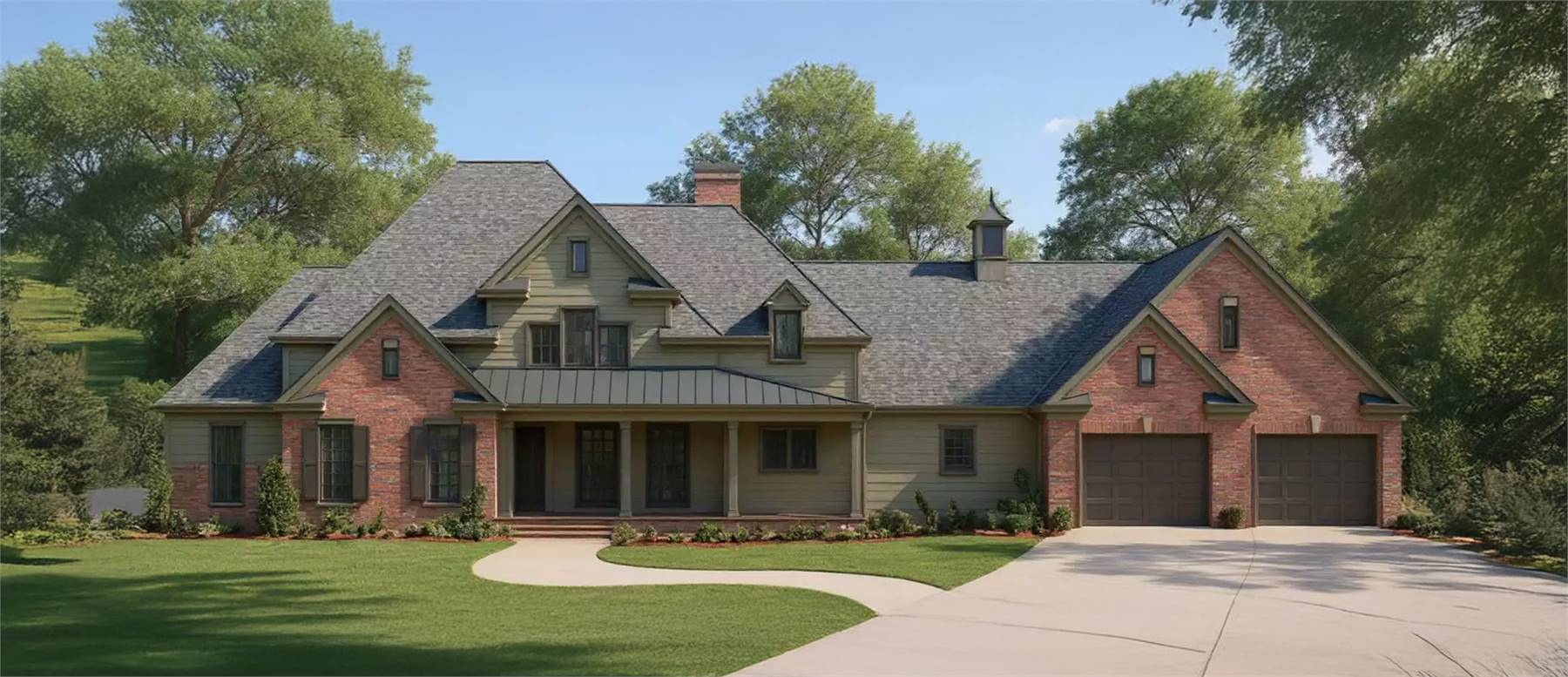 House Plan 2121 blends refined Southern Transitional architecture with a practical and welcoming floor plan. The central great room features a fireplace and connects to a spacious dining area and island kitchen, all opening to the covered rear porch for easy indoor-outdoor living. Everyday convenience is supported by a walk-in pantry, powder room, and a large utility/mud space adjoining the side-entry 2-car garage. A quiet home office is located just off the kitchen hall. The primary suite sits on the main floor and includes dual closets and a luxurious bath with a separate tub and shower; a second first-floor bedroom offers flexibility for guests or family. Upstairs, Bedroom 3 includes a walk-in closet and its own bathroom, while a future bedroom space allows customizable expansion. With expansive porch space, this home encourages a relaxed, livable Southern lifestyle.