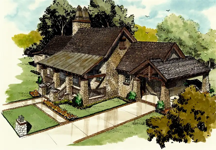An inviting front porch adorns this affordable country house plan, with three bedrooms, 2.5 baths and 1,776 square feet of living space. Relax with friends in front of the fireplace in the spacious great room of this home plan. The eat-in kitchen includes a handy pantry. The quiet master bedroom boasts a fireplace and direct access to a small porch. The personal bath showcases a large sink and a refreshing shower. A walk-in closet keeps you organized. Our customers love the carport, plus the cozy office off the master bedroom of this home design.