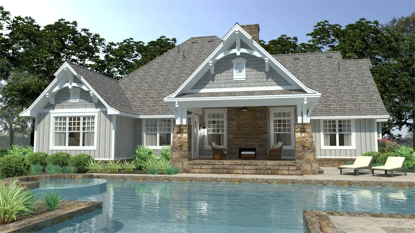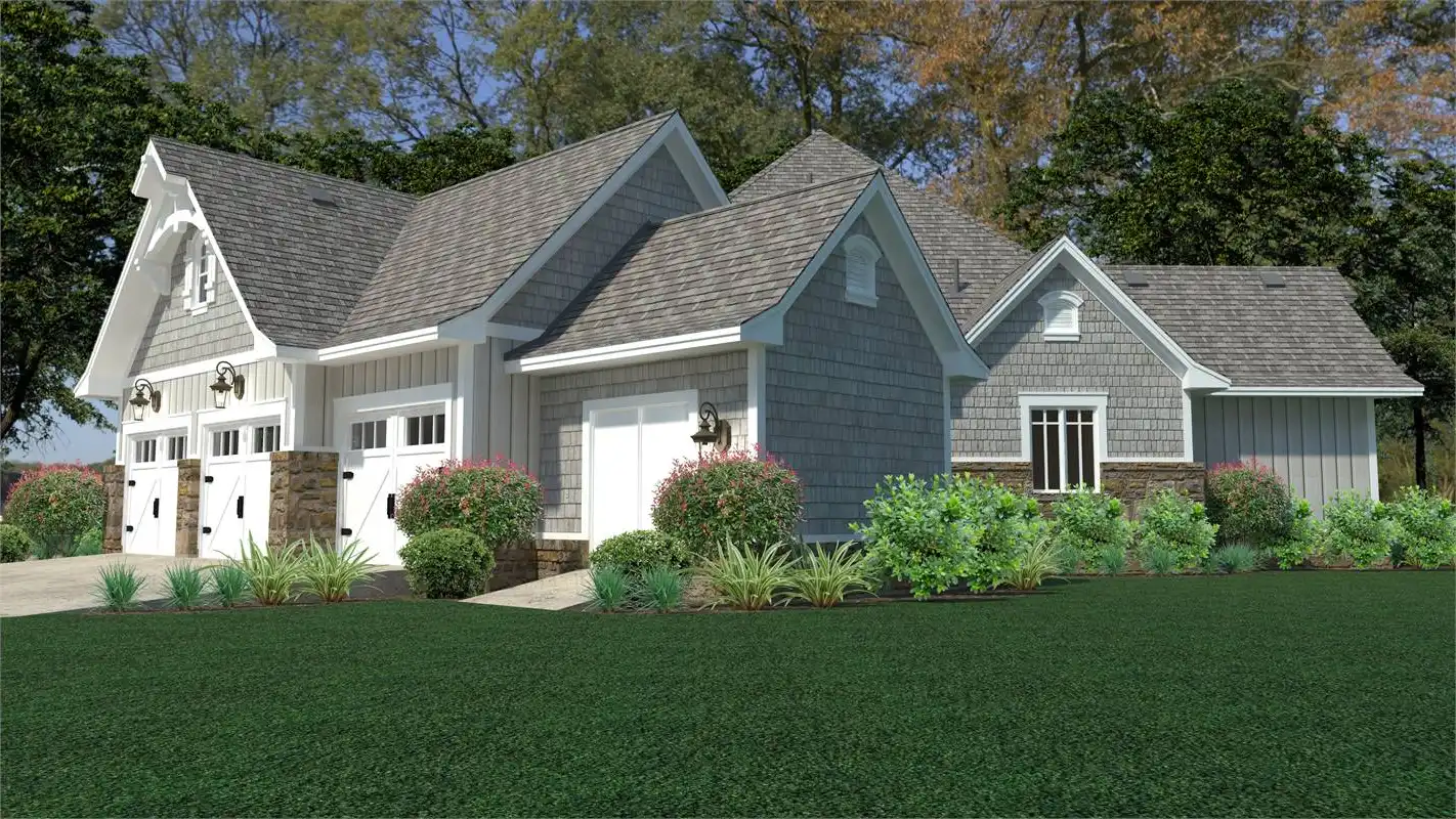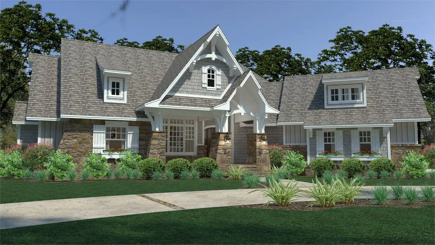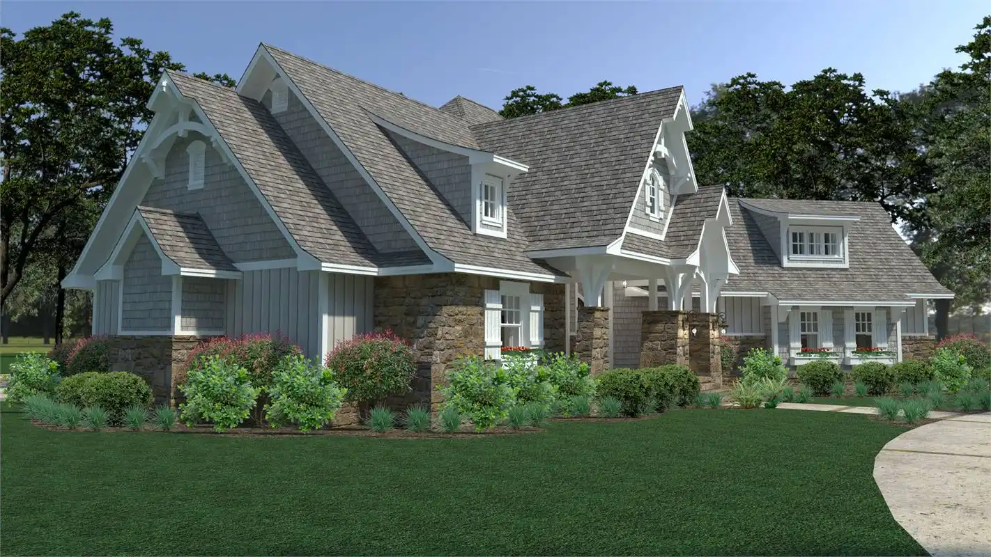 If you're looking for the perfect Craftsman home with huge curb appeal, you've found the perfect plan! This 2,662 square foot home offers 3 bedrooms, 2.5 baths and an optional upstairs bonus room that can be finished when you construct your home or later to meet your needs and budget. The magnificent vaulted, covered front porch leads to the foyer that opens into a spacious, open-concept family room, kitchen and dining area. A rear lanai offers a great space for outdoor entertaining, and shares a double sided fireplace with the family room. A kitchen designed for a gourmet chef has a center island for extra seating and countertop space and ample cabinetry for storage. The spacious master suite with tray ceiling and ensuite luxurious bath will be the perfect oasis to retreat to at the end of the day. The split bedroom design locates secondary bedrooms on the right side of the house for added privacy. The secondary bedrooms feature walk-in closets and share a Jack and Jill bath. An added bonus is the additional storage area next to the 3-car garage perfect for storing gardening and seasonal items. This beautiful home comes in slab, crawl space and basement foundations.