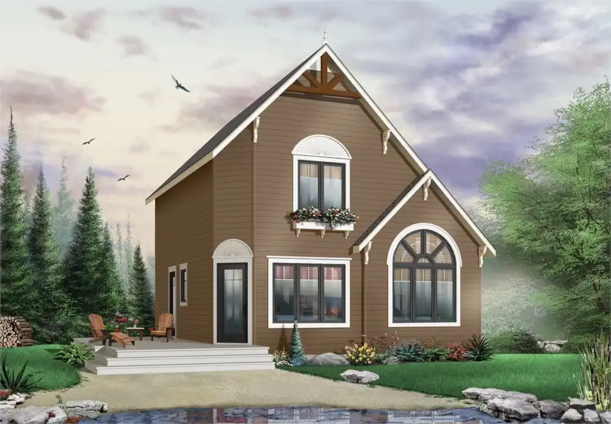 This cottage style plan is the key to simple yet elegant living. Standing 2-stories high, this 1,295 square foot home has been designed to incorporate a reduced footprint, making it extremely versatile and able to be built on virtually any lot size. Not only does this home offer 2 bedrooms and 2 full bathrooms, it has also been modeled to incorporate an open and functional layout. An inviting front façade brings you on to the front patio and inside. The entryway spills in to an open kitchen, dining room, and 2-story vaulted living room, all bathed in natural light thanks to the large windows that adorn the walls of this home. A first floor bedroom and accessible full bath is a great option for a guest bedroom or office, while the second floor bedroom and bathroom is private enough to function as the master suite. A private sitting area on the second floor creates yet another inviting space within this home, while the overlook down on to the family room below gives the area an inclusive feeling all around.