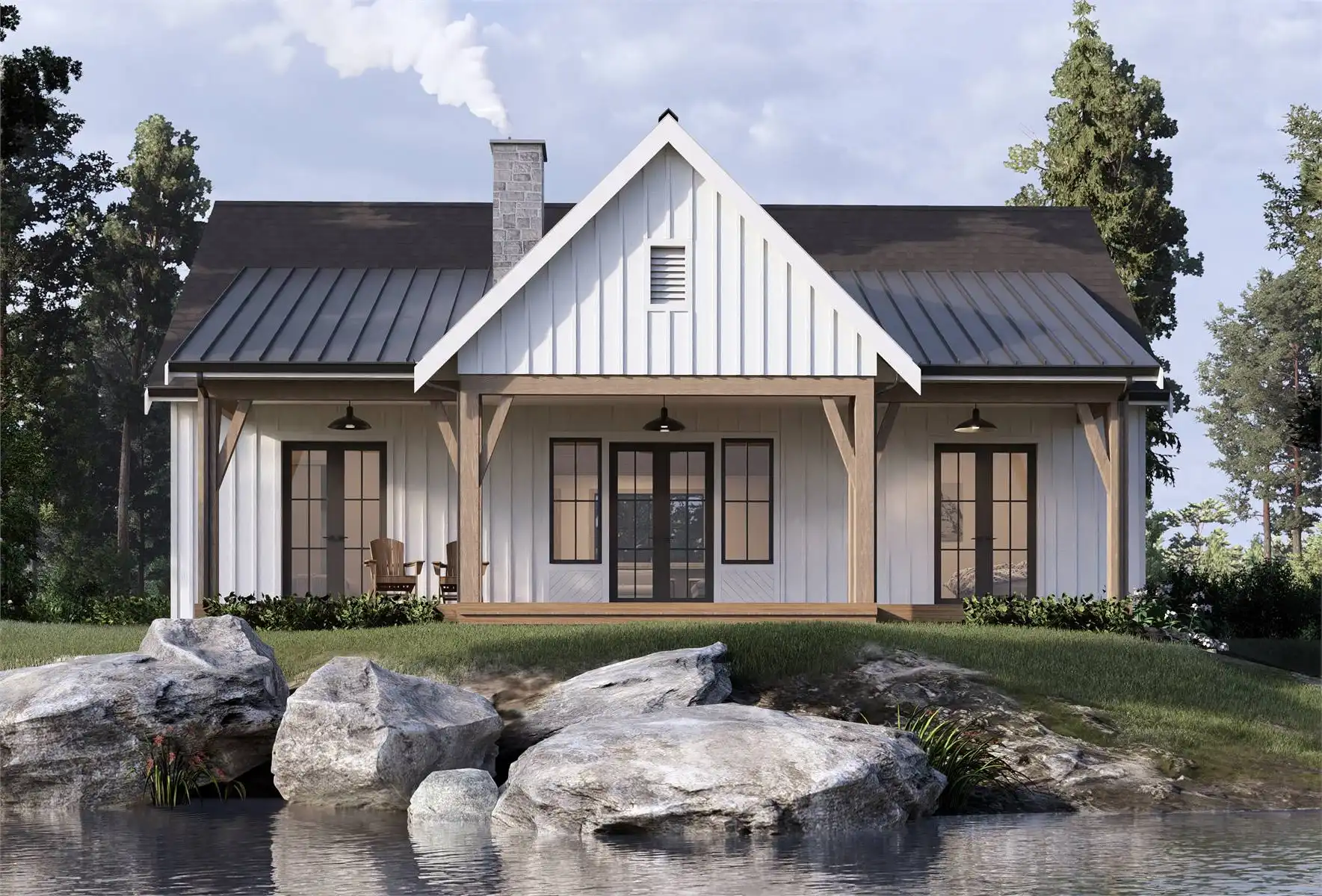 Step into a realm of tranquility and elegance with this stunning cottage plan. Designed to seamlessly blend modern comfort with timeless charm, this architectural gem offers a spacious layout perfect for indoor-outdoor living. Surrounded by nature's beauty, the meticulously crafted details and versatile design create a haven for relaxation and cherished memories.