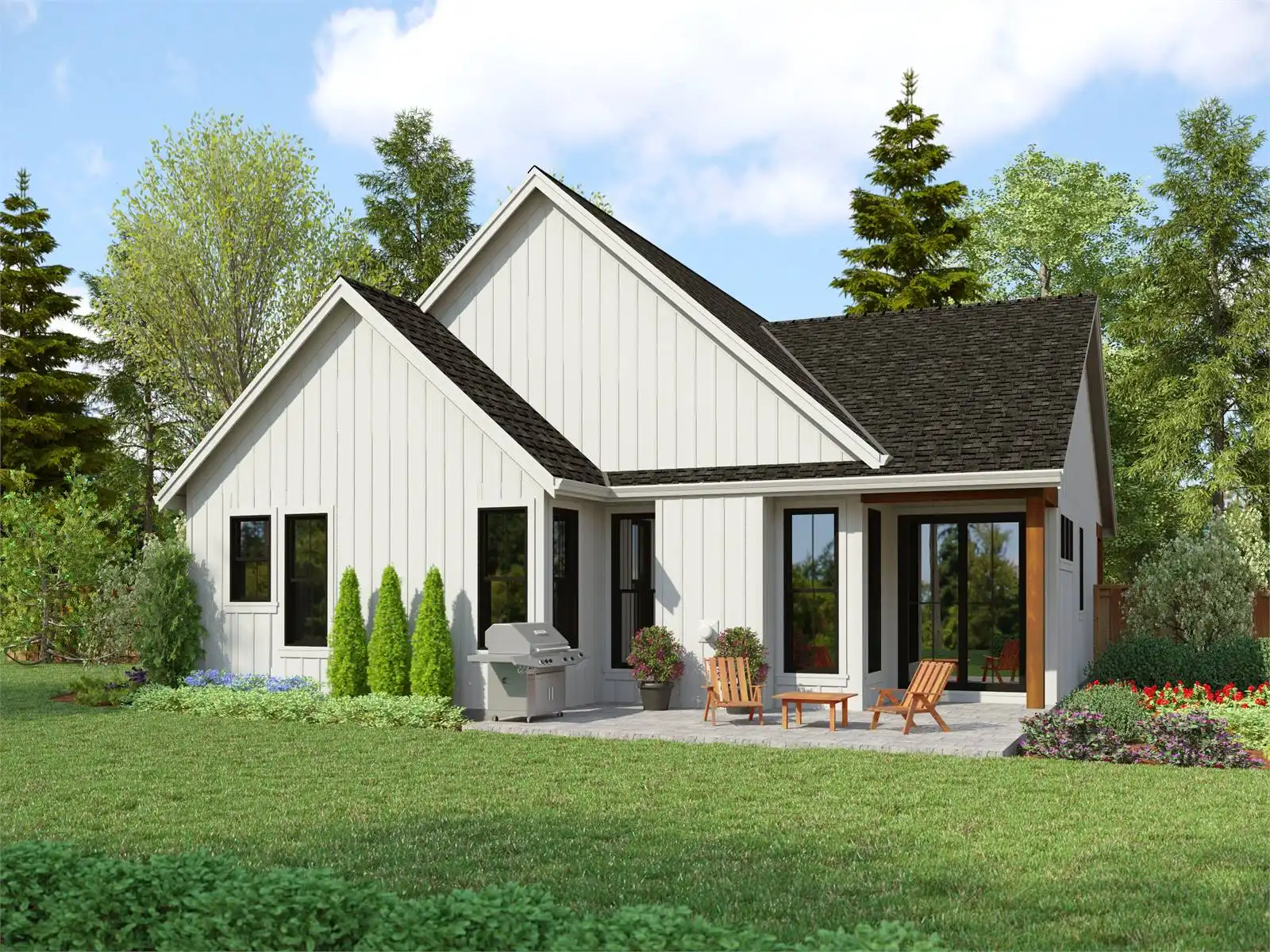 Includes 5 physical printed blueprint sets, shipped free via UPS within the U.S. Printed sets ship within 1 business day and are delivered within 3 – 5 business days. A complimentary PDF plan set is also emailed within 1 business day for easy sharing and local printing. These plans may be used to construct one home.