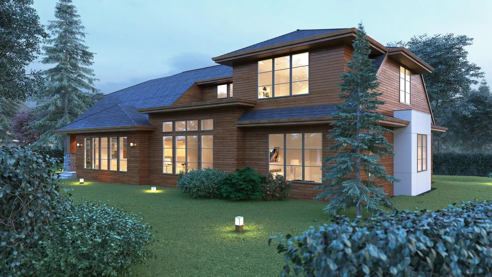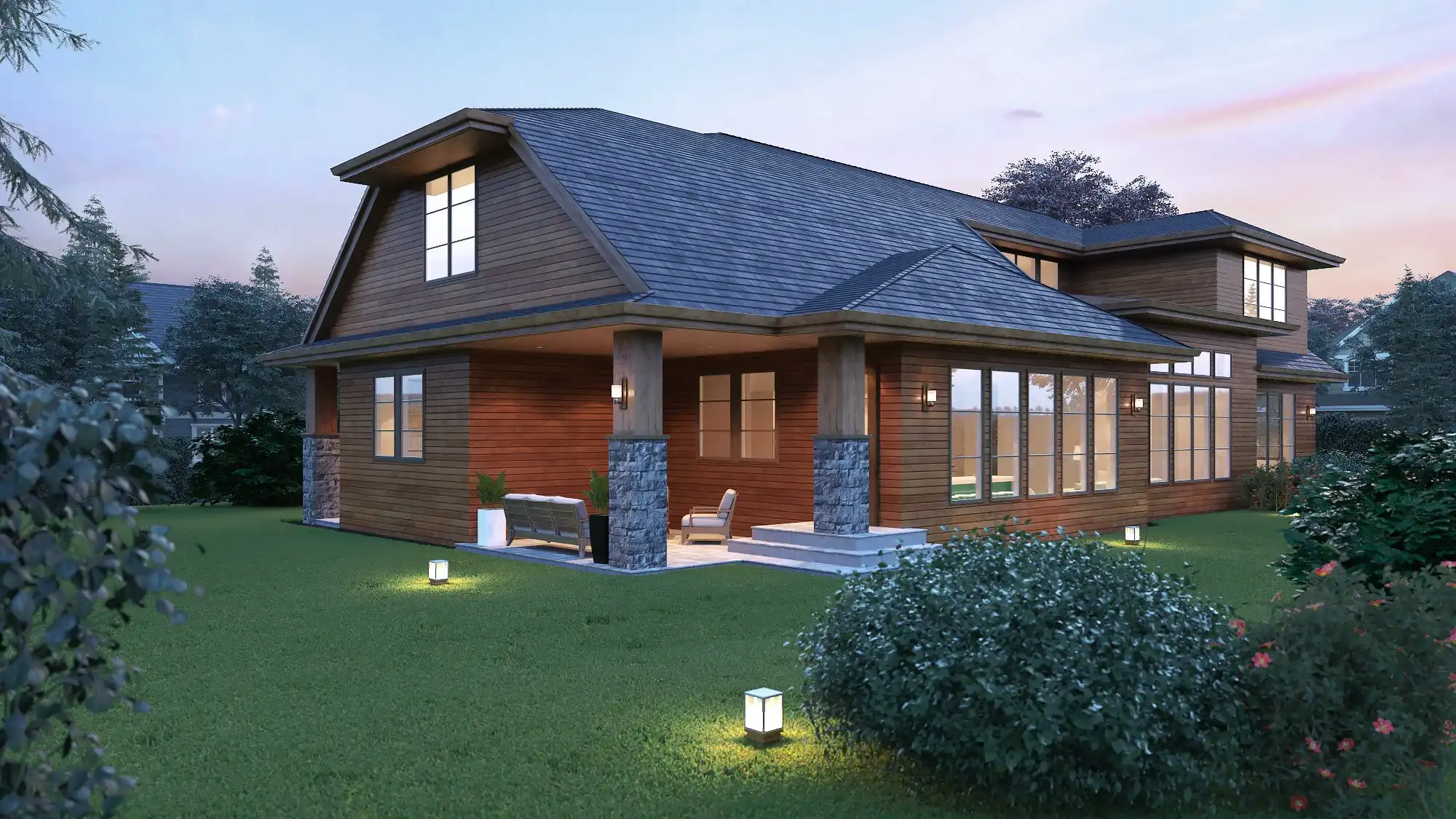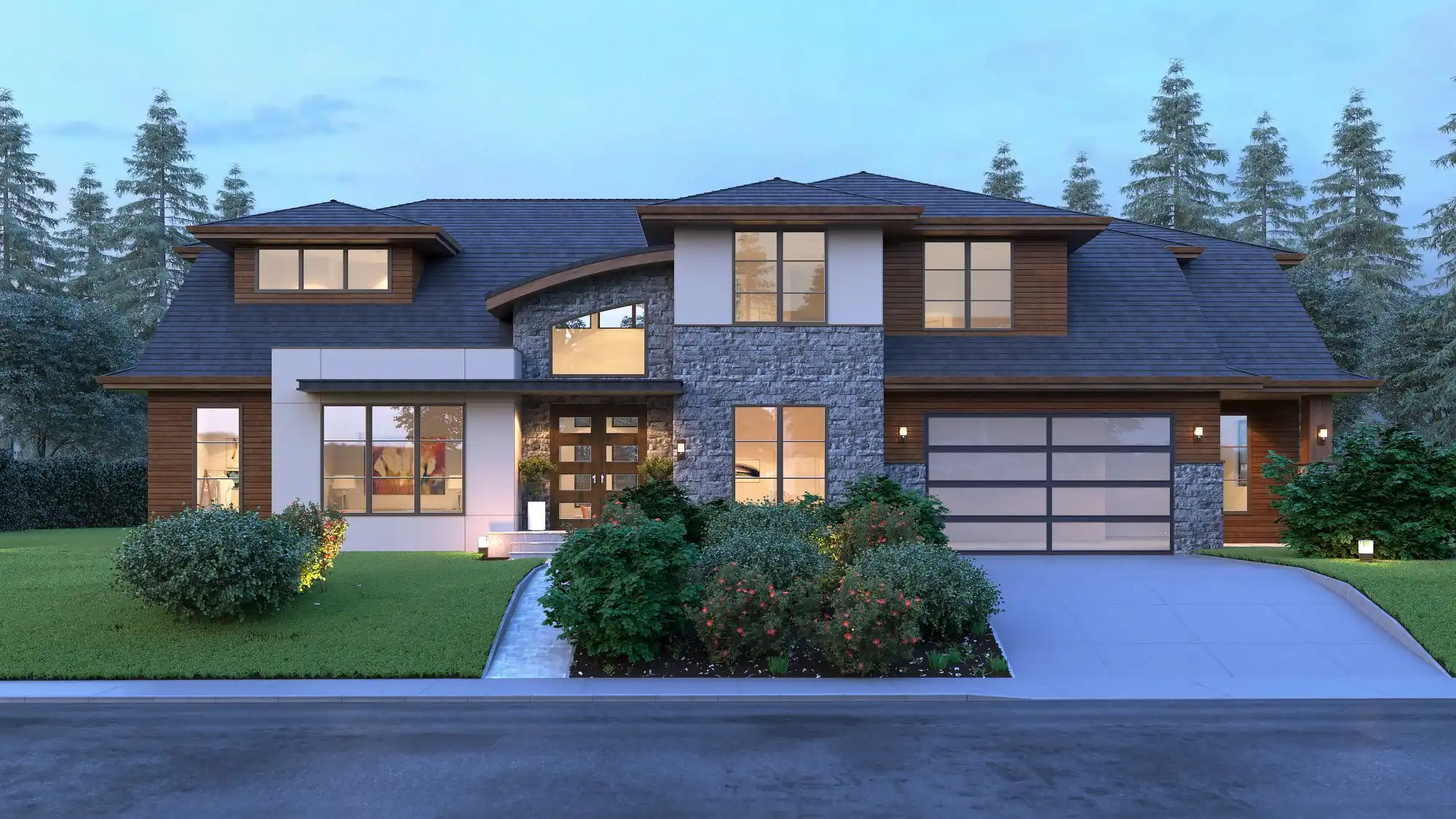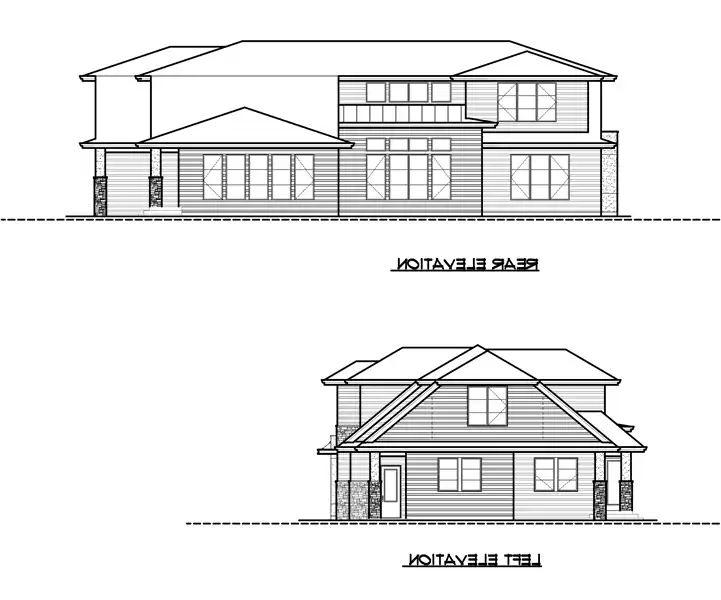 Roof peaks, a stone foundation line, and mullioned windows with arched tops give this hillside home plan a traditional flavor. That styling is carried indoors with a formal foyer, two fireplaces, handsome built-ins, and a formal dining room and living room. Geared for an active family, this 3,809 square foot multi-level home is as practical as it is elegant, including its 4 beds and 3.1 baths. A full-service laundry room houses a sink, cabinets, counters, and a built-in ironing board. The open family area fosters togetherness and is perfect for entertaining.