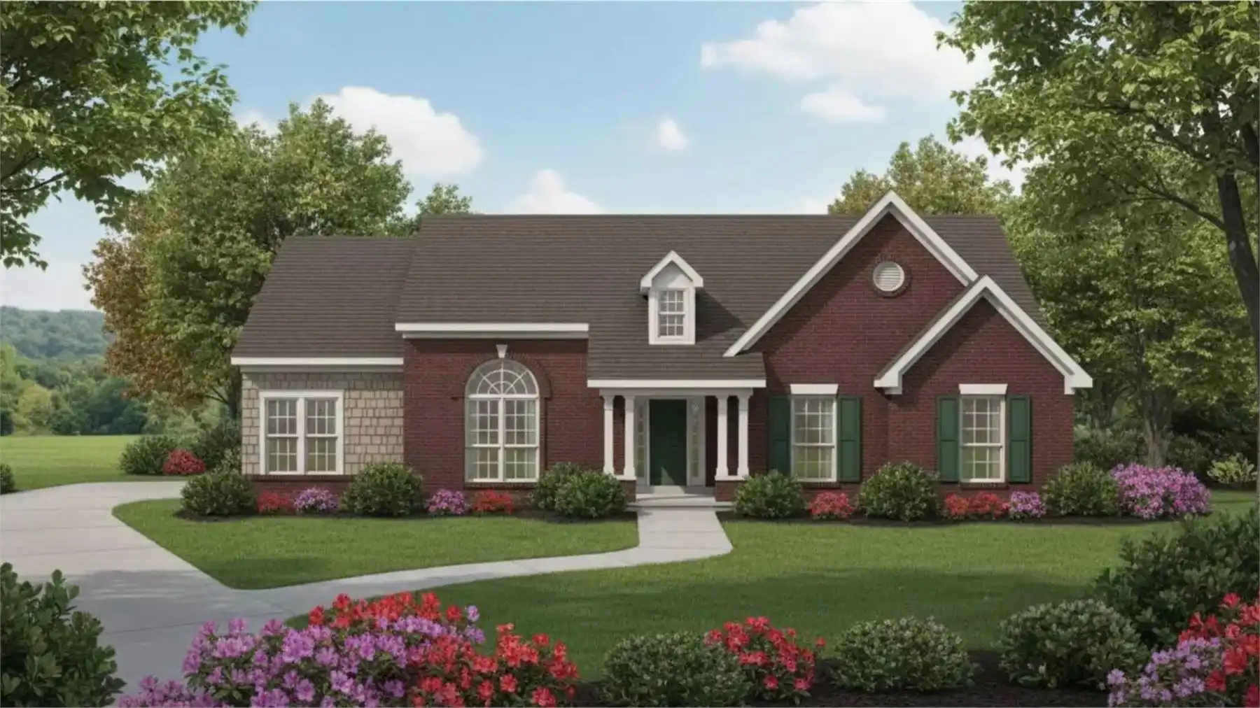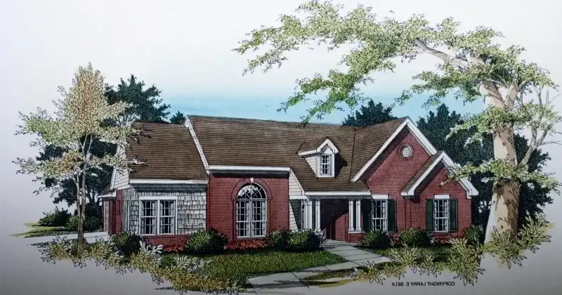 Designed for both style and function, this 2237 square feet single story home plan includes 4 bedrooms and 2 baths within a bright, open layout. The foyer opens into a spacious great room anchored by a fireplace and accented with architectural arches for added charm. An island kitchen with peninsula seating and breakfast nook connects seamlessly to the dining room, creating an inviting space for entertaining. The main level primary suite offers privacy and comfort with a walk-in closet and a bath featuring dual vanities and a separate tub and shower. Secondary bedrooms are thoughtfully arranged to accommodate family or guests. A home office, mud room, and first-floor laundry provide practical flexibility for daily living. Outdoor living is enhanced by a welcoming covered front porch, while the attached rear-entry garage offers generous storage and convenience.