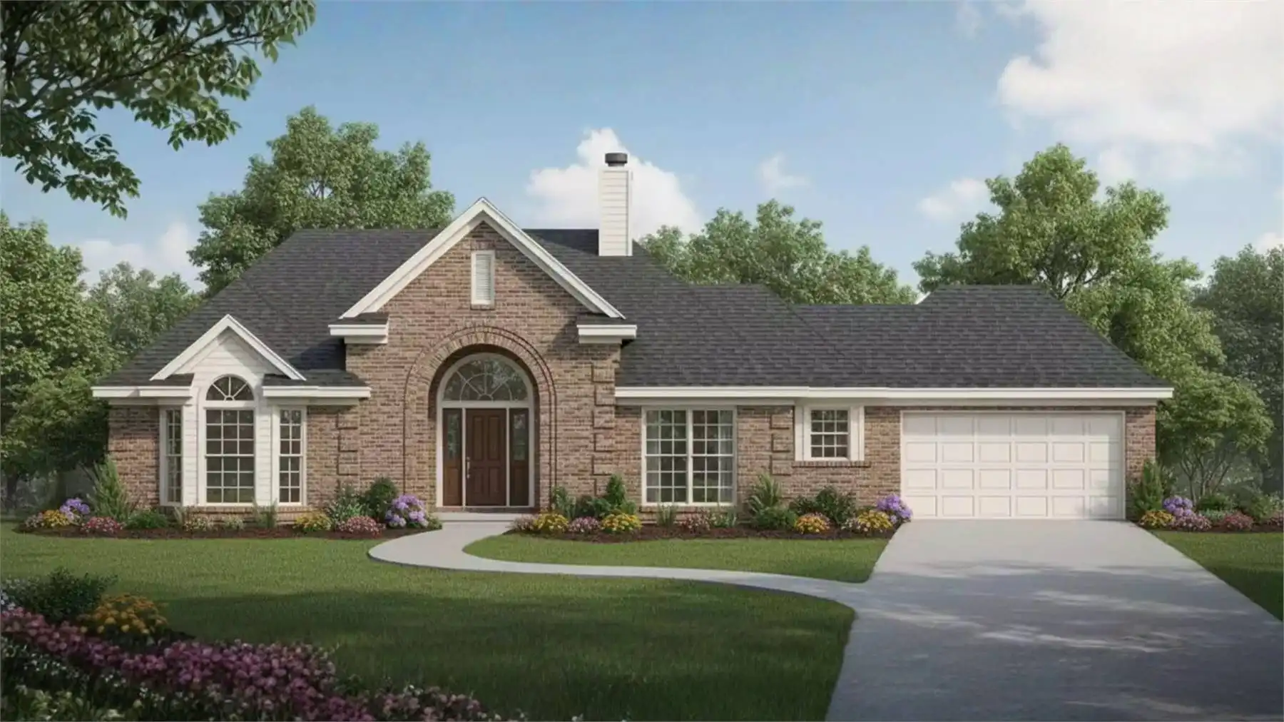 Designed with everyday functionality in mind, this 1985 square feet single story home plan includes 3 bedrooms and 2 baths arranged within a bright, open layout. The foyer opens to a spacious great room highlighted by a fireplace and 10 foot ceiling that enhances the sense of space. The kitchen’s island and breakfast nook connect seamlessly to the dining room, creating a natural flow for entertaining and daily life. The main level primary suite offers privacy and comfort with dual closets, including his and hers primary closets, along with a sitting area for quiet moments. The primary bath features double vanities and a separate tub and shower for added luxury. Secondary bedrooms are thoughtfully positioned to accommodate family or guests. A convenient first-floor laundry room supports daily routines. Covered front and rear porches provide inviting outdoor spaces, while the attached front-entry garage with side placement adds practical access and storage.