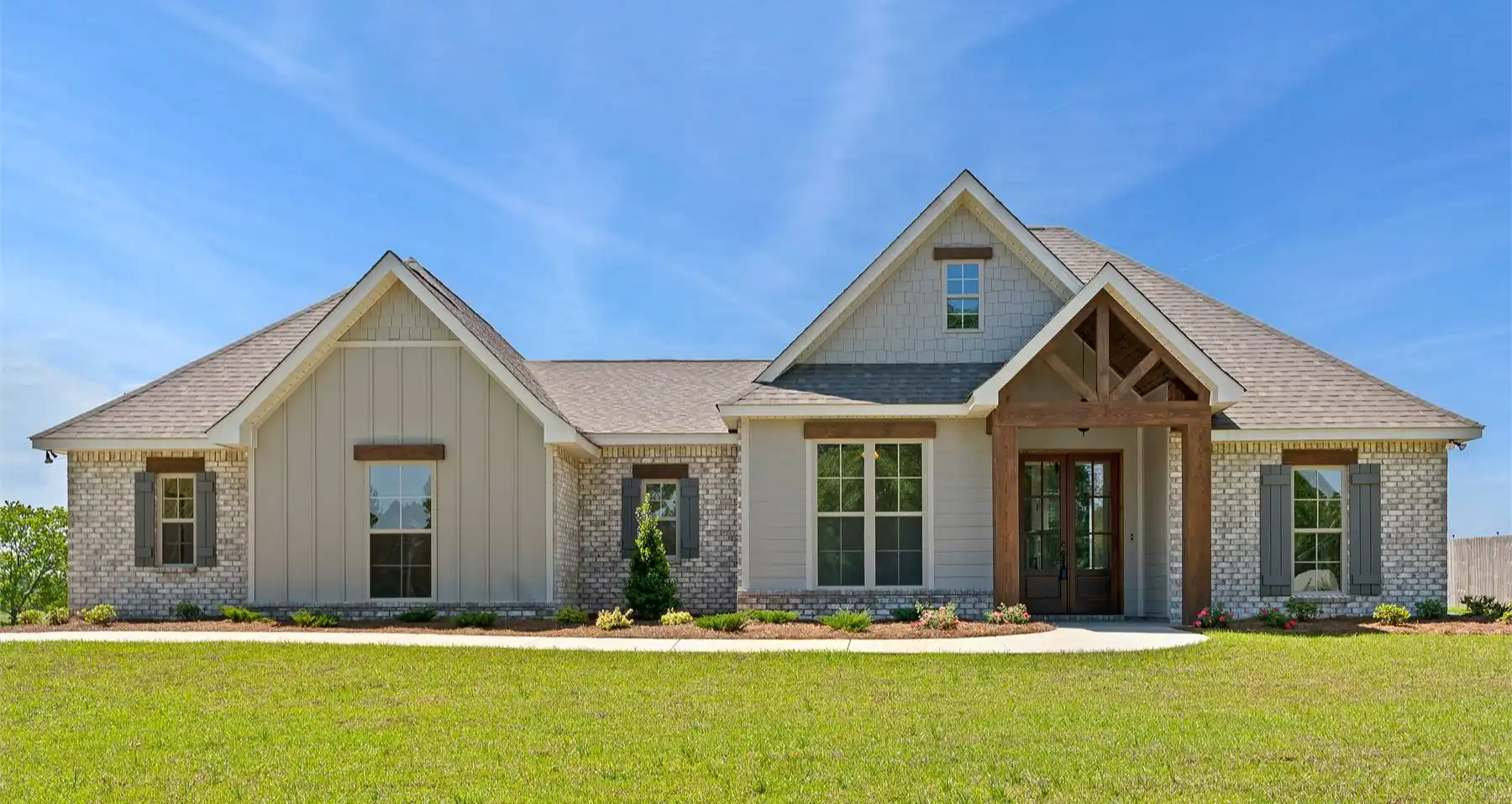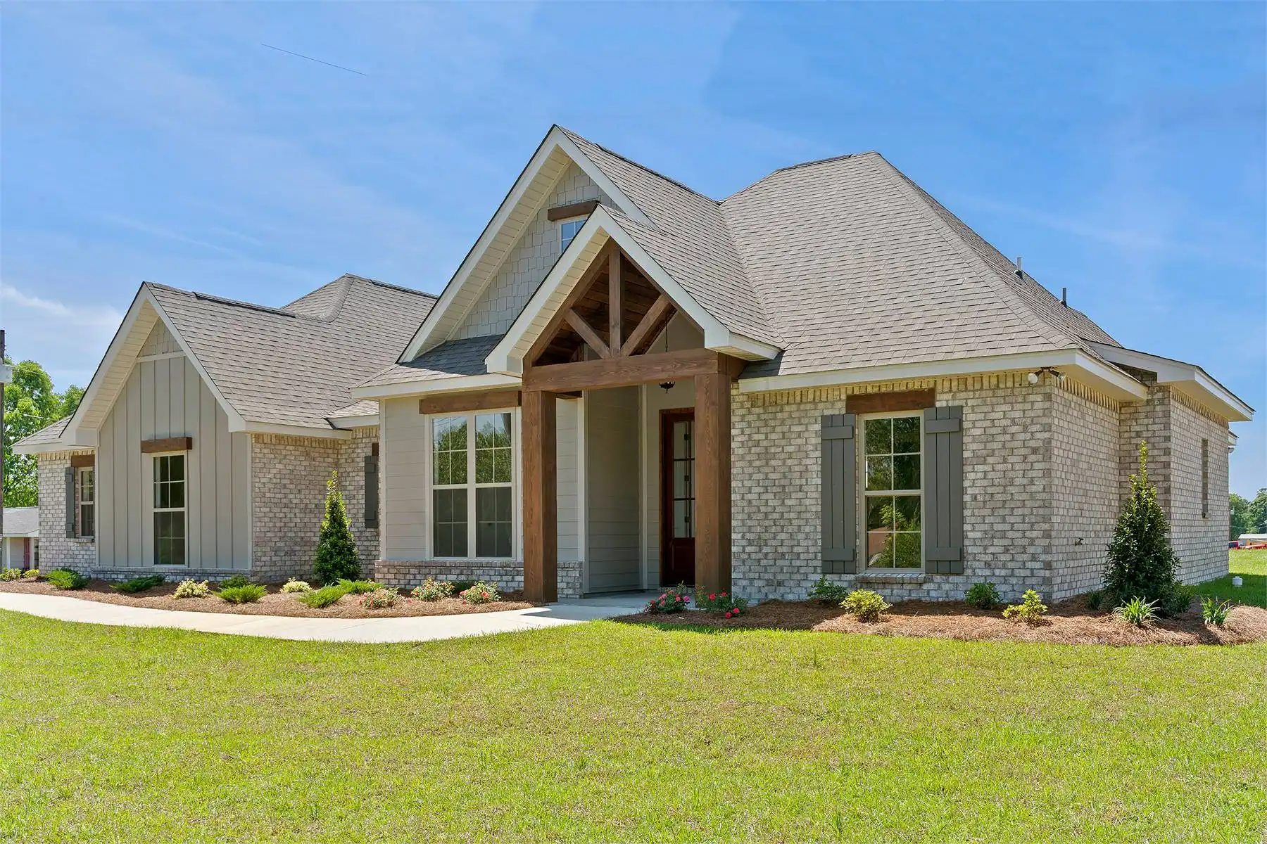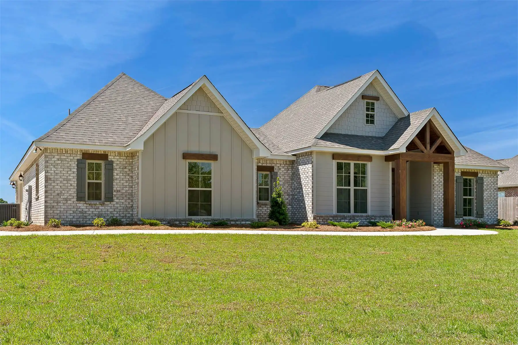 A stylish modern farmhouse with great curb appeal and a rear porch perfect for entertaining. Inside, the open floor plan includes four bedrooms, a large kitchen with a walk-in pantry, and an amazing primary suite with split vanities and a spacious walk-in closet. Extra storage and a convenient half bath complete this functional home.