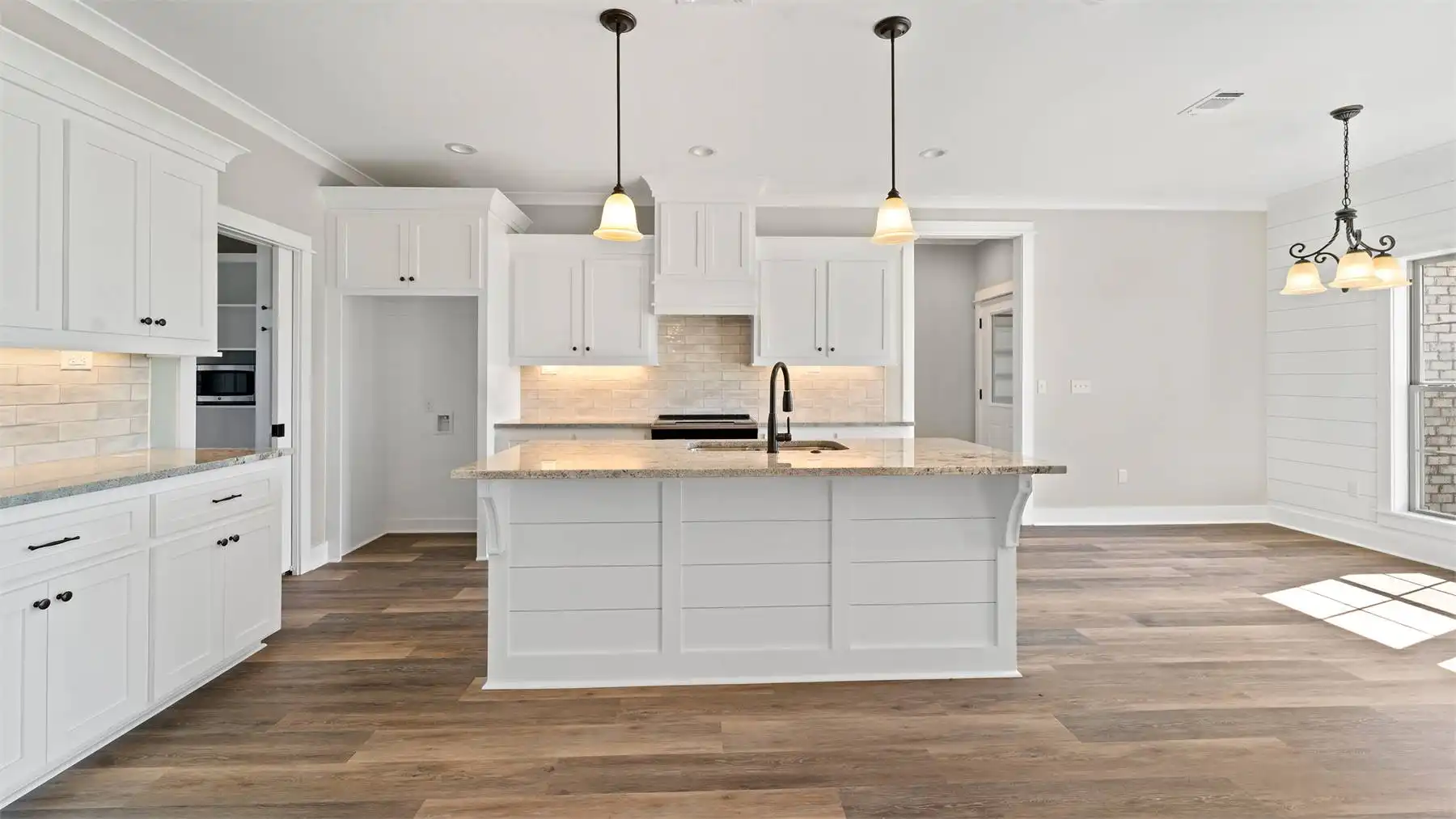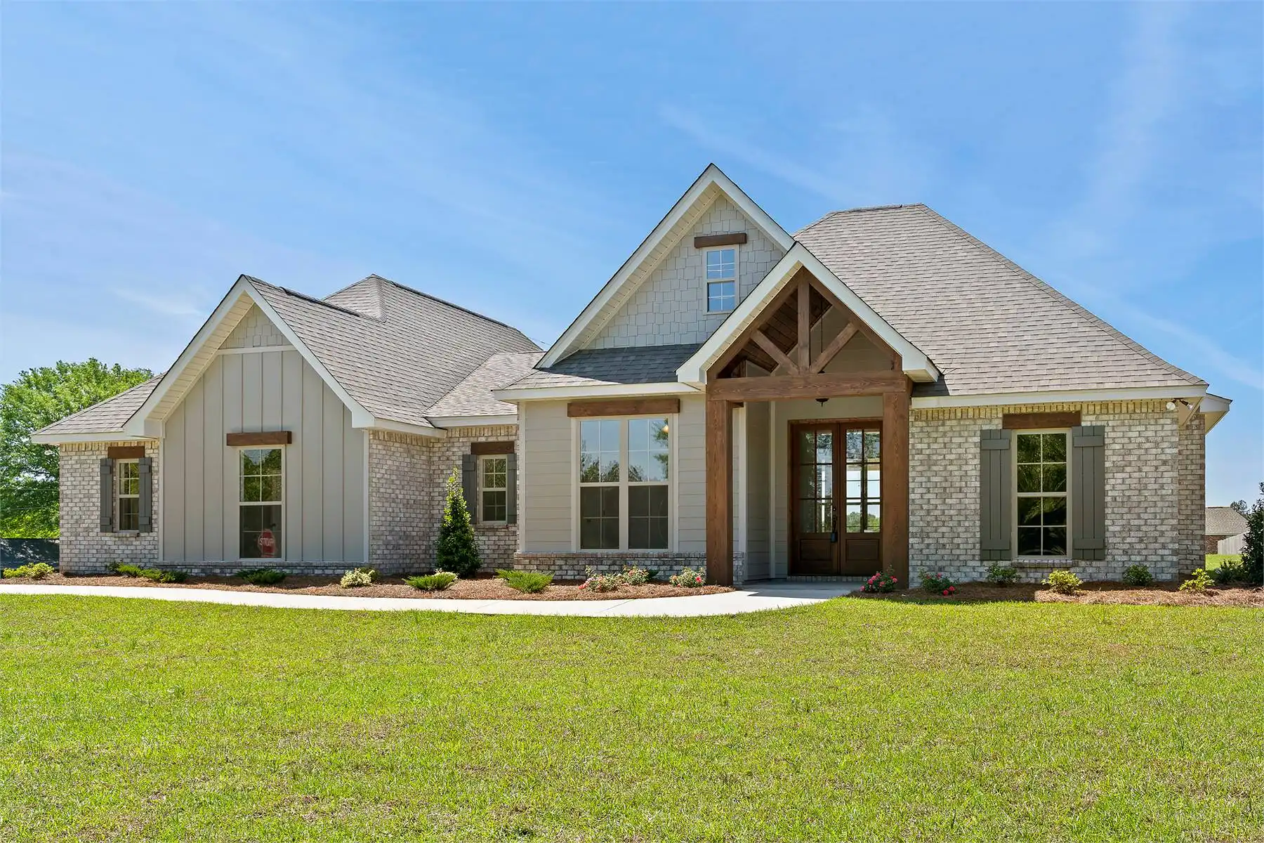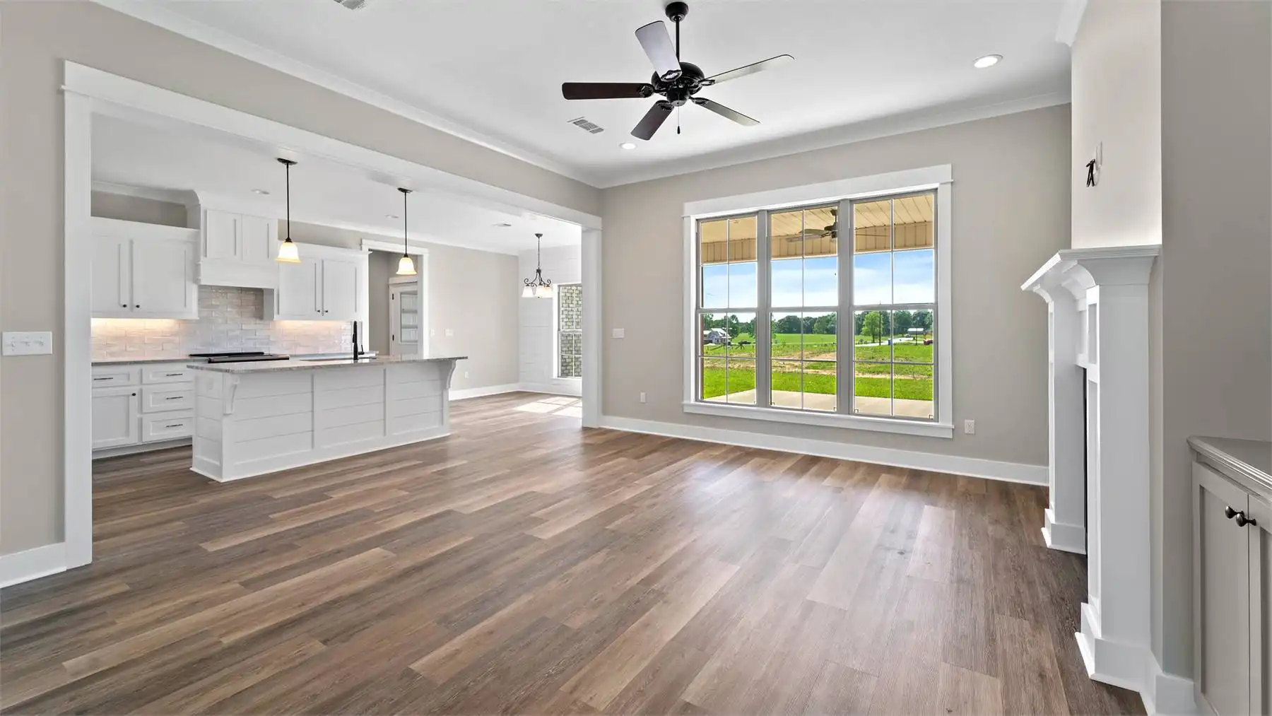 A stylish modern farmhouse with great curb appeal and a rear porch perfect for entertaining. Inside, the open floor plan includes four bedrooms, a large kitchen with a walk-in pantry, and an amazing primary suite with split vanities and a spacious walk-in closet. Extra storage and a convenient half bath complete this functional home.