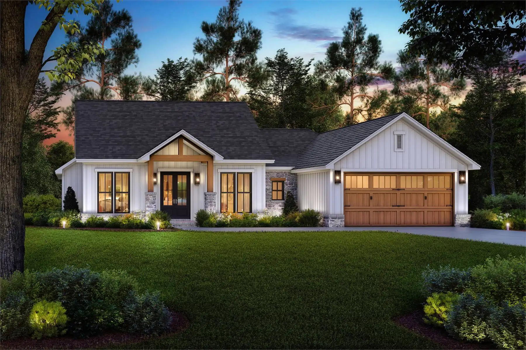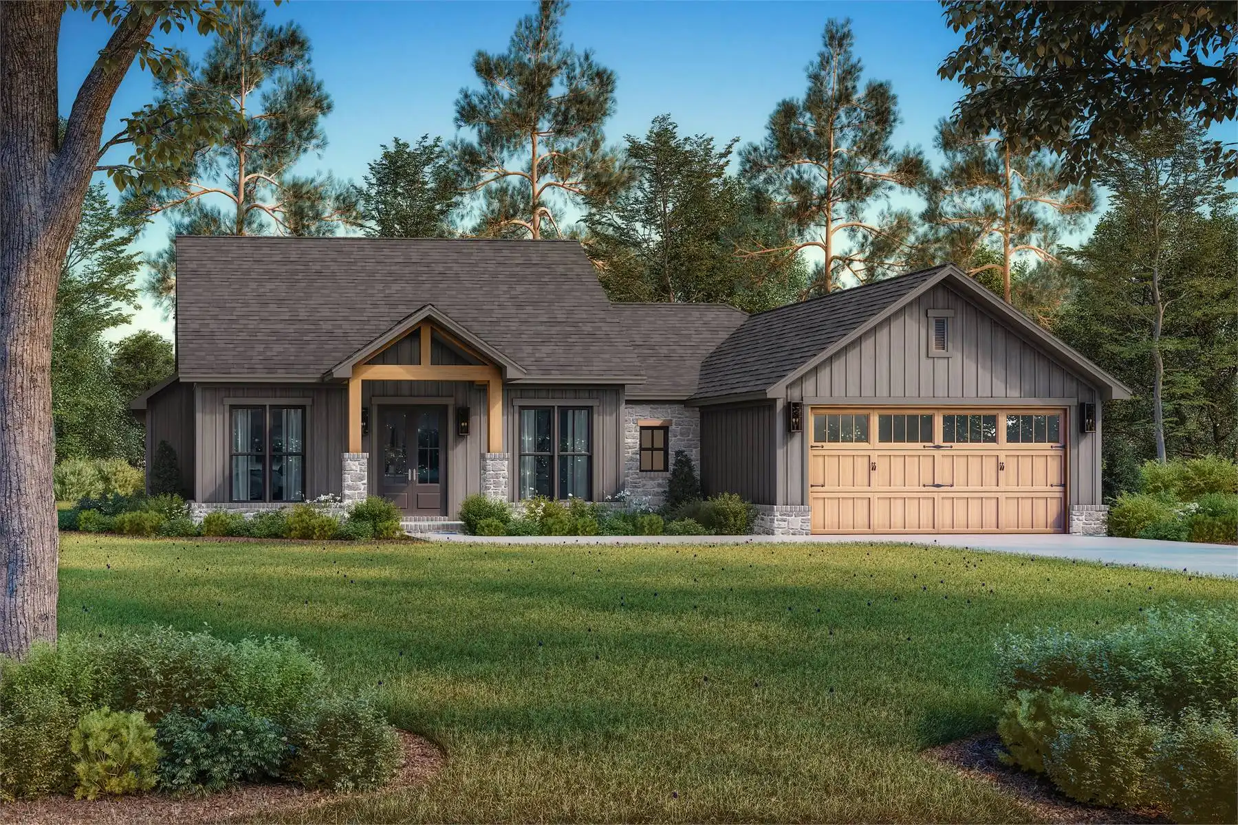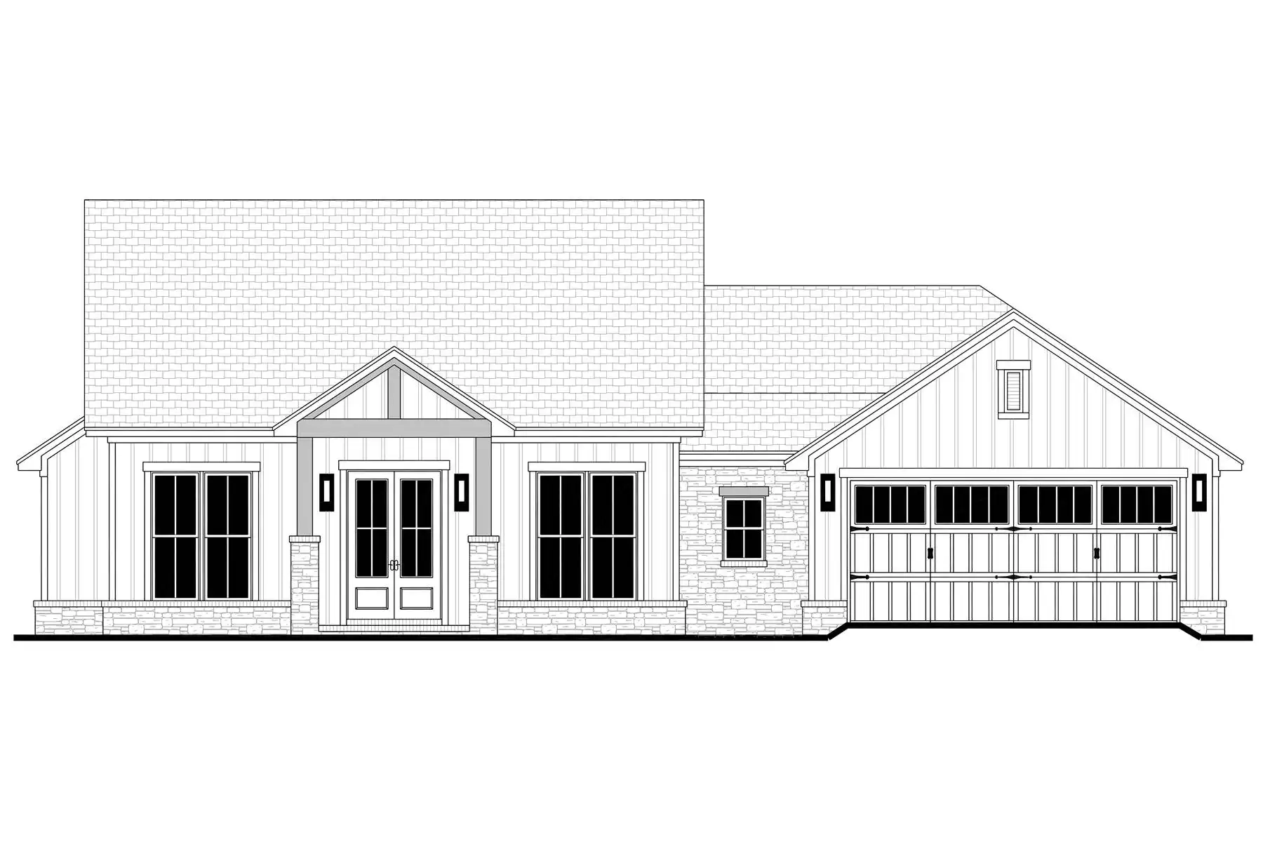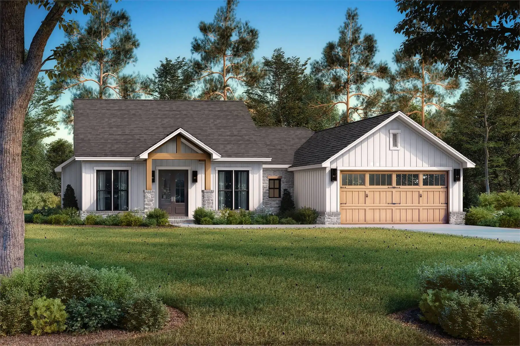 House Plan 2861 is a charming modern farmhouse that makes the most of its 1,899 square feet. With 4 bedrooms and 2.5 baths, this design offers a welcoming vaulted entry porch that opens into an airy great room, kitchen, and dining space. The thoughtful split floor plan ensures privacy for the main suite, featuring a bathroom with a separate tub and shower, plus a spacious walk-in closet.