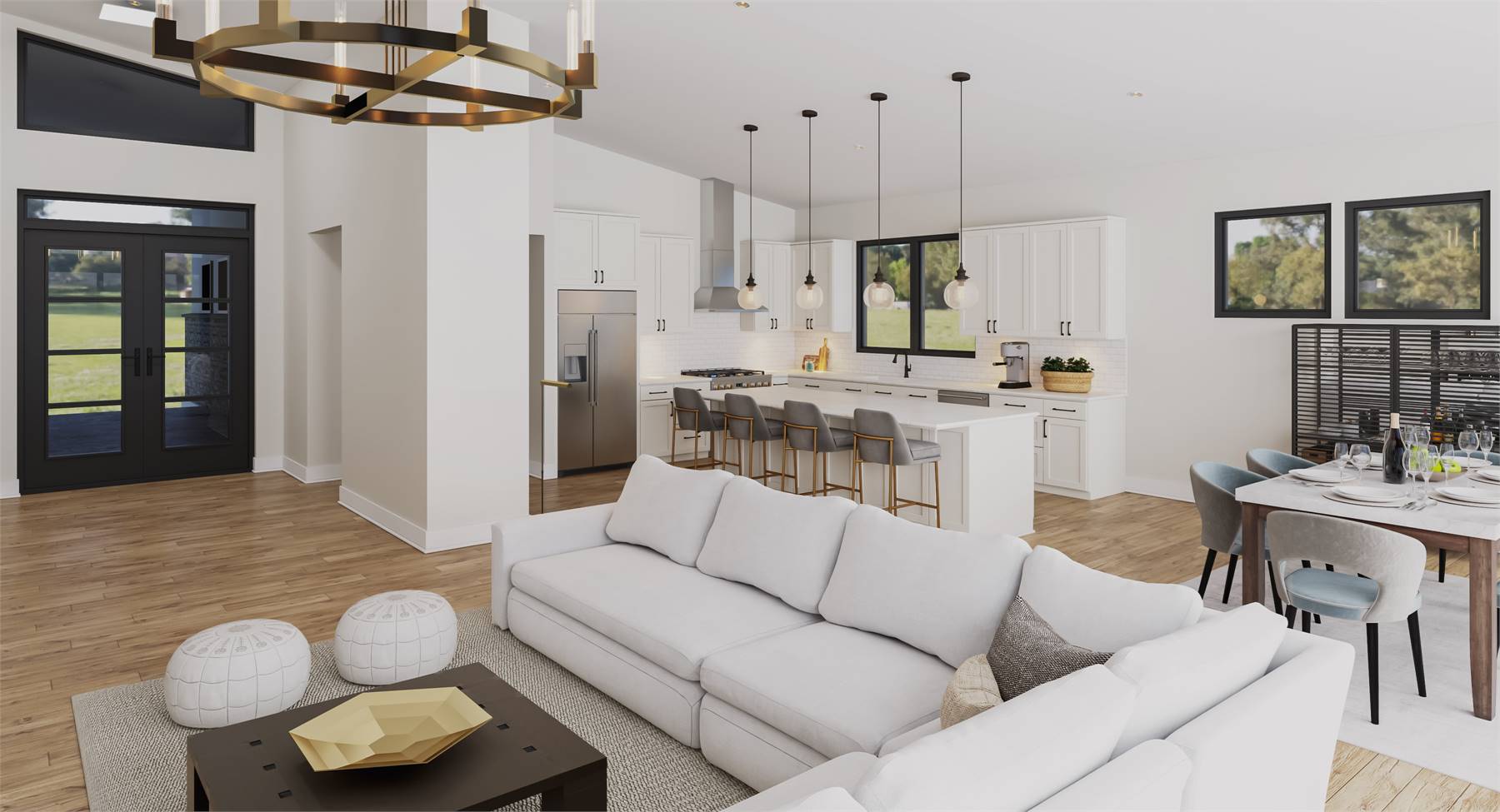 With dramatic modern style, plenty of glass, and vaulted ceilings galore, House Plan 2972 stands out from the crowd! It offers 2,769 square feet, three bedrooms, and three-and-a-half bathrooms, so it's a great size for a growing family, too. The layout includes totally open living space, a front hallway with two bedroom suites, and a back hallway with the primary suite and an office. The foyer, great room, primary bedroom, office, and one of the secondary bedrooms all have vaulted ceilings overhead! You'll love the vaulted outdoor living in back, too!